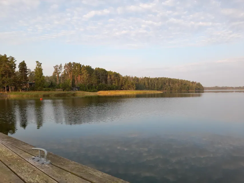 Möjligen sista dagen i en räcka av dagar med rekordvarm högsommartemperatur på över 20 grader. Kyrklönnarna börjar få sina första röda löv. Fodret som växte högt på åkern vid vägskälet är nu slaget. Jag kommer ner hit till bryggan vid åttataget. Det är en lugn, spegelblank morgon. Någon har glömt kvar en rosa barnkofta på bryggan. På samma plats där det tidigare under våren fanns mörtnät under isen ligger också nu ett nätflöte. Hägern spatserar som vanligt i solen på Bonässtranden. Så stannar han och står blickstilla med rak hals några sekunder innan han med loja vingslag flyttar sig vidare ett stycke in i viken. Ladusvalor kvittrar somrigt över vassarna. En större fisk plaskar till alldeles vid bryggan, småfisk hoppar överallt på den lugna vattenytan. Men ingen tärna är längre här för att fånga dem. Tranor ropar i öster. Kråkorna kallar till morgonmöte, och en ringduva kommer klumpigt flygande över vattnet, som om den var inbjuden. Hackspetten lockar ljudligt inifrån stranden och en korp svarar långt i söder. Solen börjar synas mellan träden ovanför strandboden, och väcker en gransångare som sjunger ett par "silt-salt". Gransångaren är den fågel som, i likhet med gärdsmygen, kan sjunga på hösten. Om en halvtimme är solen ovanför trädtopparna. Dags för mig att bege mig hemåt.