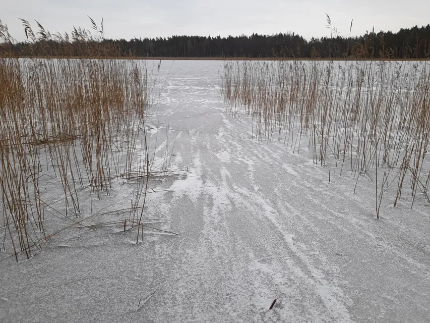 Äntligen lite vinter. Snö, -4 grader och svag nordvästlig vind. Jag sätter mig en bit ut på isen. En hackspett trummade på väg hit. Också det ett vårtecken. Gärdsmygen kilade omkring nere i strandbuskarna vid träbänken. Jag har fått sportlov. Isen är bländande vit mot de djupt blågrå molnen i norr. Vackert som på en målning av någon gammal holländsk mästare. Talgoxen "tvinkar" på. Den har så många läten. Någon blåmes stämmer in. Kajor flyger nu och då vingligt graciöst över träsket. Det är artfattigt, som det ska vara på vintern. Minusgraderna lägger sordin på vårkänslorna. En koltrast småpratar för sig själv. En kråka hörs.