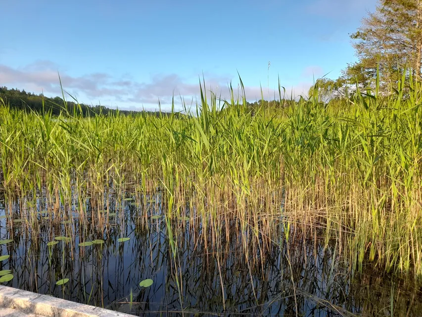 Jag är tidigt i farten. Kommer hit vid sextiden. Det är tydligt att någon sköter om stället. Fyra plankor har lagts ut som spång till flotten och vassen som växte upp genom springorna är nu slagen. På väg hit låg ett rådjurskid med sina två nyfödda killingar i fodergräset på en åker. Man såg bara huvudena som stack upp. Bondrosorna blommar nu som bäst. Här vid Byträsk sjunger trädgårdssångaren alldeles intill och trastsångaren i norr. Talgoxungarna jagar varandra lekfullt i strandsnåren. De är verkligen nyfikna och kommer fram och säger godmorgon. Det är en klar morgon efter allt regnande, med vind norrifrån. Vassen har vuxit en meter hög och skymmer sikten omkring mig där jag sitter. Sädesärlan är också stolt mamma till två helgrå ungar som redan är lika stora som hon. De sitter i strandalarna och putsar sina fjädrar. Gransångaren berättar sin historia om "salt sill" och en rödhake tickar i vassen. Nu vaknar sävsångaren också och börjar sjunga, kanske på sista versen för den här sommaren.