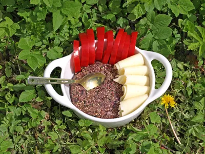 Her er Elias, en miniloffer på 7 år, som eter gratis mat: skvallerkål, eller som svenskene kaller den, kirskål. Dette er en grønnsak som ble importert til Norden av noen munker. Og så spredde den seg etter samme mønster som kaninene noen tok med til Australia - altså uhemmet og umulige å stoppe.