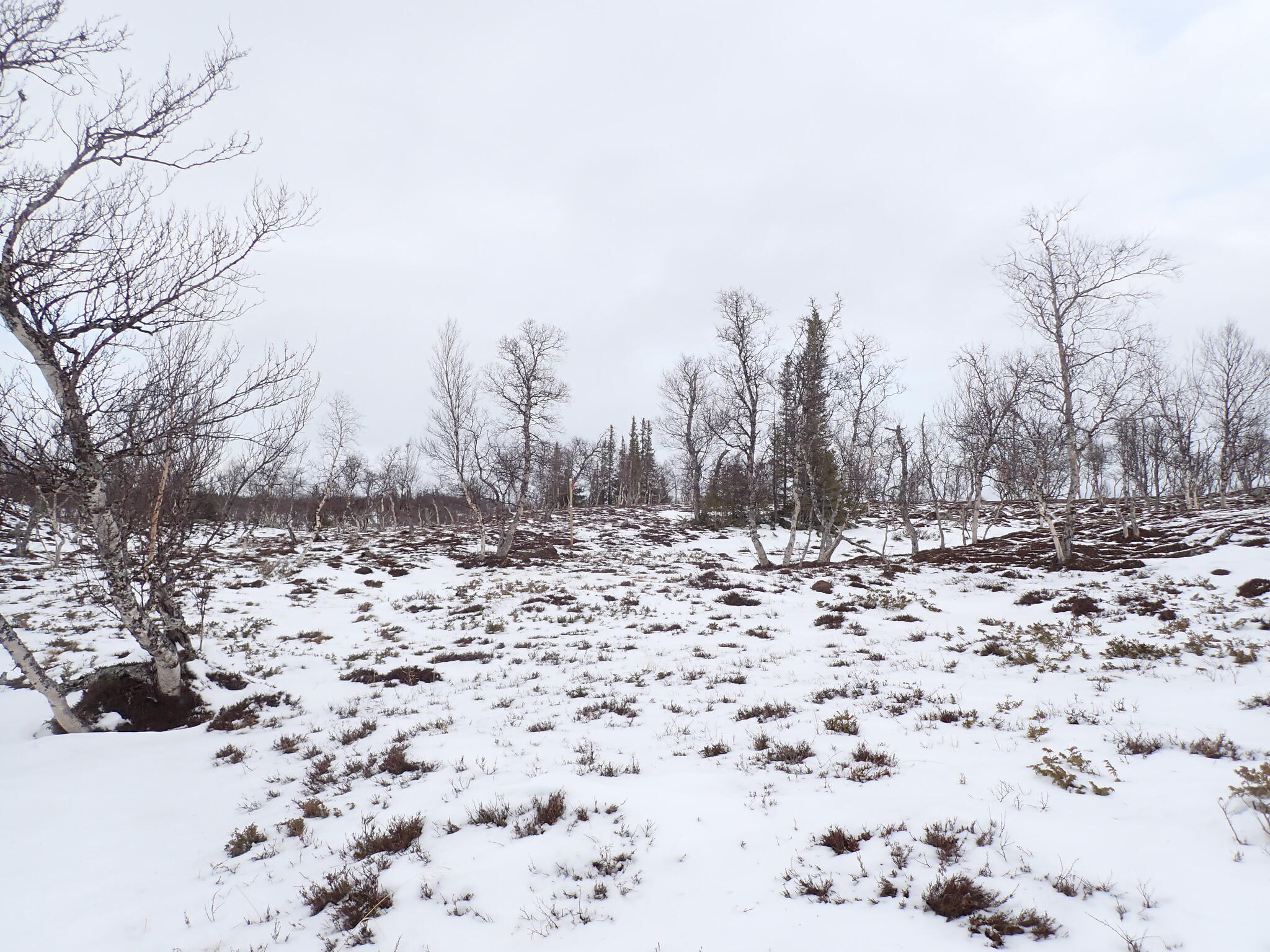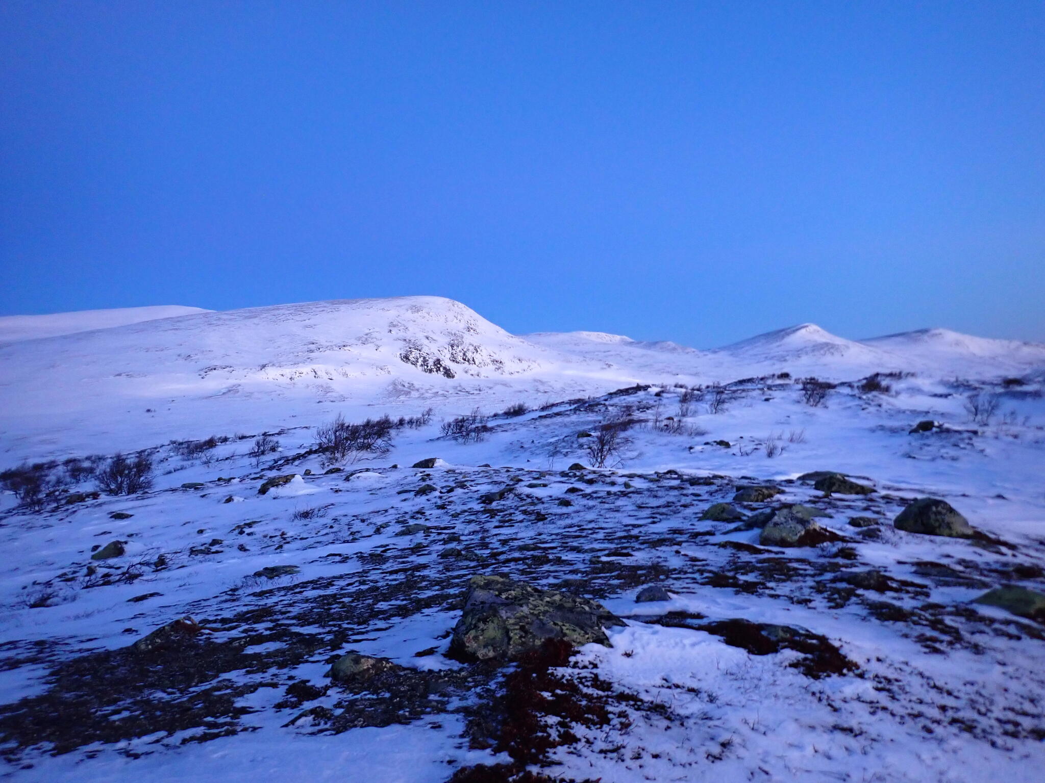 Halva denna dags tur gick på led som delas med skotrar. Jag känner ett behov här att beklaga mig lite. I ett så fint område som Vålådalens naturreservat har jag svårt att första att det inte skulle gå att hålla skotrarna borta. Varför inte leda dem runt om reservatet istället för rakt igenom det. För att ta sig fram i området går det att skida, och de flesta verkar göra det. Och skoteråkarna har ju nästan hela Sverige att åka i - varför måste de åka köra skoter i de finaste naturområdena? Jag antar att det är politiskt svårt att hindra skoteråkande, men nog är det inte en mänsklig rättighet att få köra skoter nästan överallt.