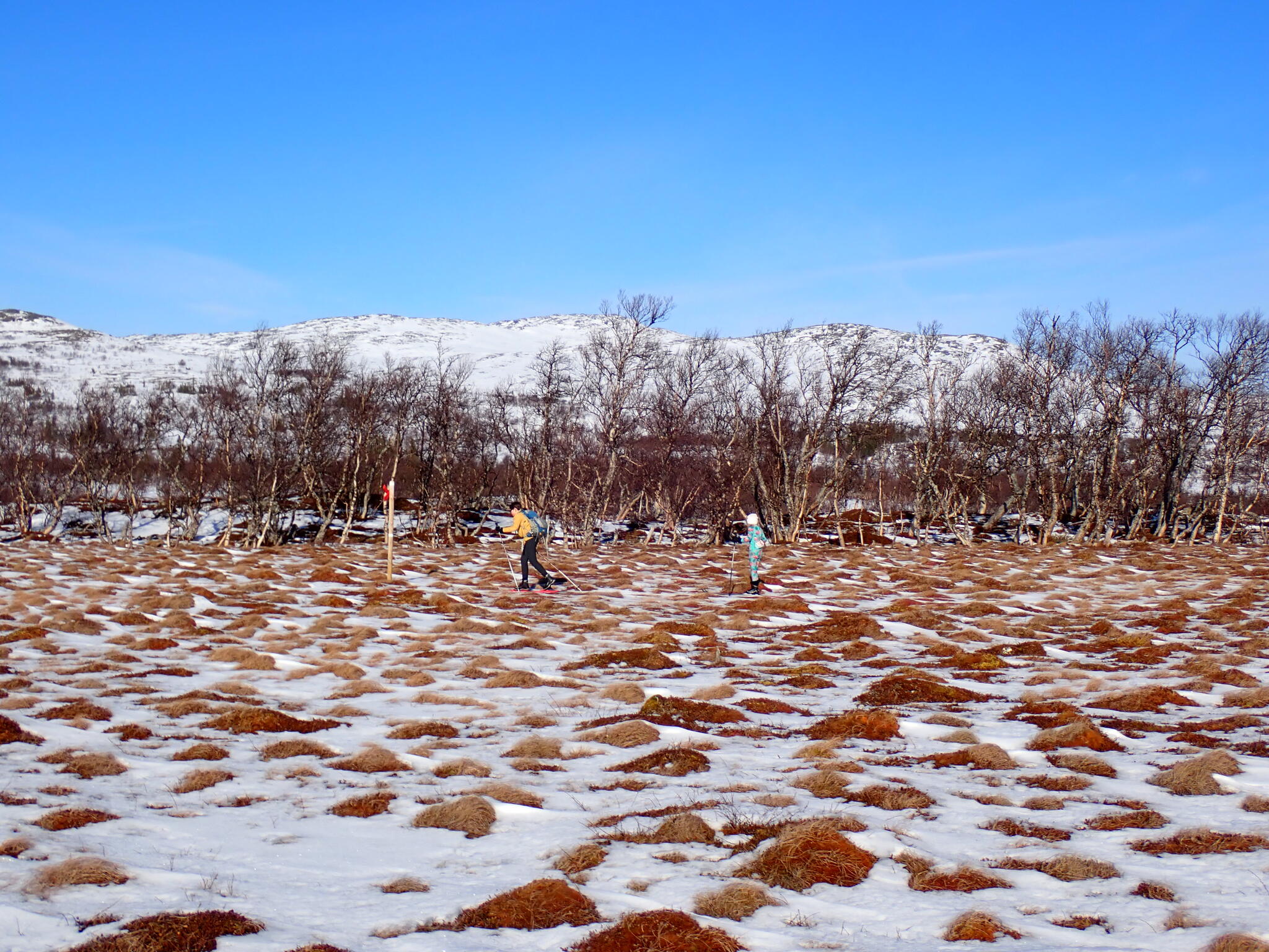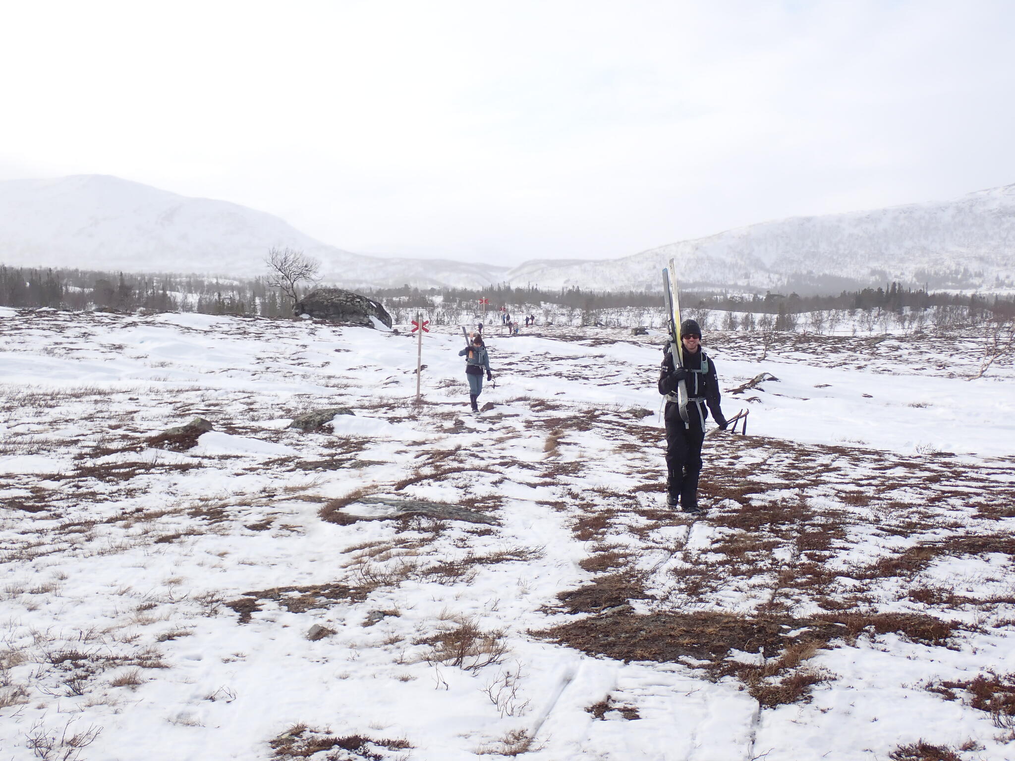 När vi kom längst ner i dalen var det verkligen inte mycket snö. Oftast kunde man hitta lite mer snö bland träd där det var skugga.