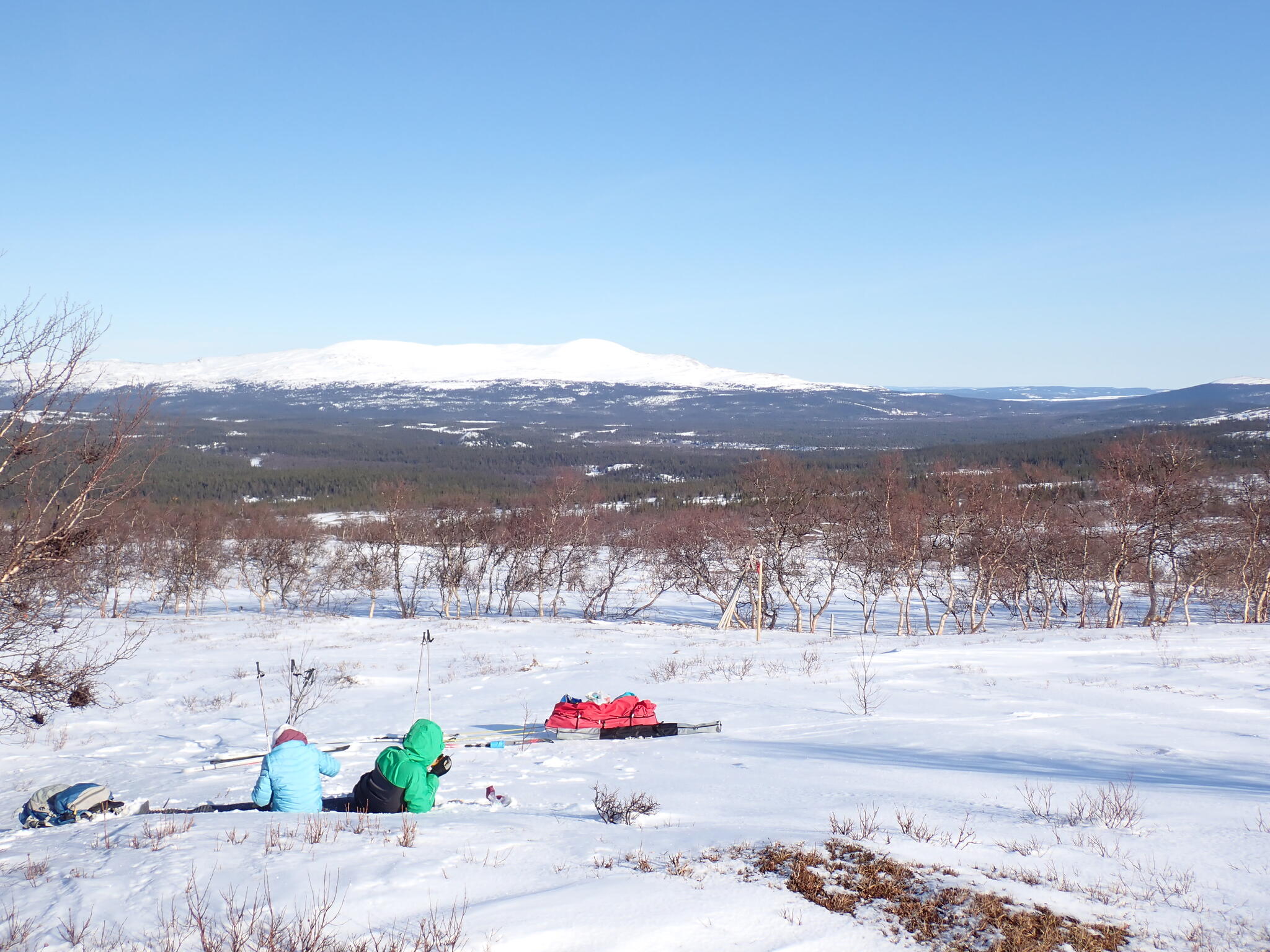När vi passerat korsningen där skoterleden vek av tog vi lunch och njöt av lugnet och utsikten.