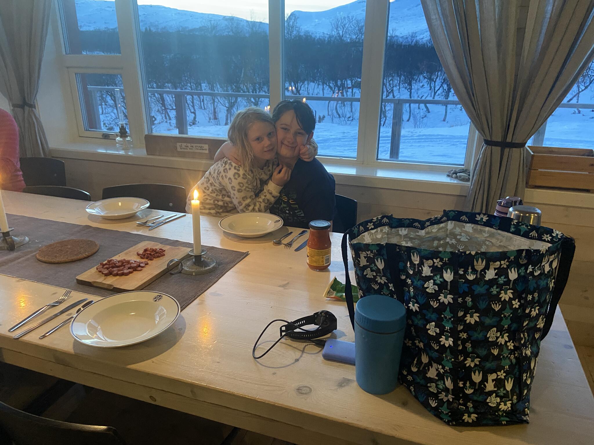 Vi fick eget fint rum på Lunndörrstugan. Två andra barnfamiljer var där, bl a en familj med tre hundar. Den familjen åkte samma varv som vi gjorde.