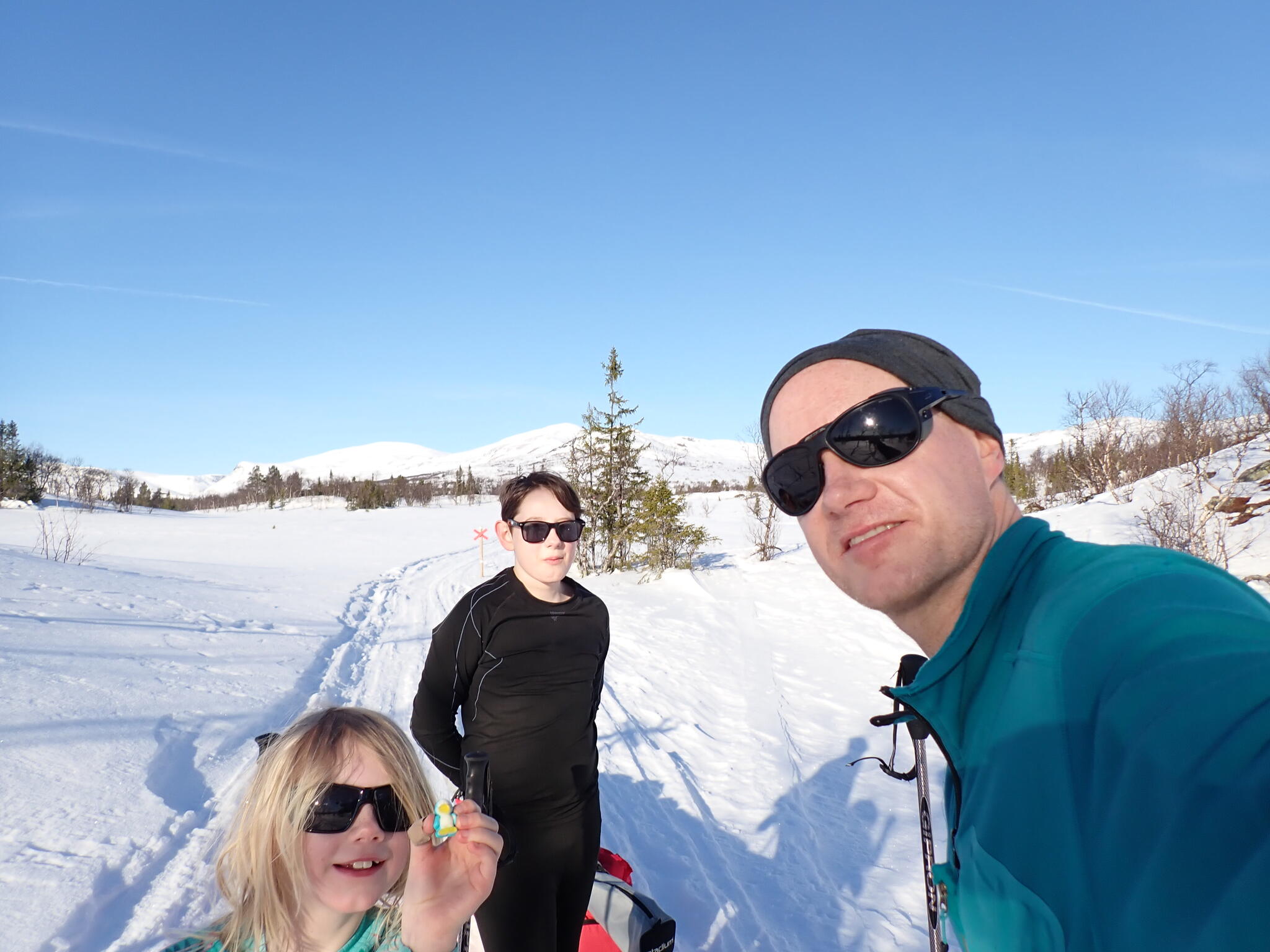 Det var sportlov för barnen och jag fyllde 50 år. Hur fira på bästa sätt i mars i Jämtland? Jo en familjetur på turskidor. Tyvärr hade min fru skadat knäet så hon kunde inte följa med, men hon följde med oss i tanken hela turen.