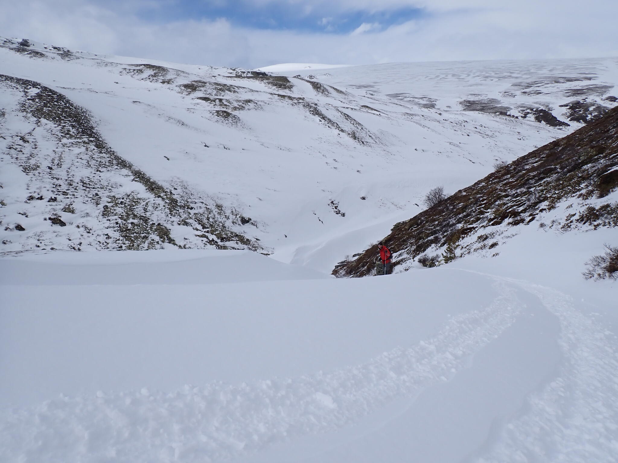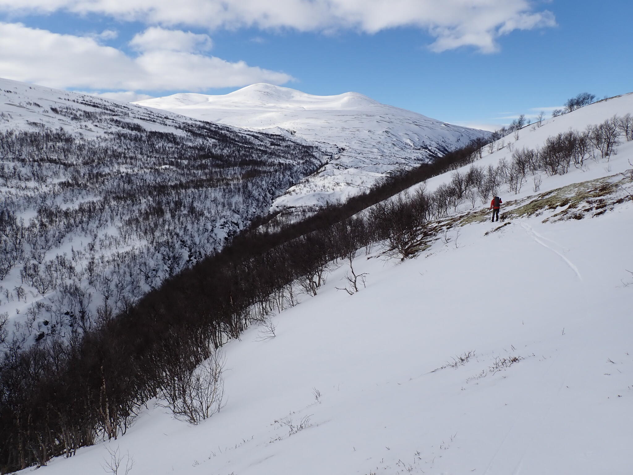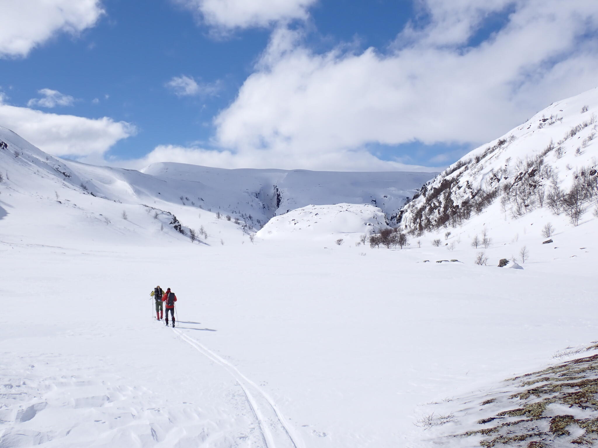 Vi skidade längs åskant för att hitta tillräckligt med snö. Vi skulle mot den trånga Djupdalen.