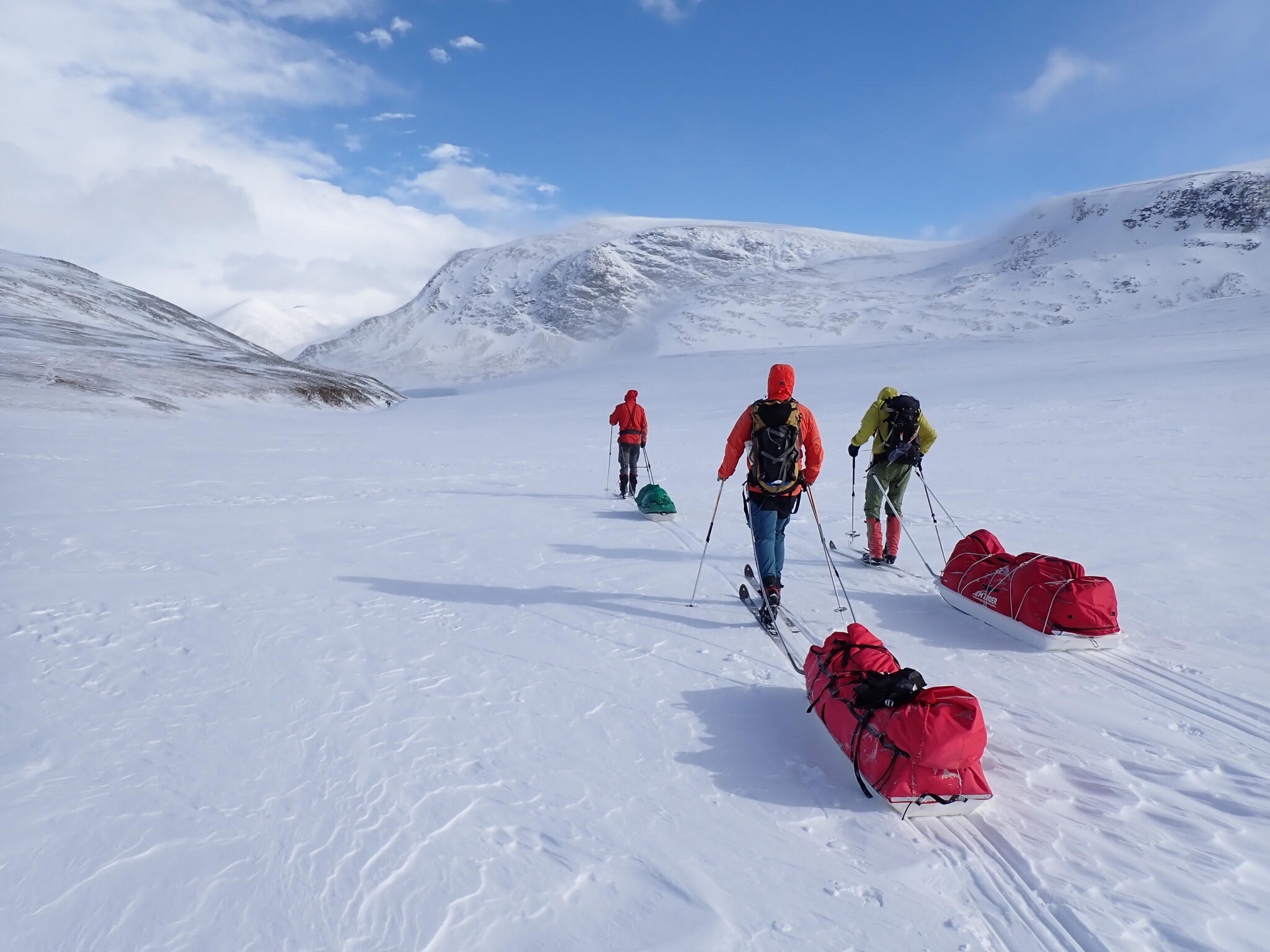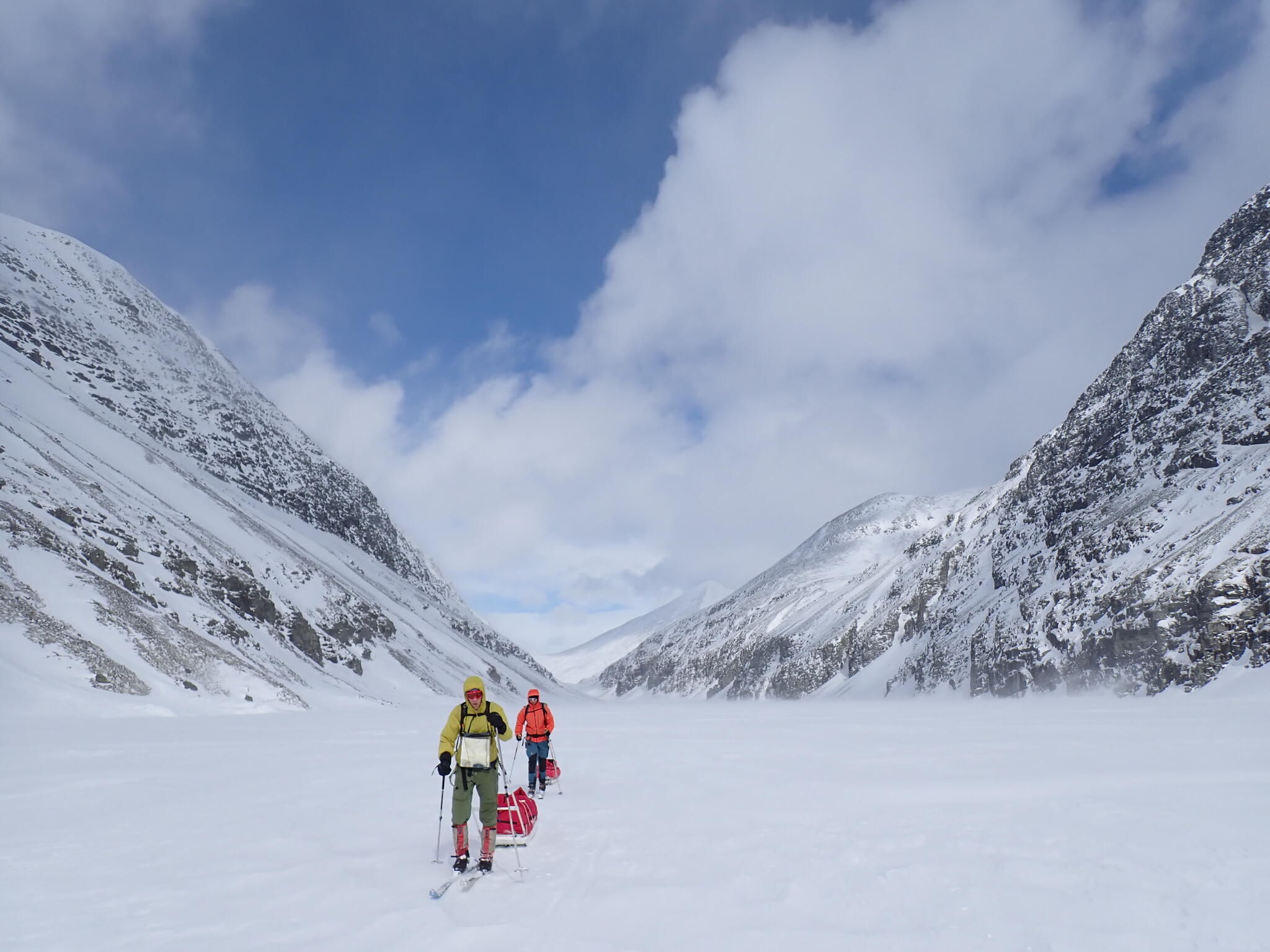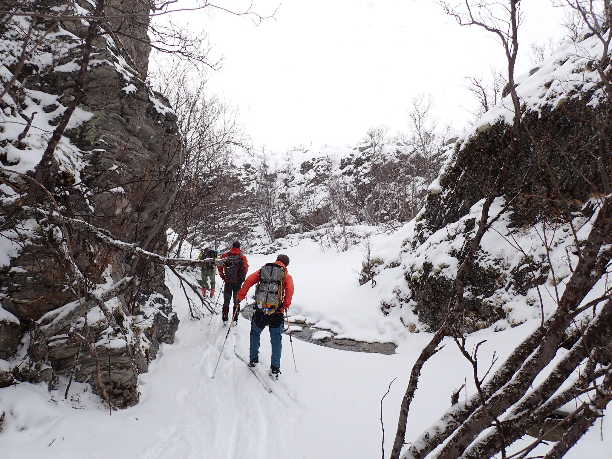 Vi skidade längs åskant för att hitta tillräckligt med snö. Vi skulle mot den trånga Djupdalen.