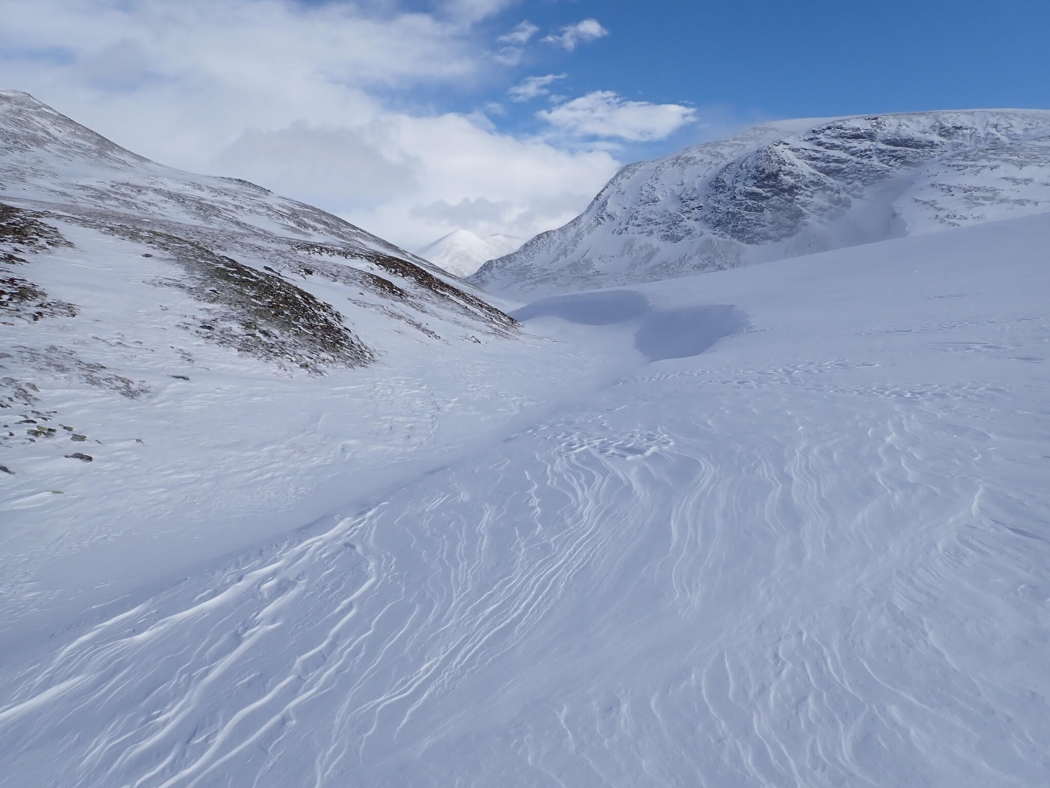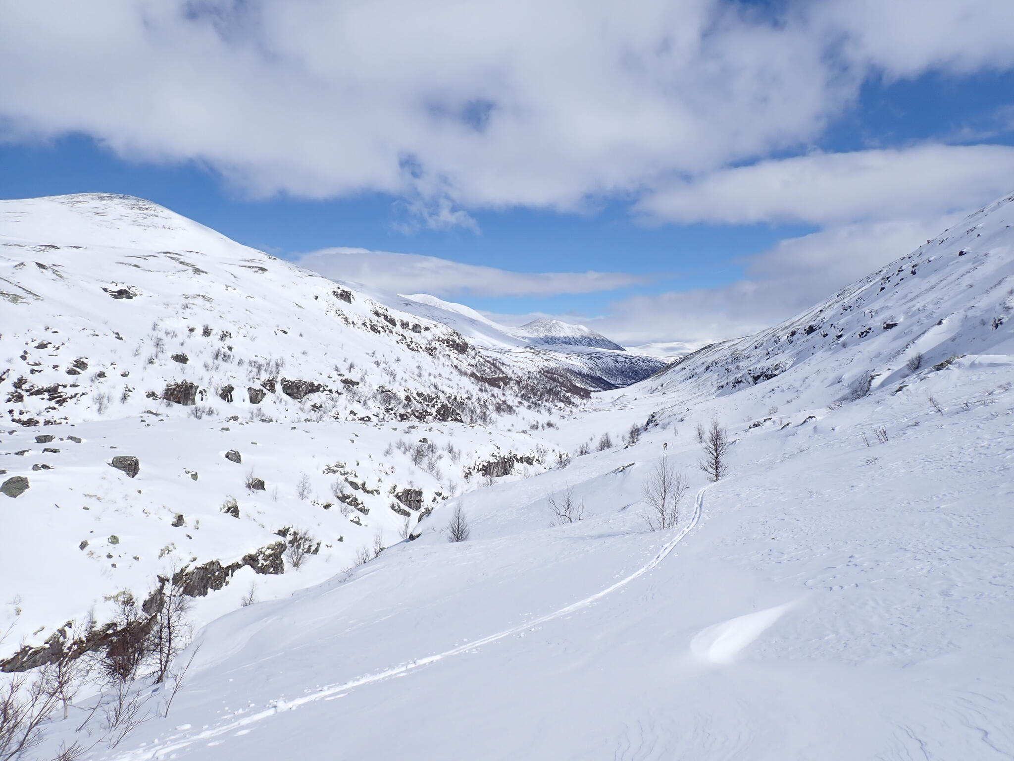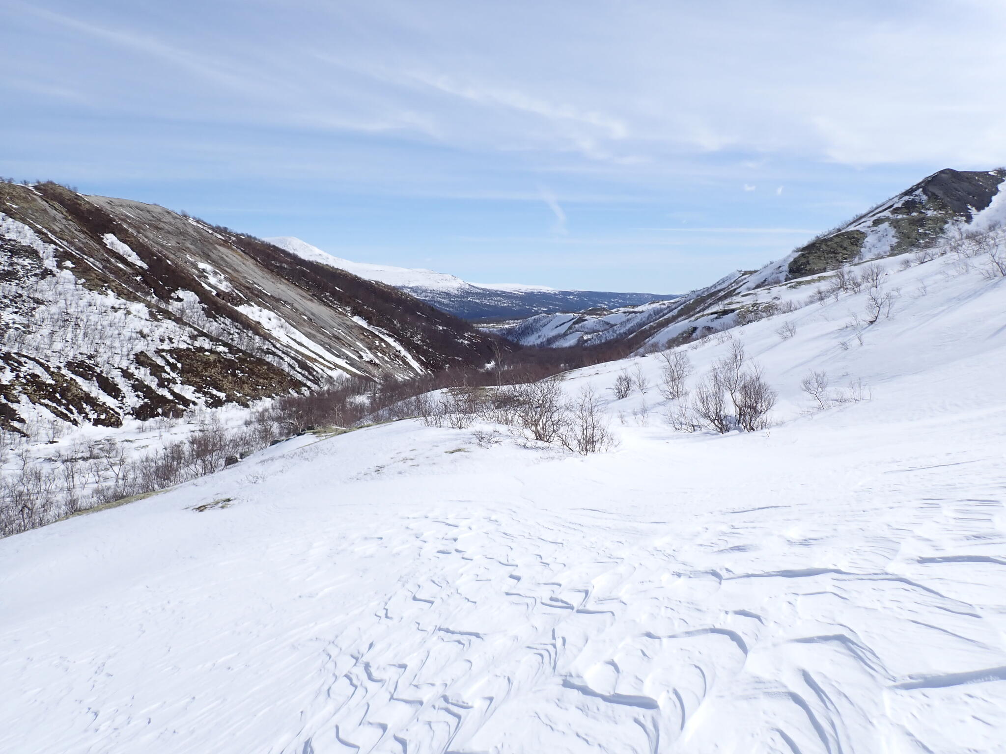 I den här dalen fanns det betydligt mer snö än vad som fanns längre norrut i nationalparken.