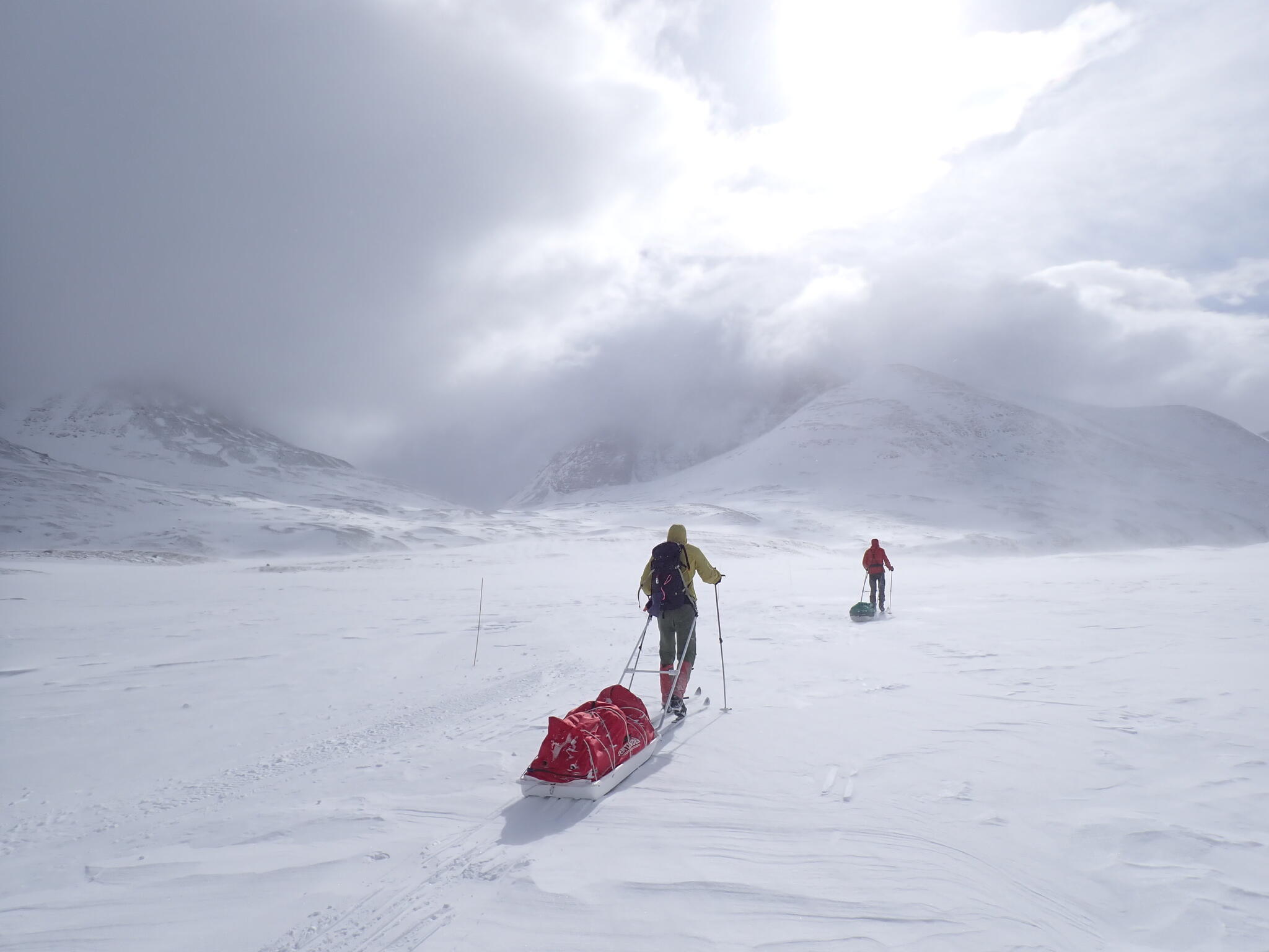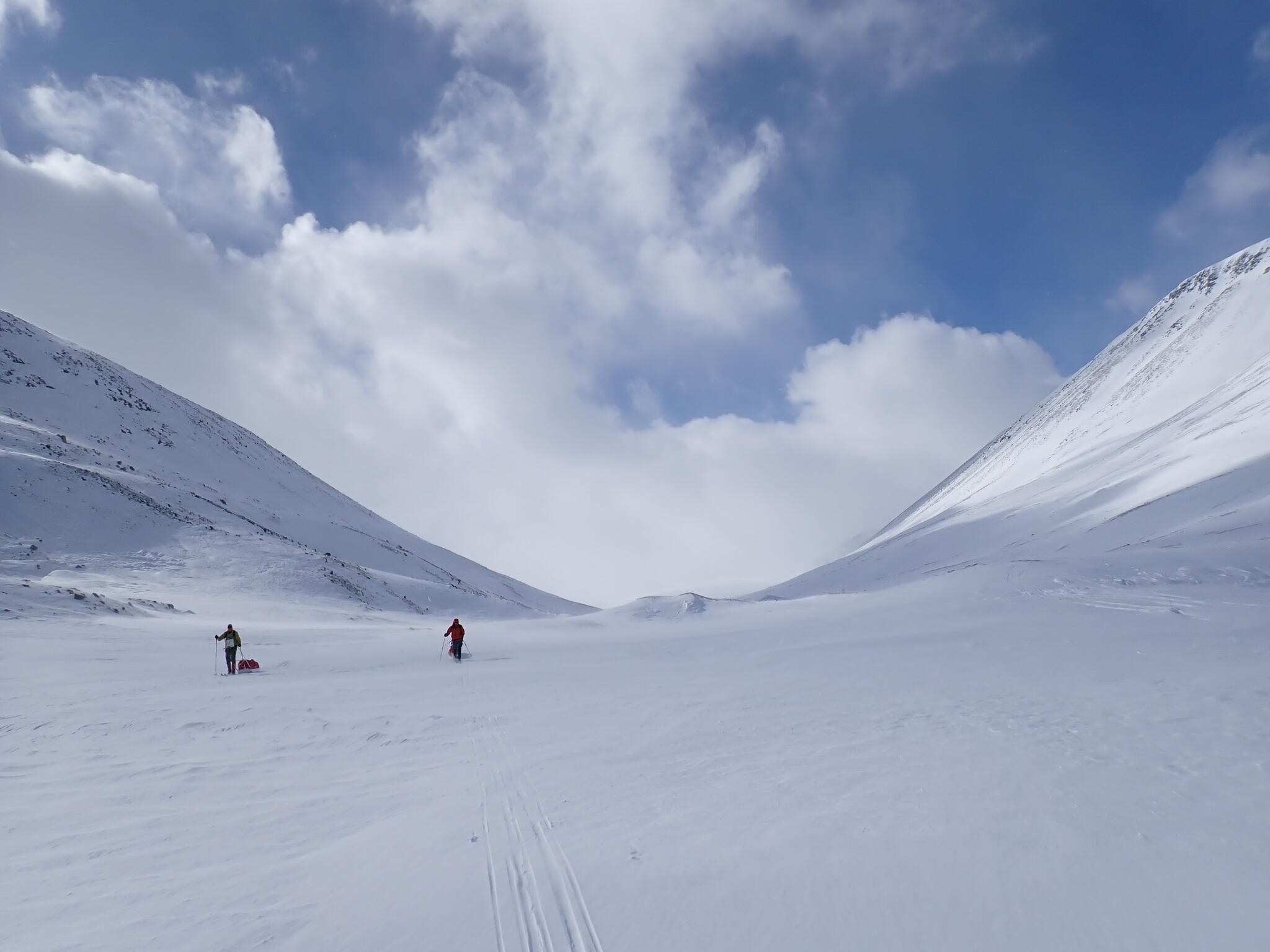 Den hårda motvinden gjorde att vi inte skulle kunna skida så mycket längre in i dalen, så vi vände.