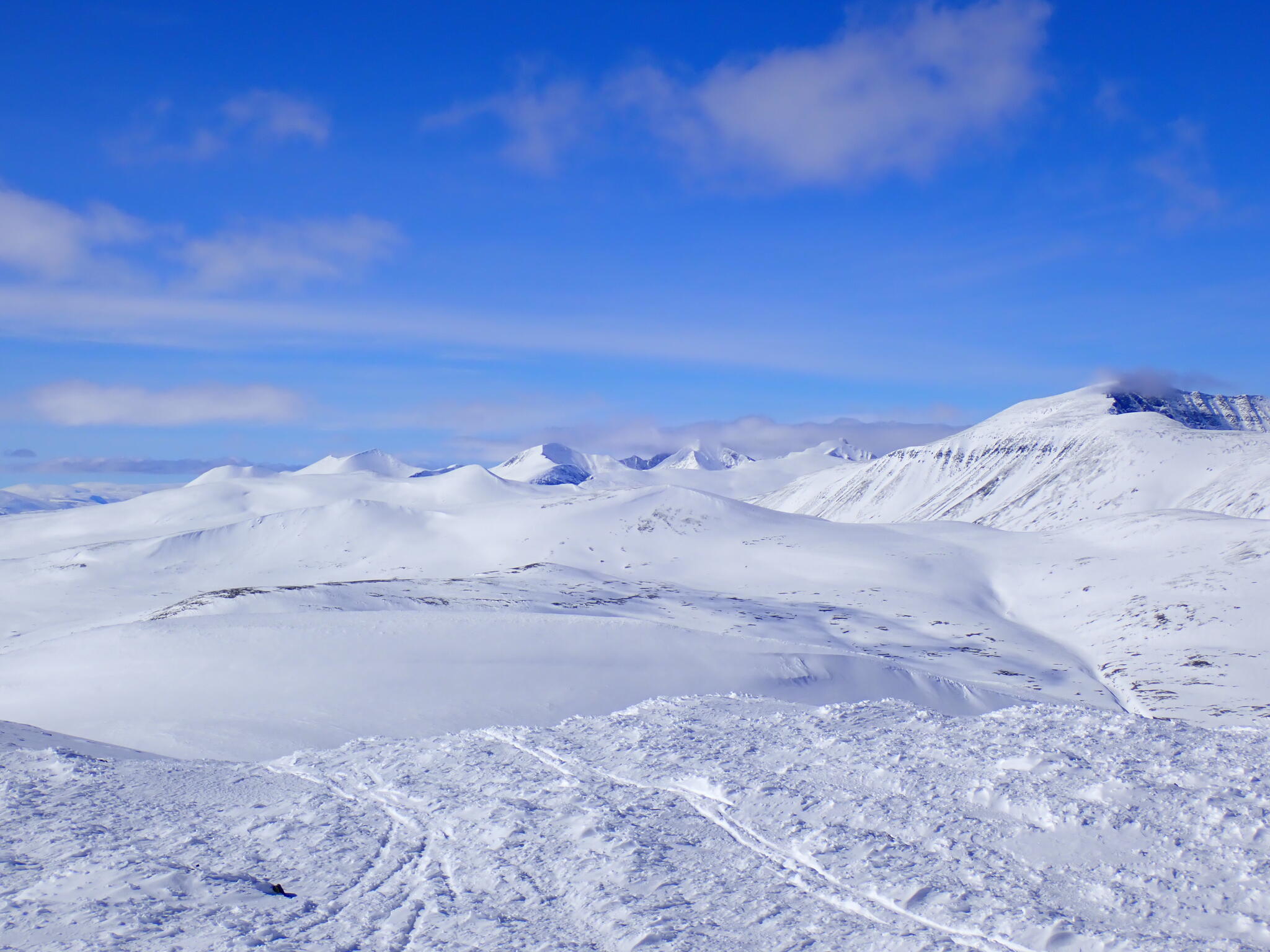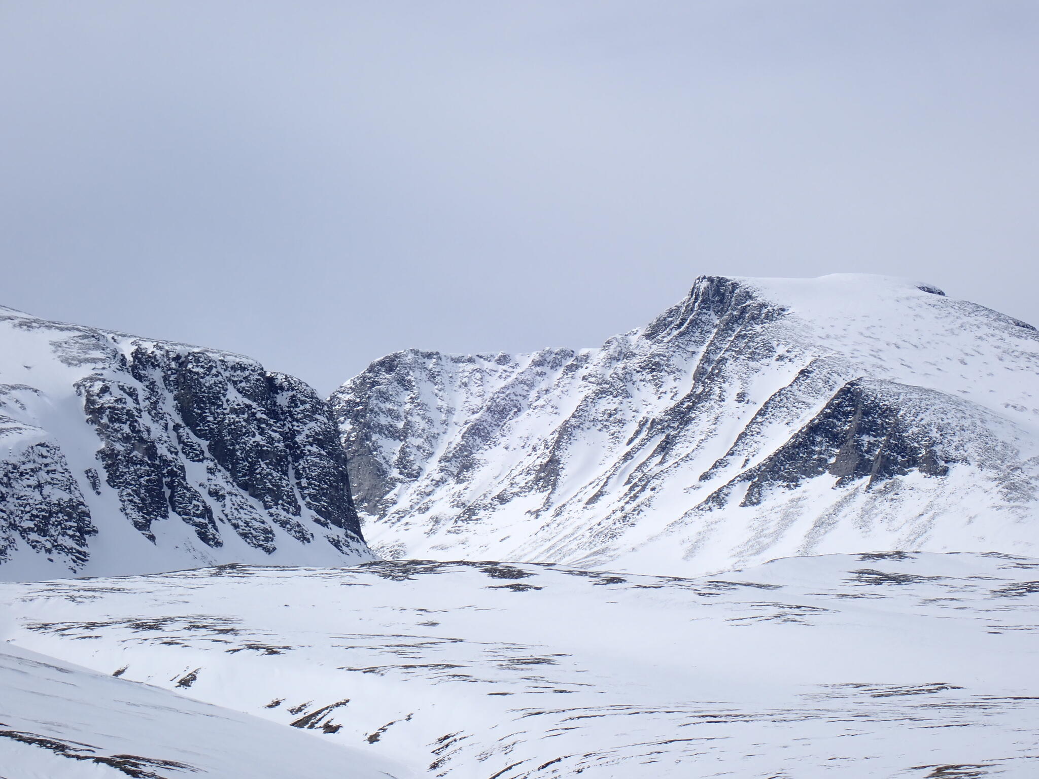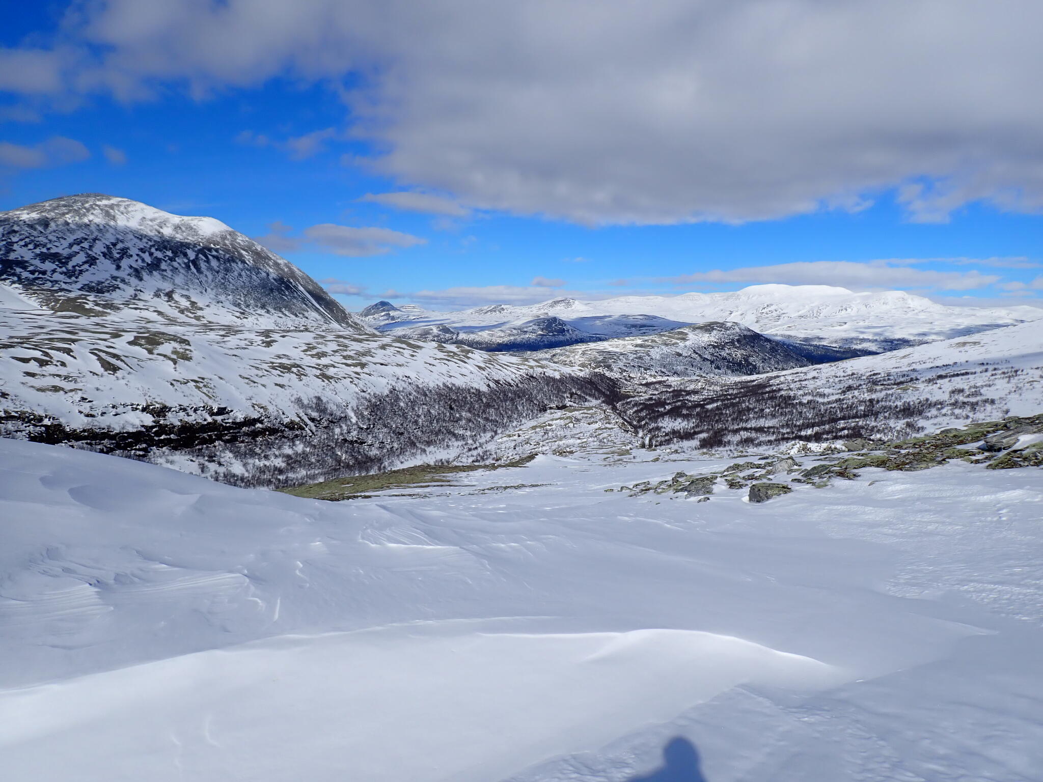 Vi kom in i Hornflågådalen. Gott om snö och det fanns flera fina fjäll som lockade till besök.