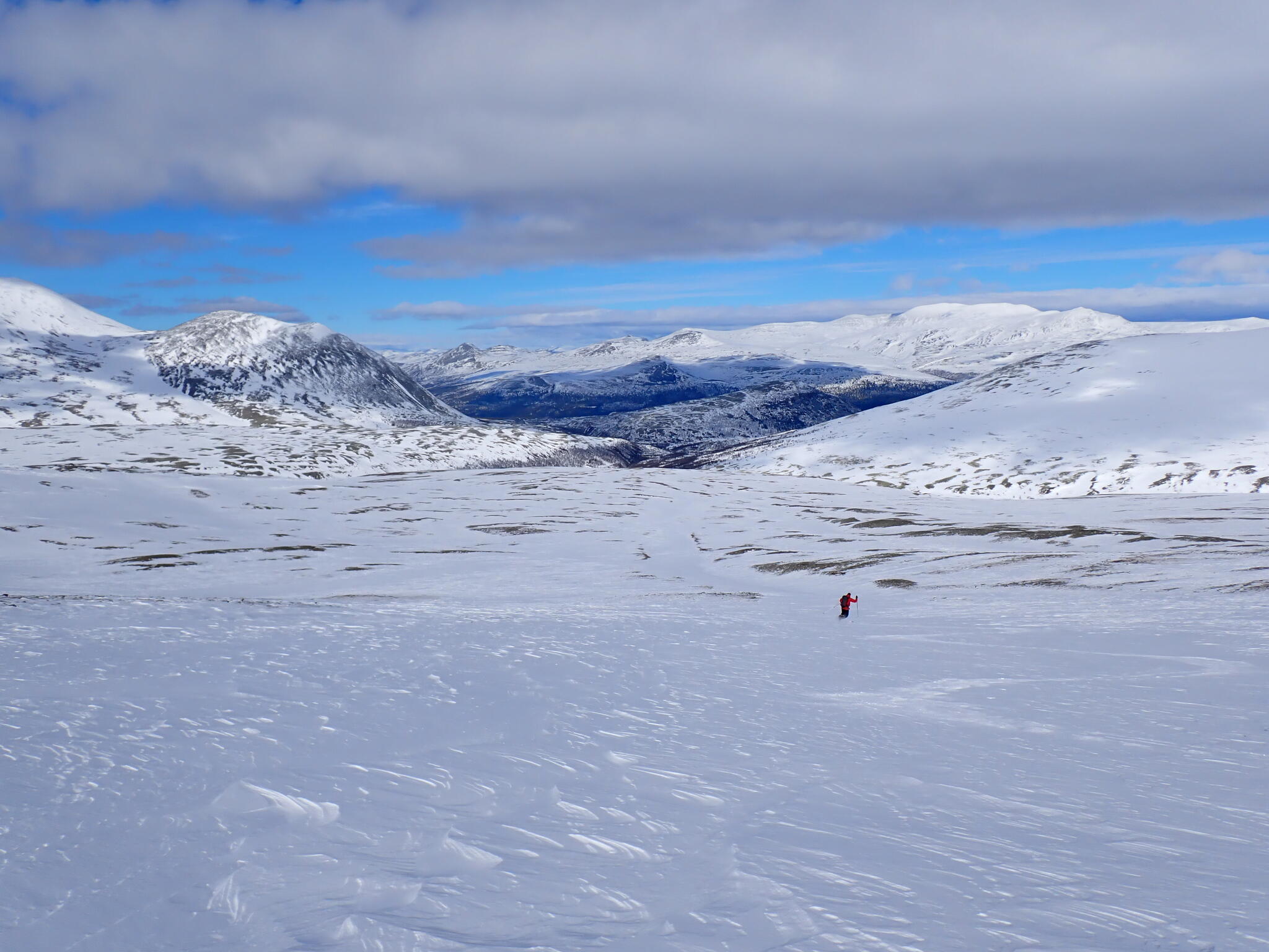 Vi kom ut ur ravinen i den stora dalen Dörålen. Mycket vind från söder.