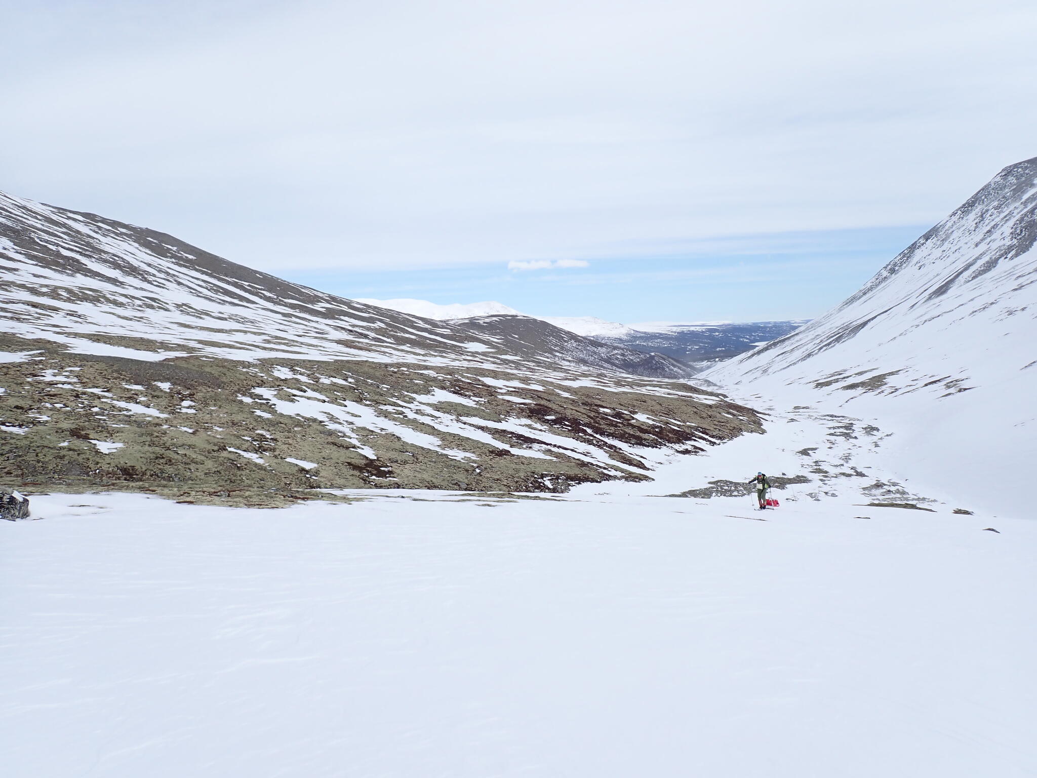 Sedan var det lättskidat uppför. Lätt lutning och vi följde dalbotten tills dess att vi hade nått dalens högsta punkt.