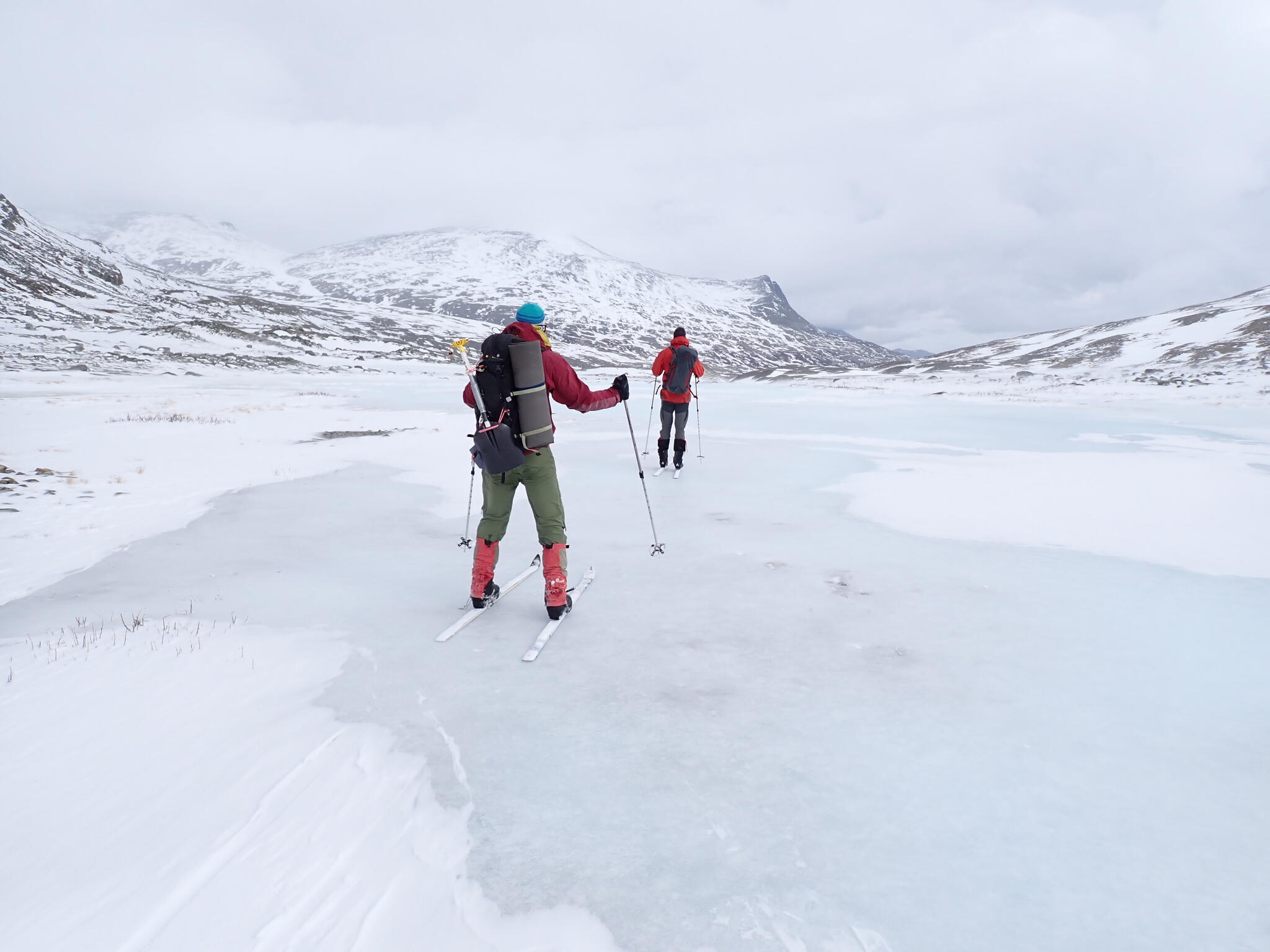Det gick snabbt utför till Bergedalstjönnin. Kul åkning. Där hade vi ju varit ett par dagar tidigare, då vi var på väg mot Rondvassbu.