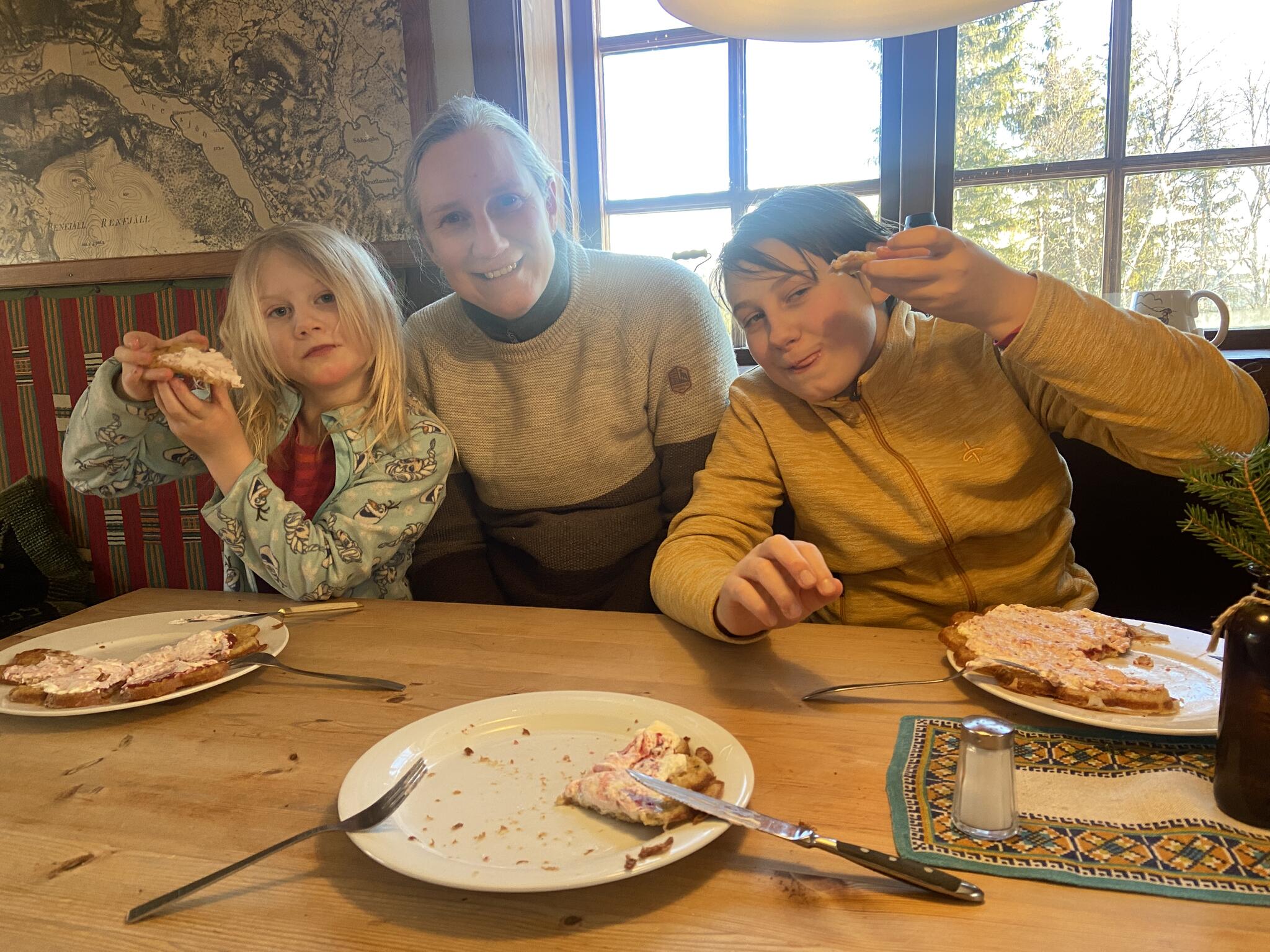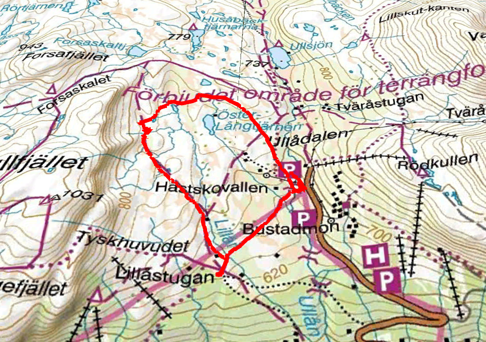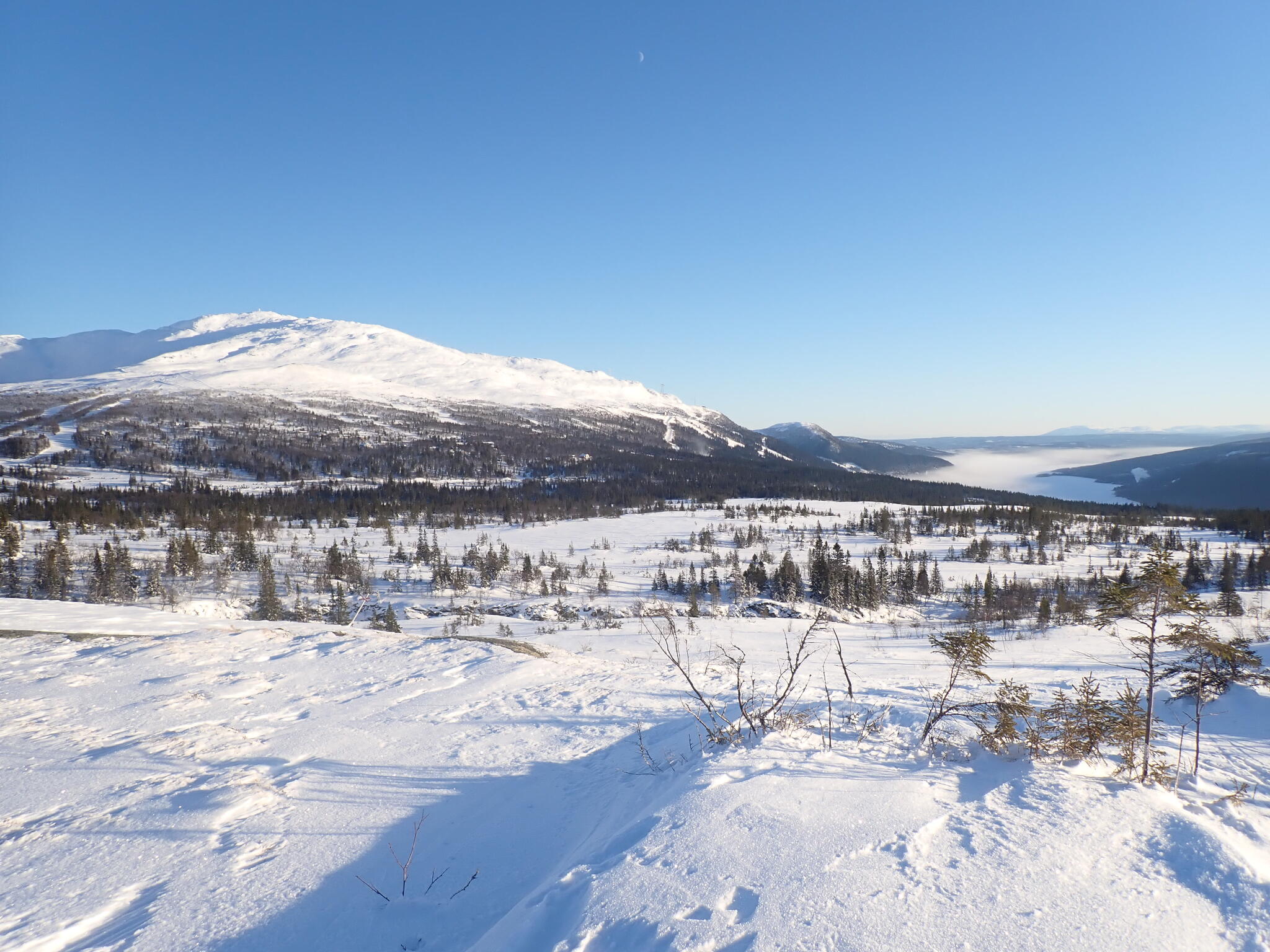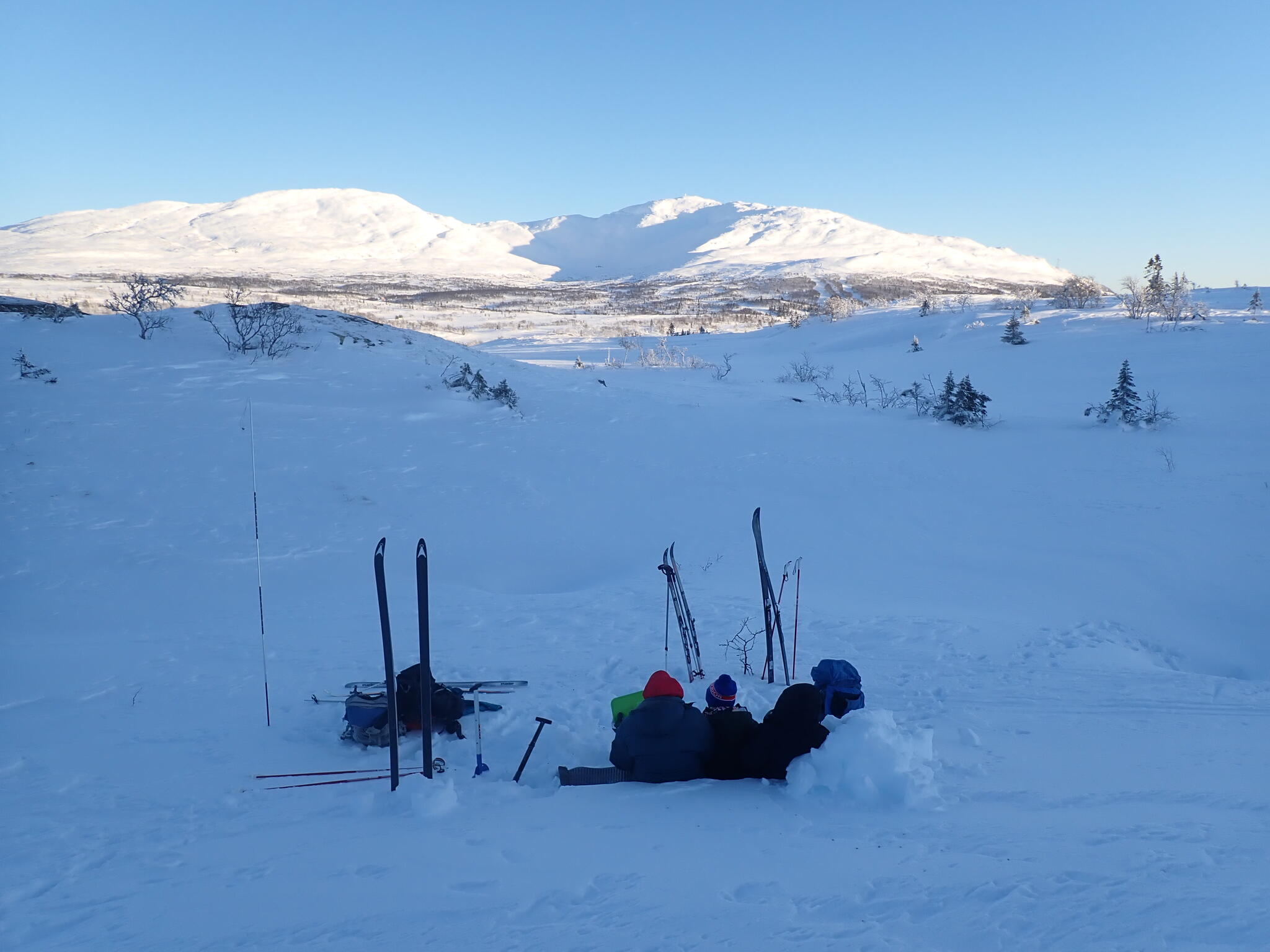 Strax efter skogsdungen ovan åt vi lunch. Solen gick då bakom Mullfjället, men vi hade det mysigt och bra.