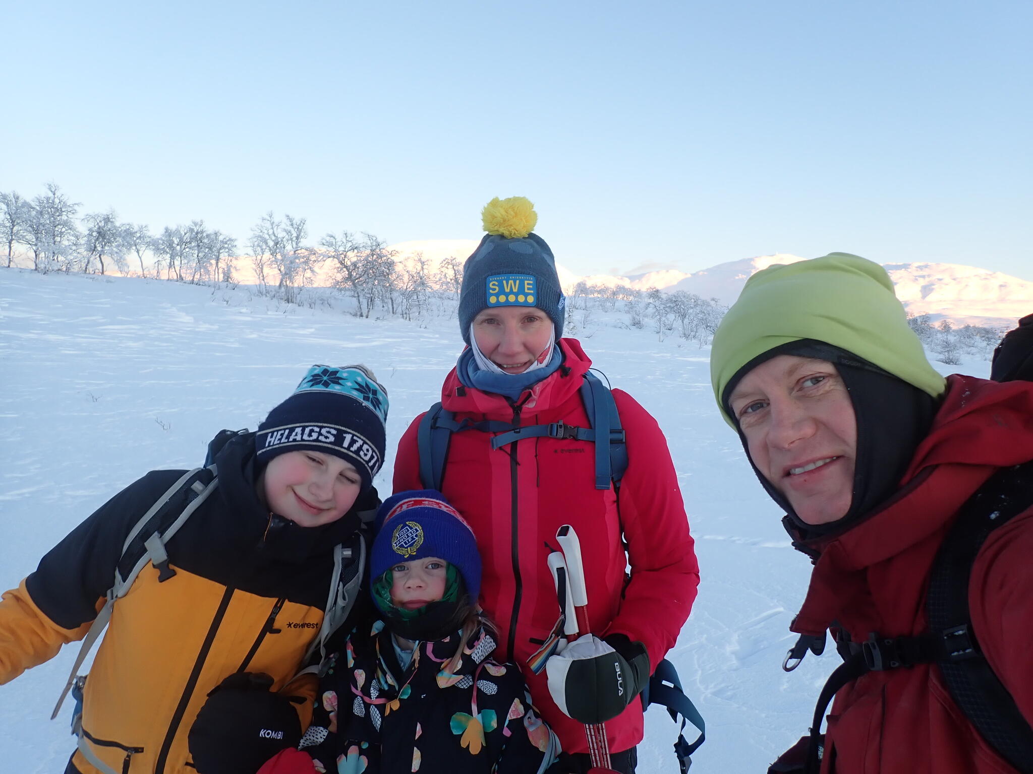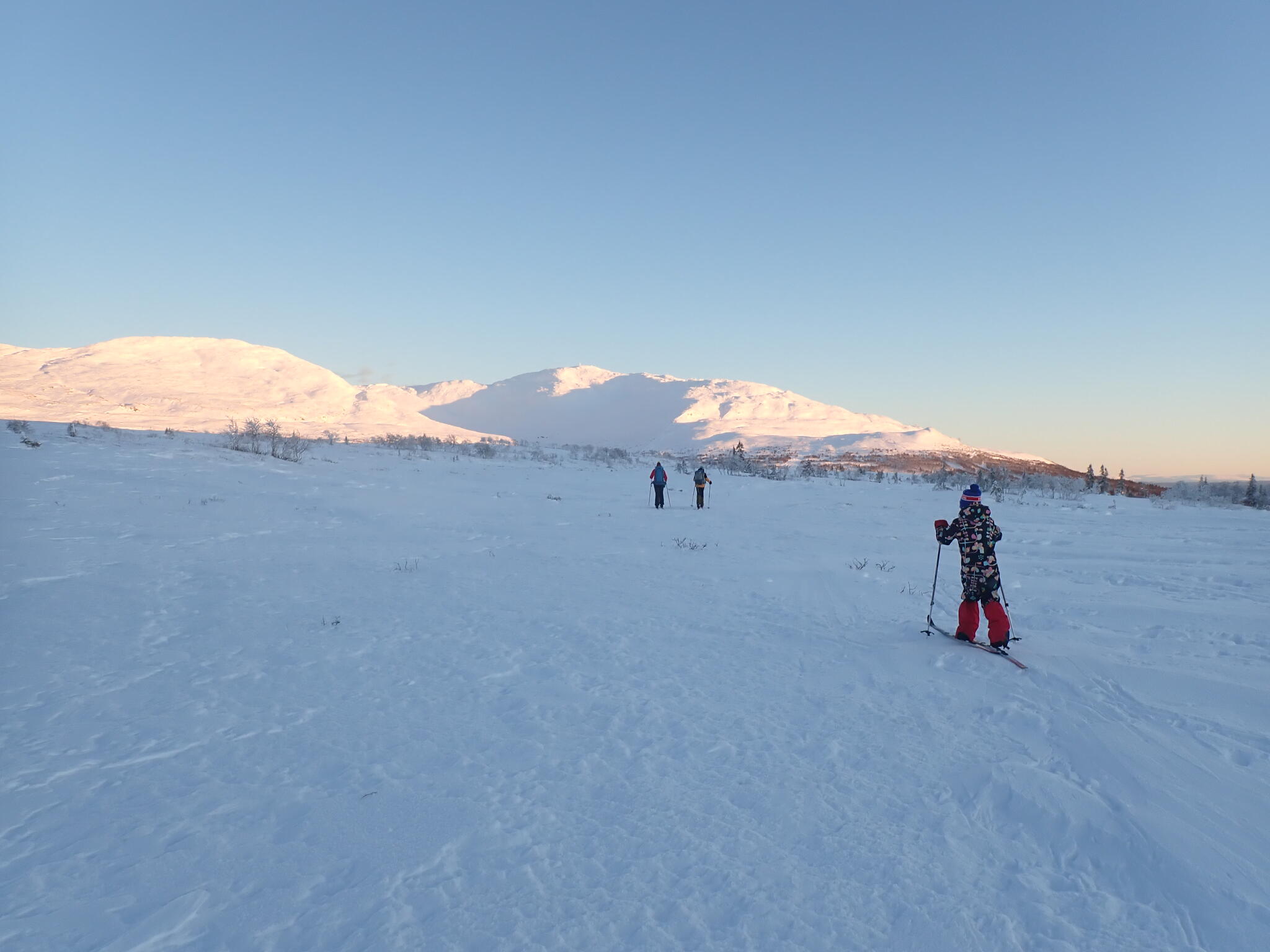 När vi lämnade E14 för att köra upp i Ullådalen visade bilens termometer -24. Vid parkeringen i Ullådalen var det -18. Så ändå rejält kallt. I alla fall för barnen vars pjäxor hade legat i bakluckan där det var kallt. Vi pälsade på oss och skickade iväg norrut.