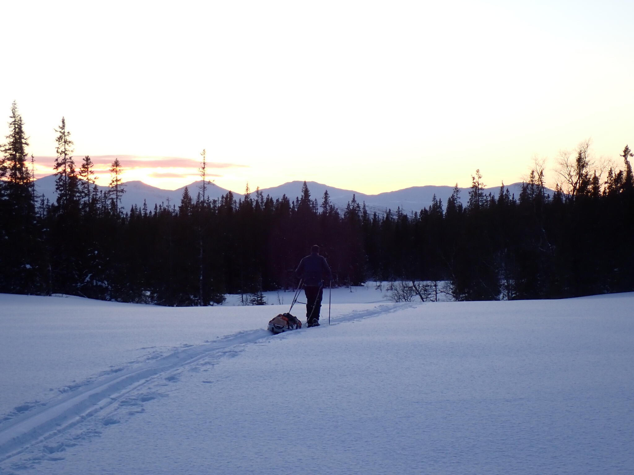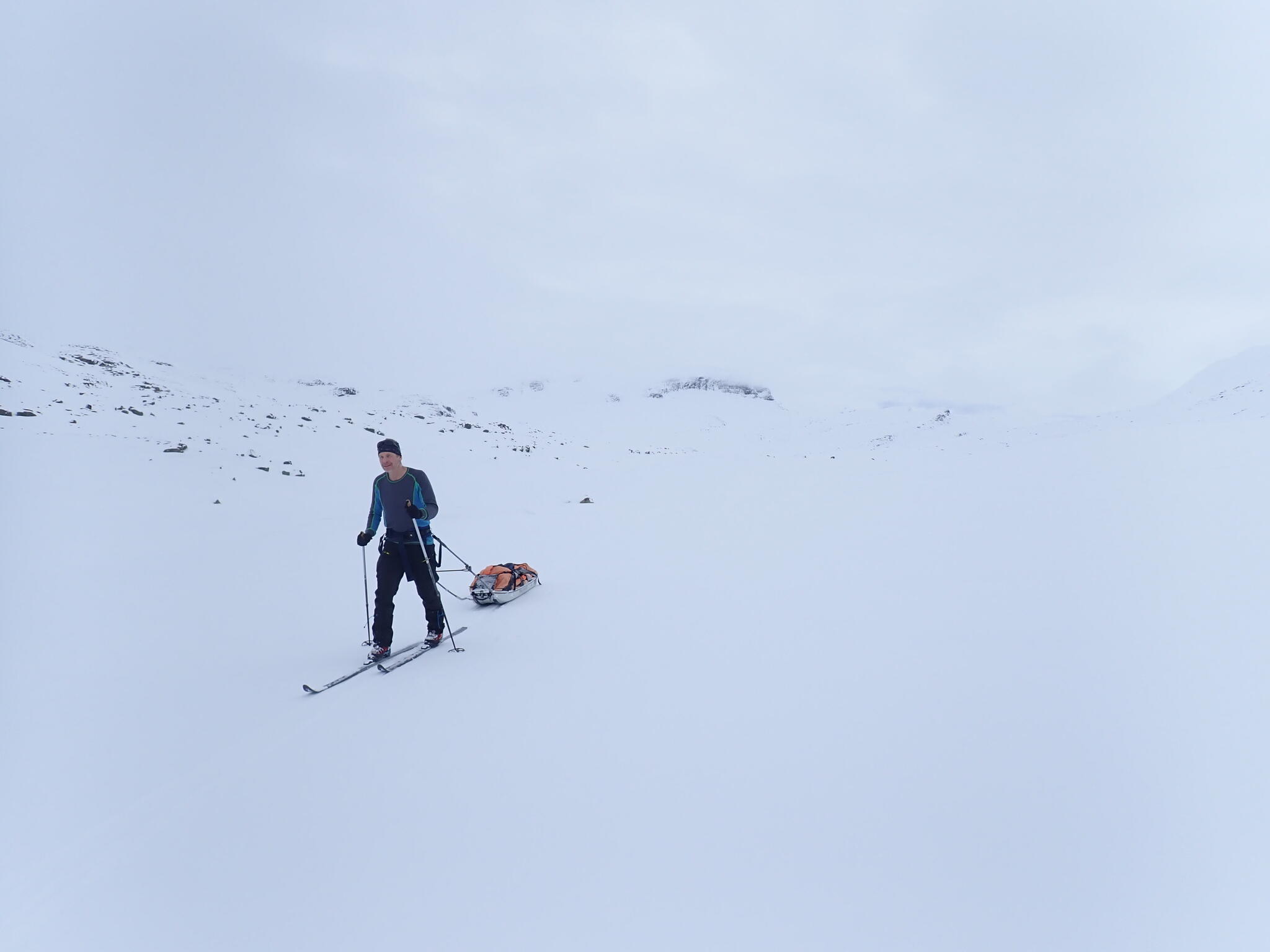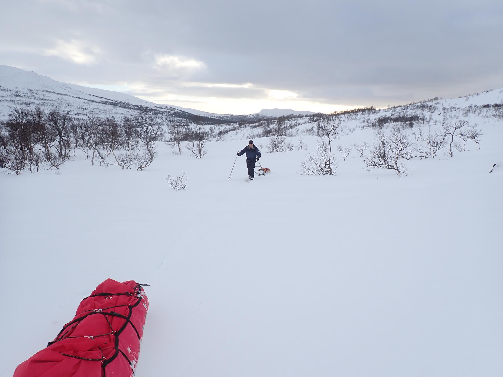 Vi skidade upp i passet mellan Grönfjället och Giedtiegaejsie, för att sedan kunna åka ner på Sösjön.