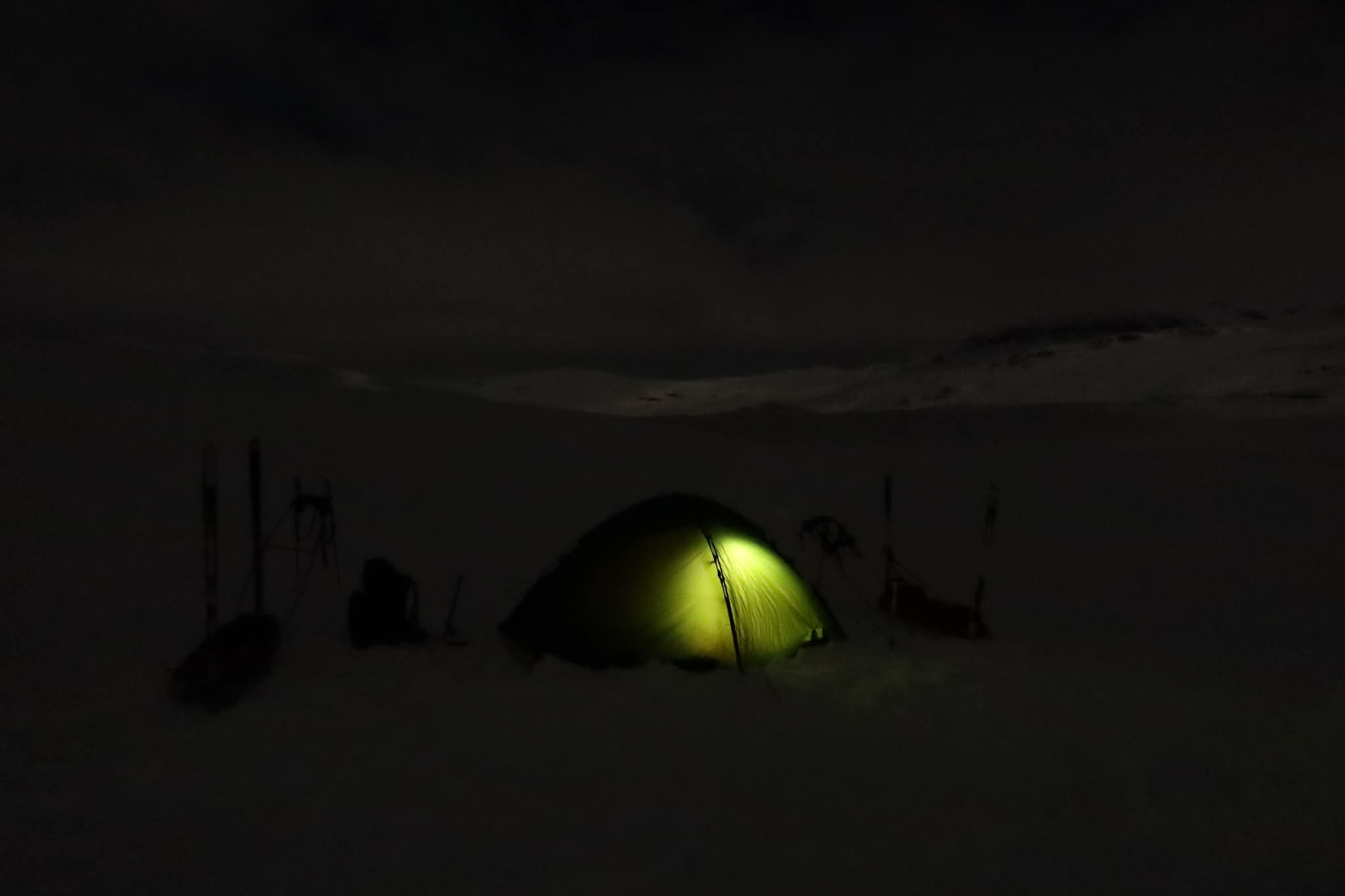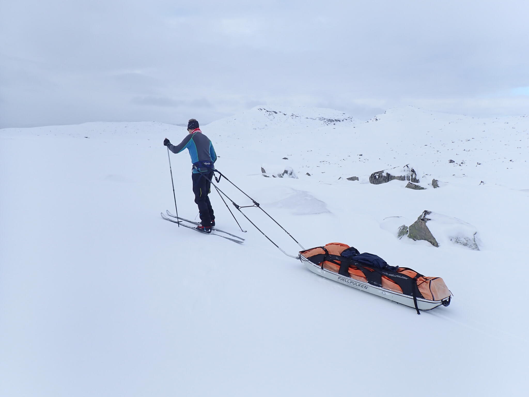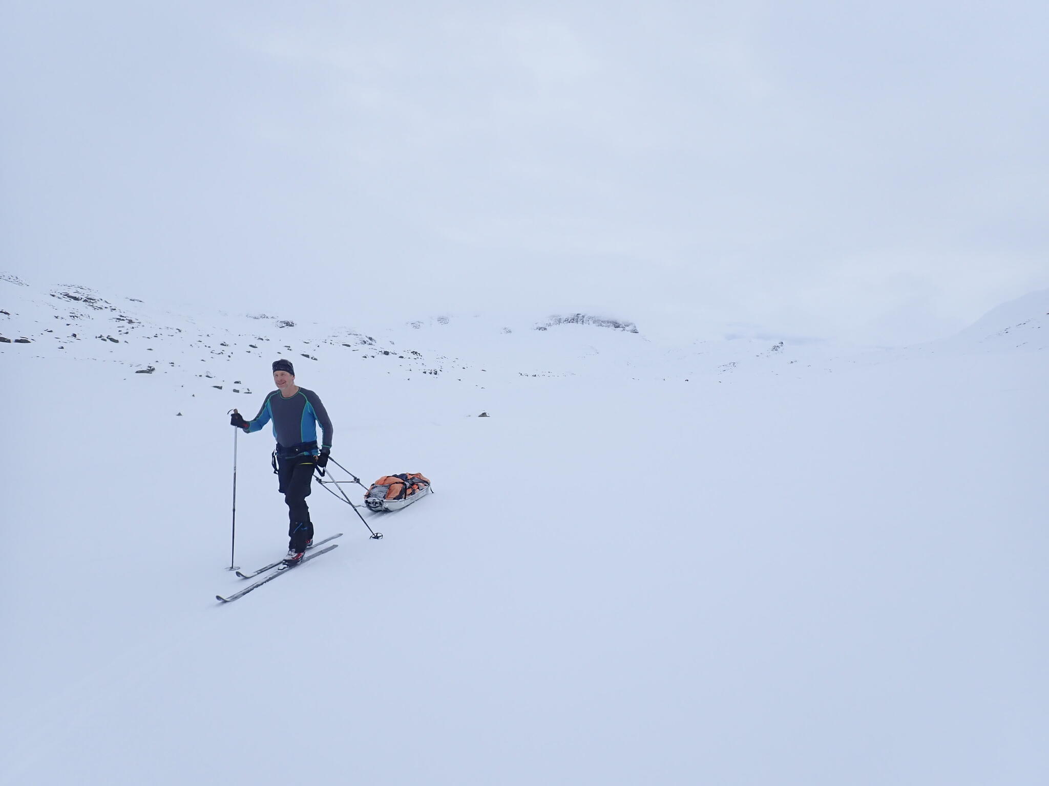 Vi skidade upp i passet mellan Grönfjället och Giedtiegaejsie, för att sedan kunna åka ner på Sösjön.