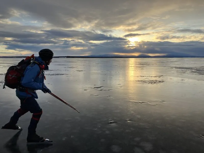 Ett par timmars skridskotur på Storsjön i skymningen för att undersöka hur mycket åkbar is det finns. Vi hittade helt ok is i Fannbyviken.
