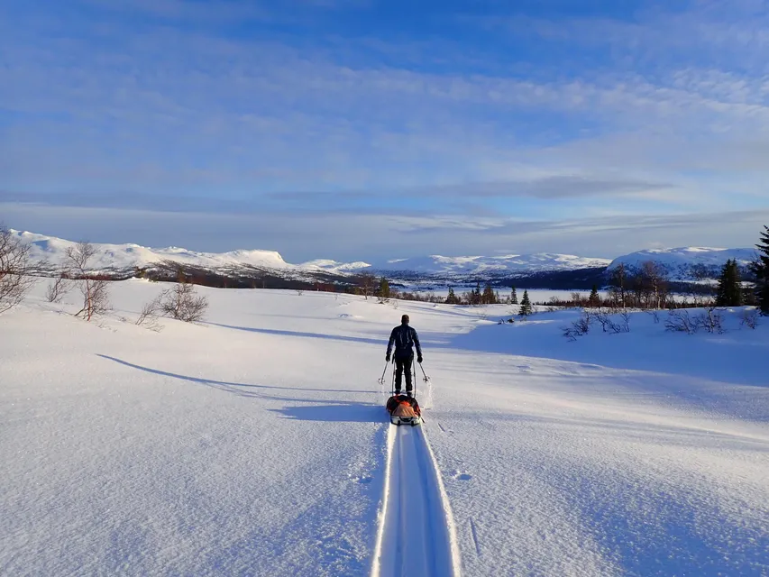 En kul tälttur i ett fint fjällområde. Fantastiska förhållanden på kalfjället med bra pulkaföre. Jättefin topptur. Tungspårat i skogen, med djup lössnö. Så kul när det går att komma iväg så här på en helgtur med tältövernattning!