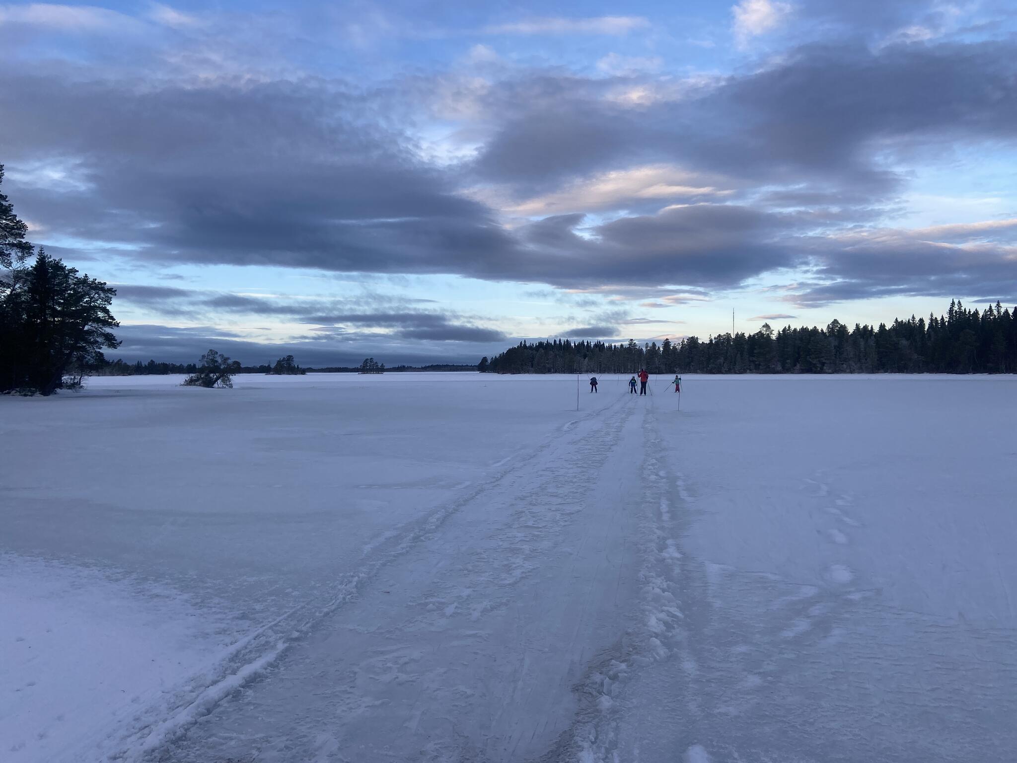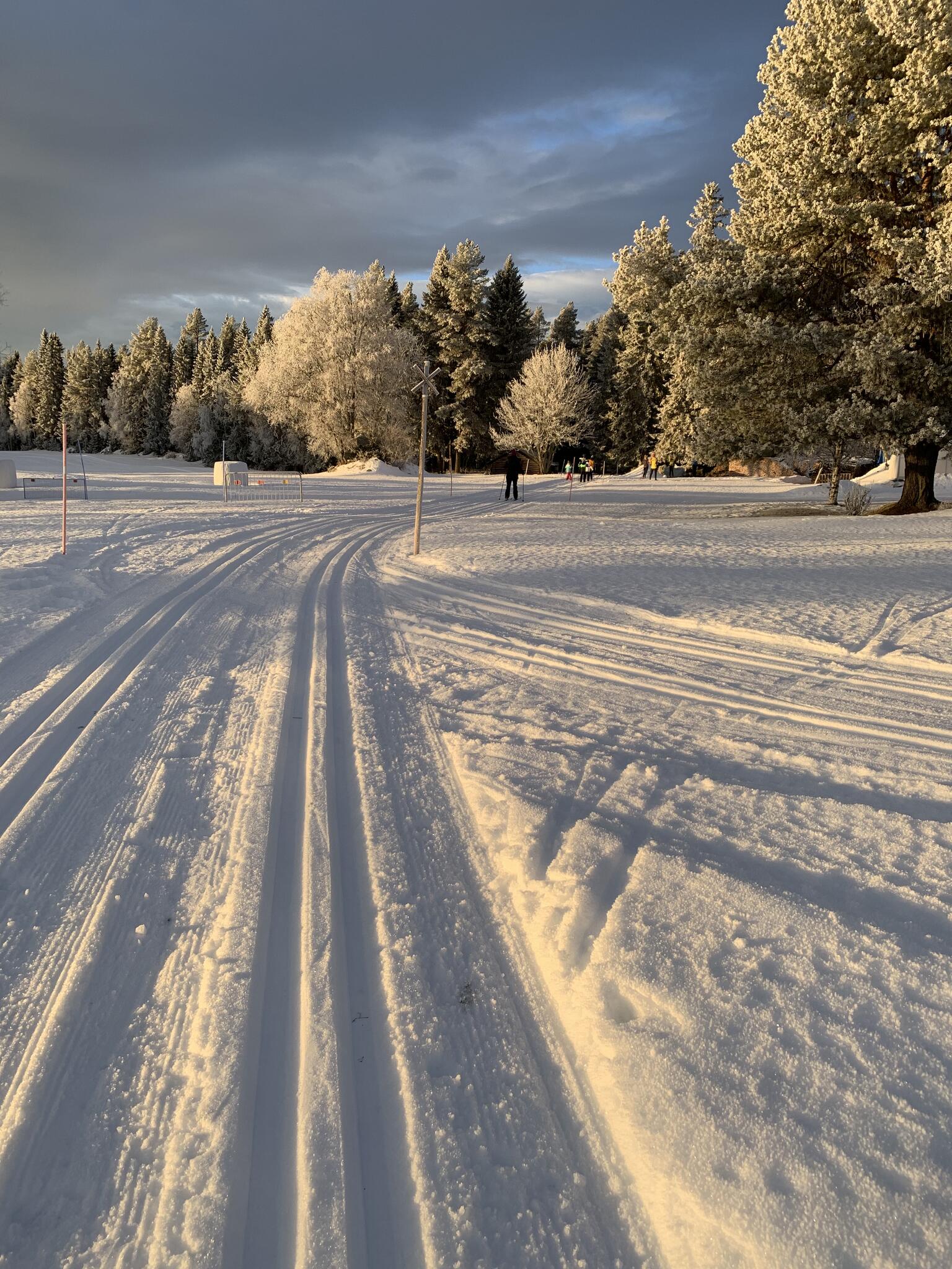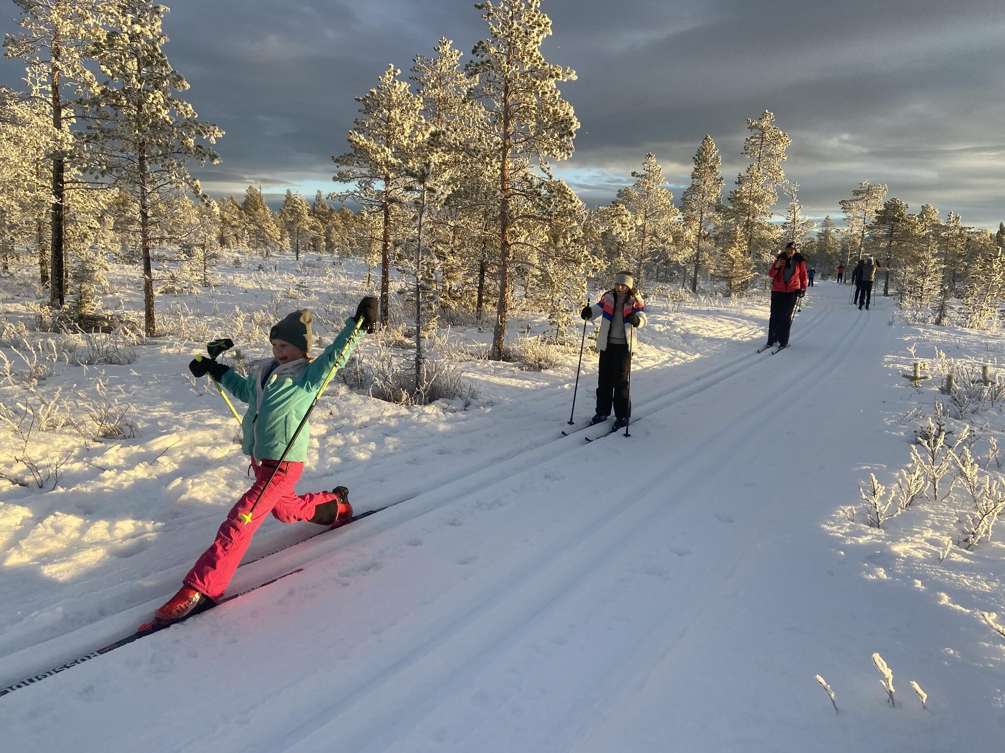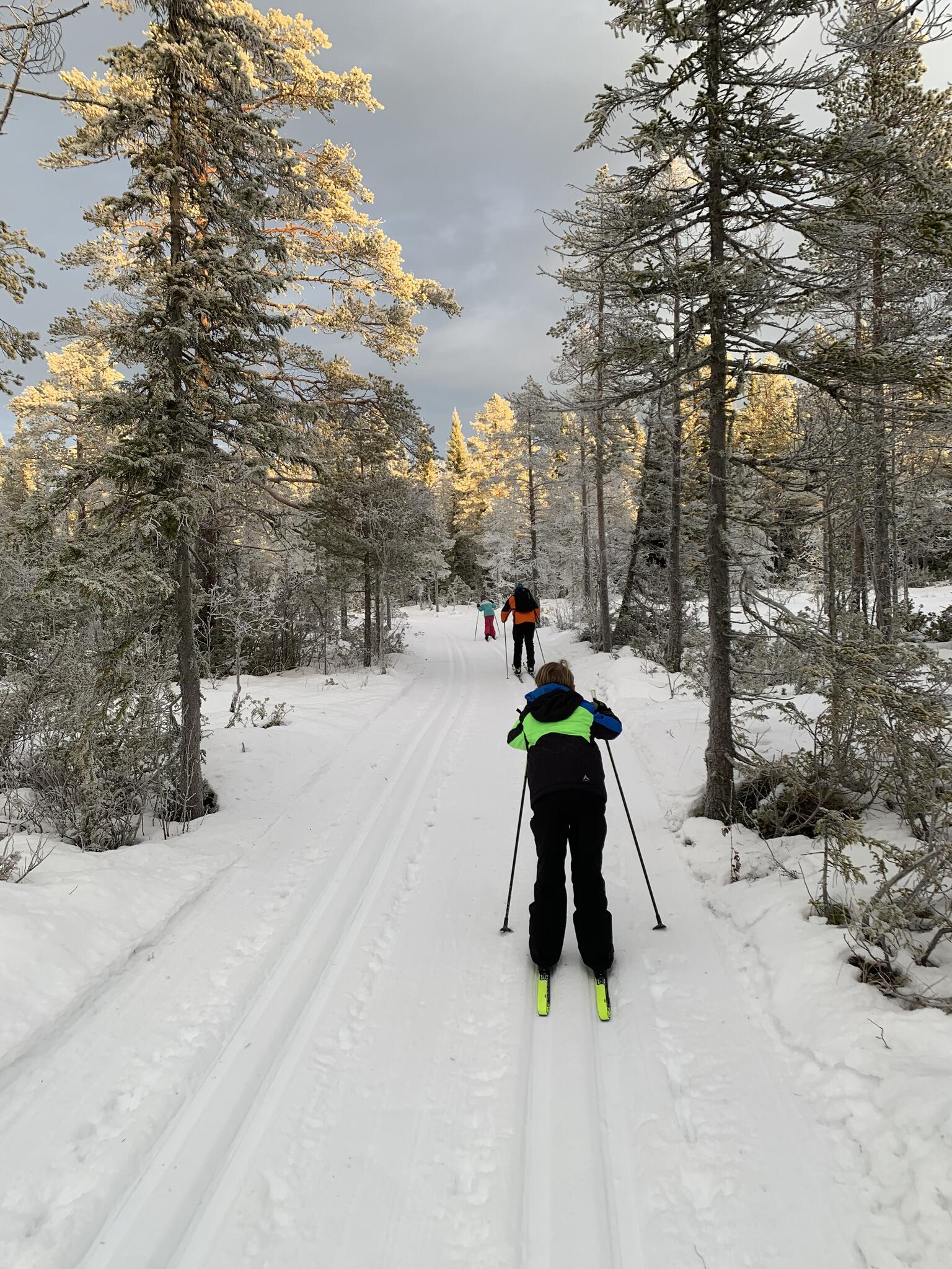 En julig och snöig liten skidtur på 12 km i finfina skidspår i barnens tempo.
