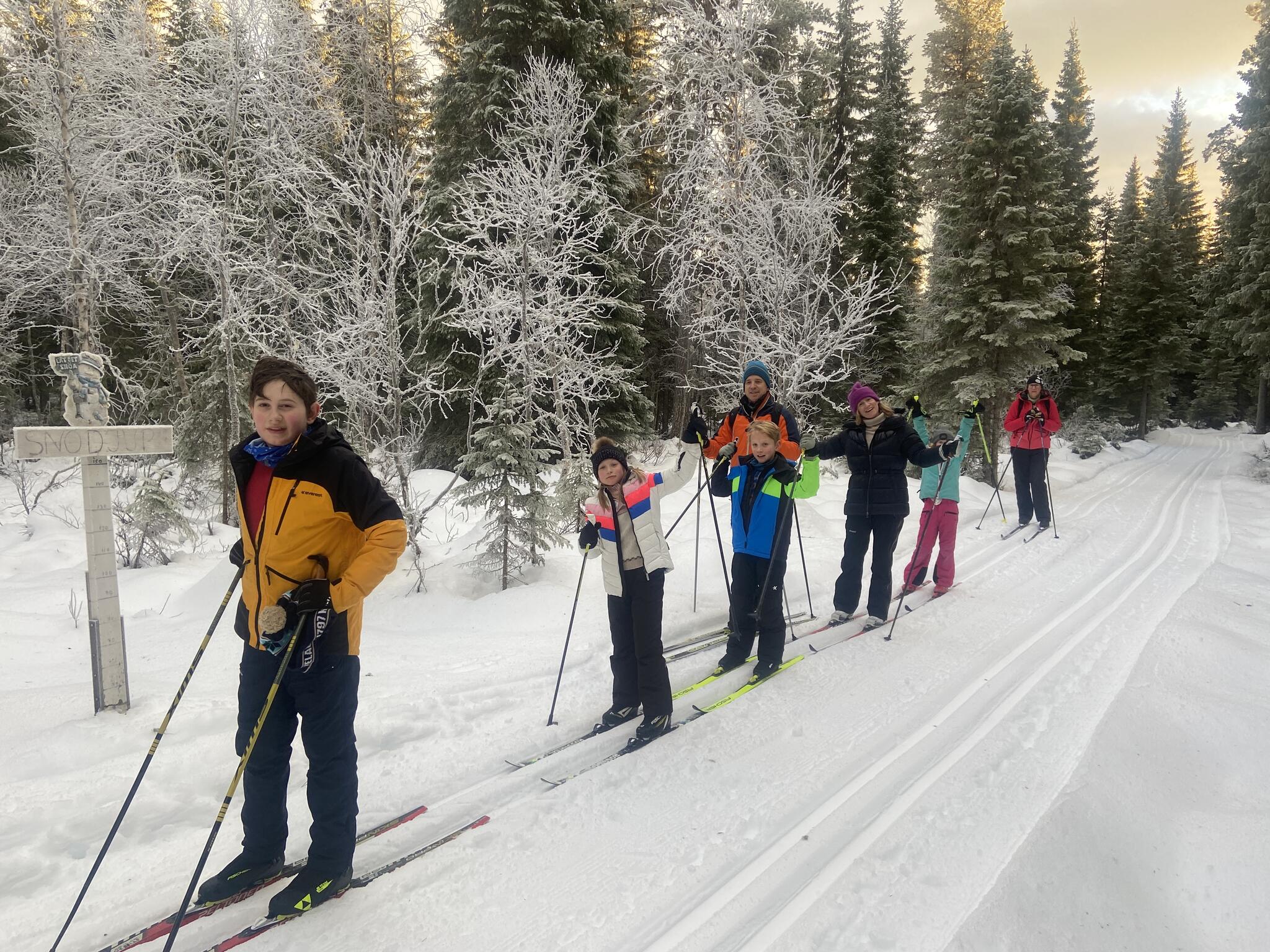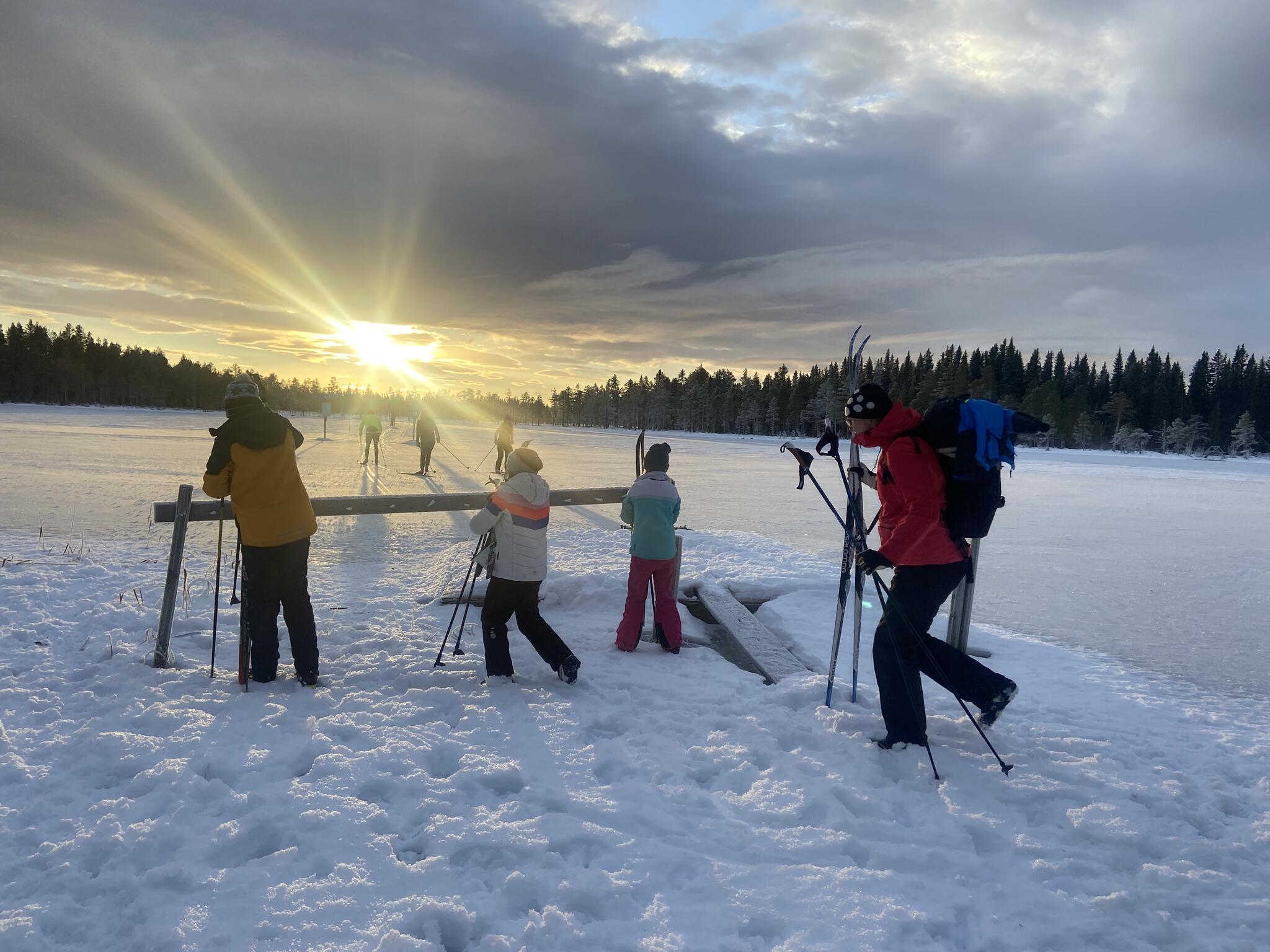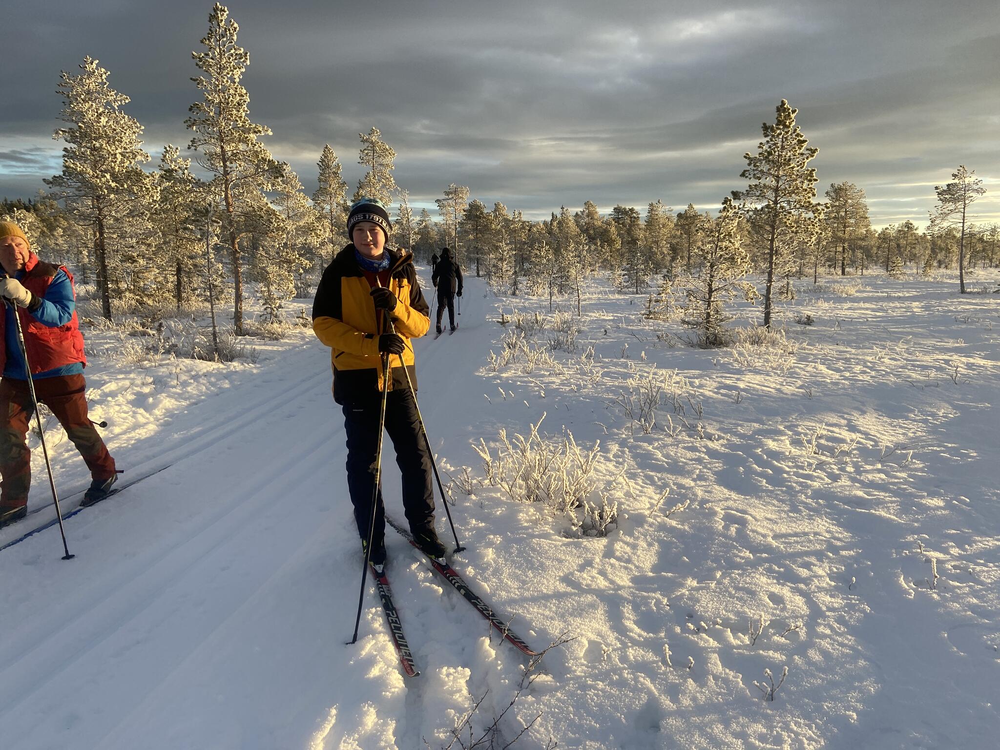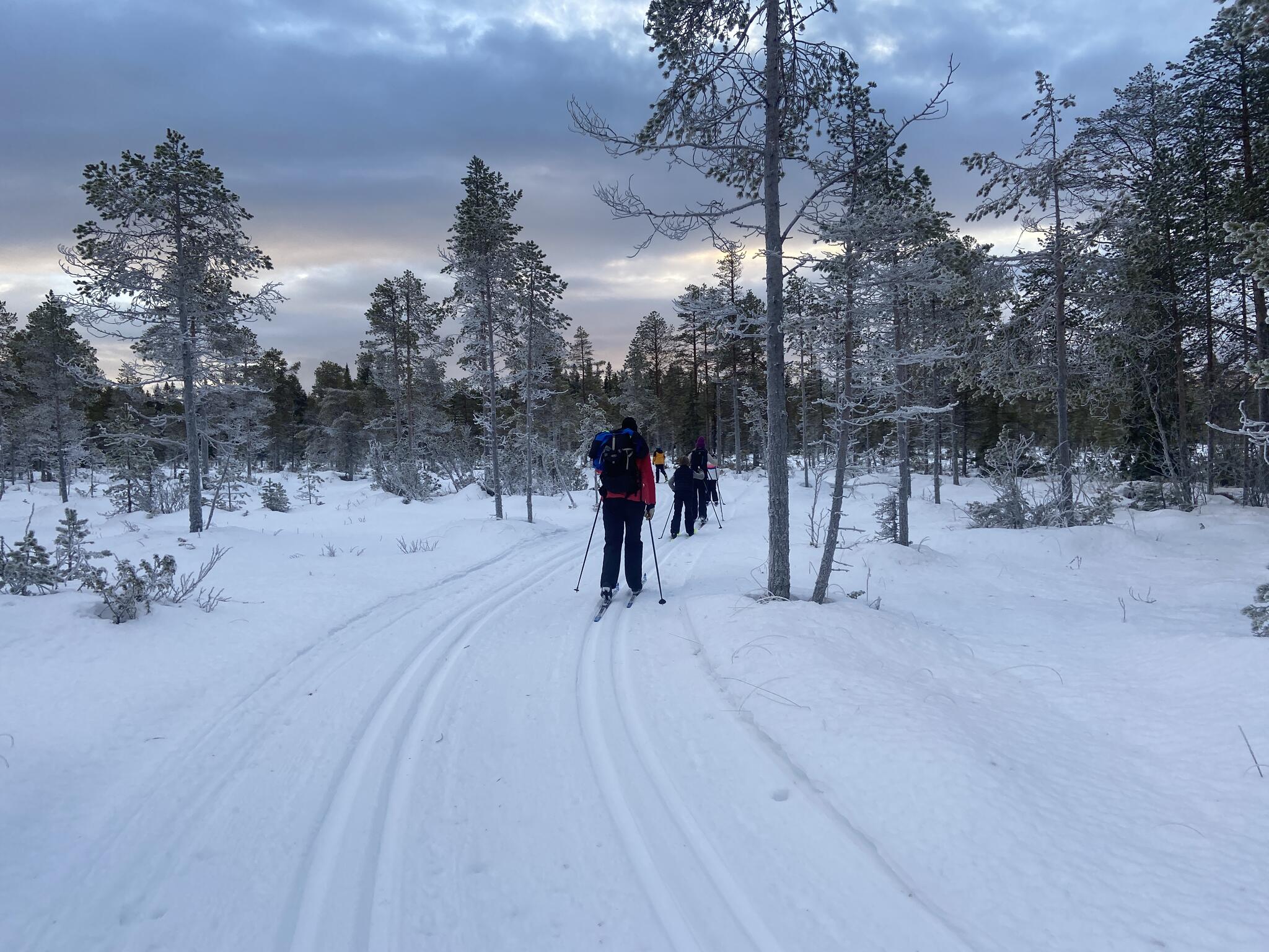 En julig och snöig liten skidtur på 12 km i finfina skidspår i barnens tempo.