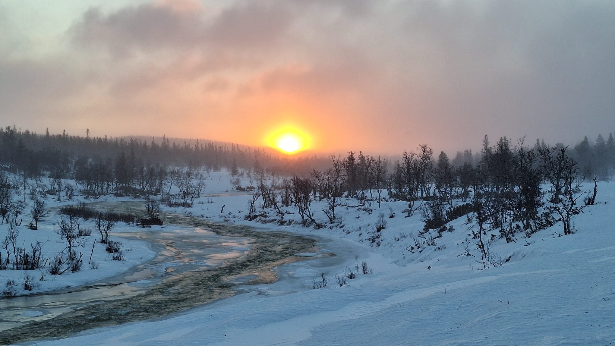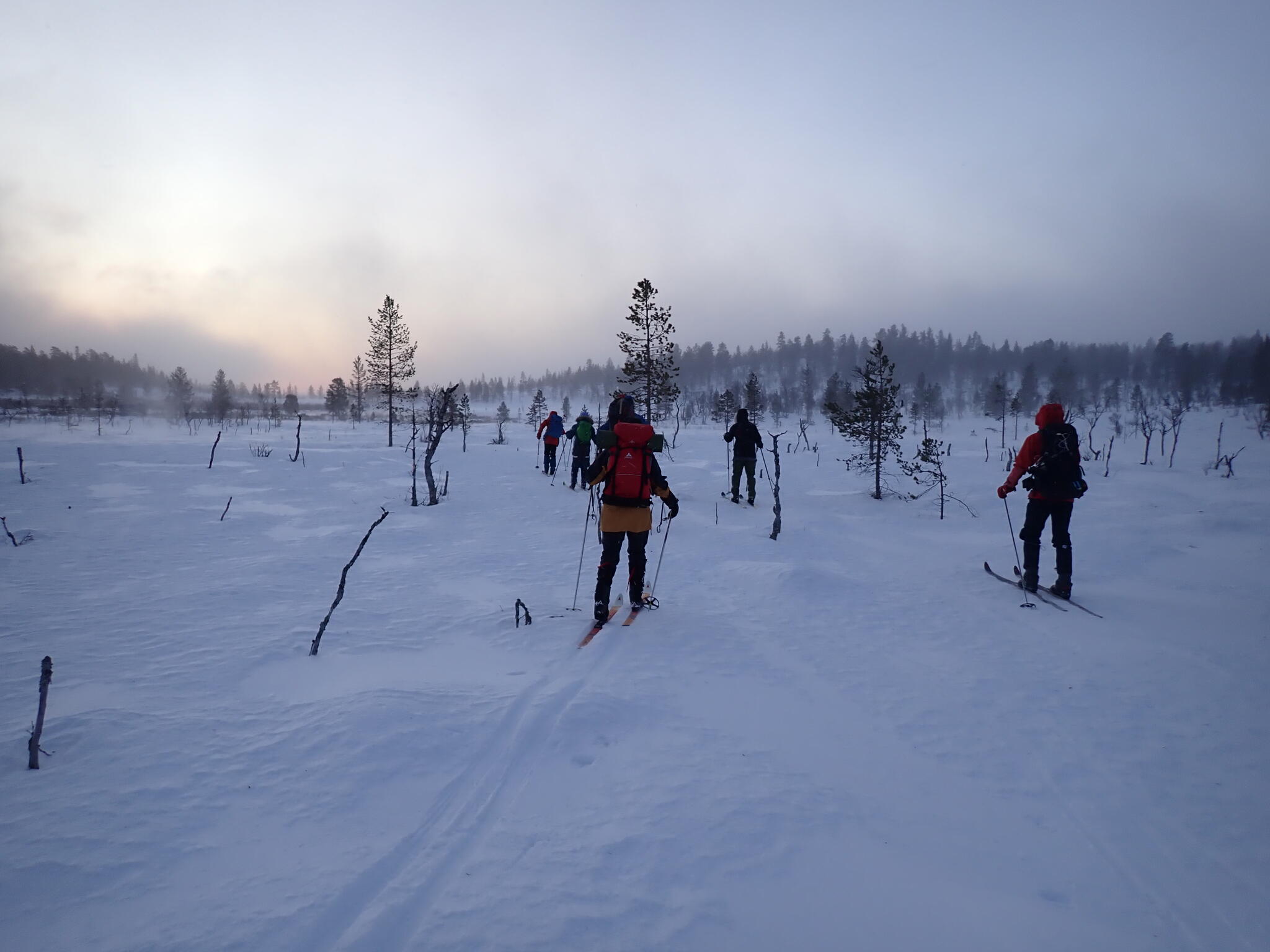 Vi började med att skida i medvind nedströms Grövlan på myrarna.