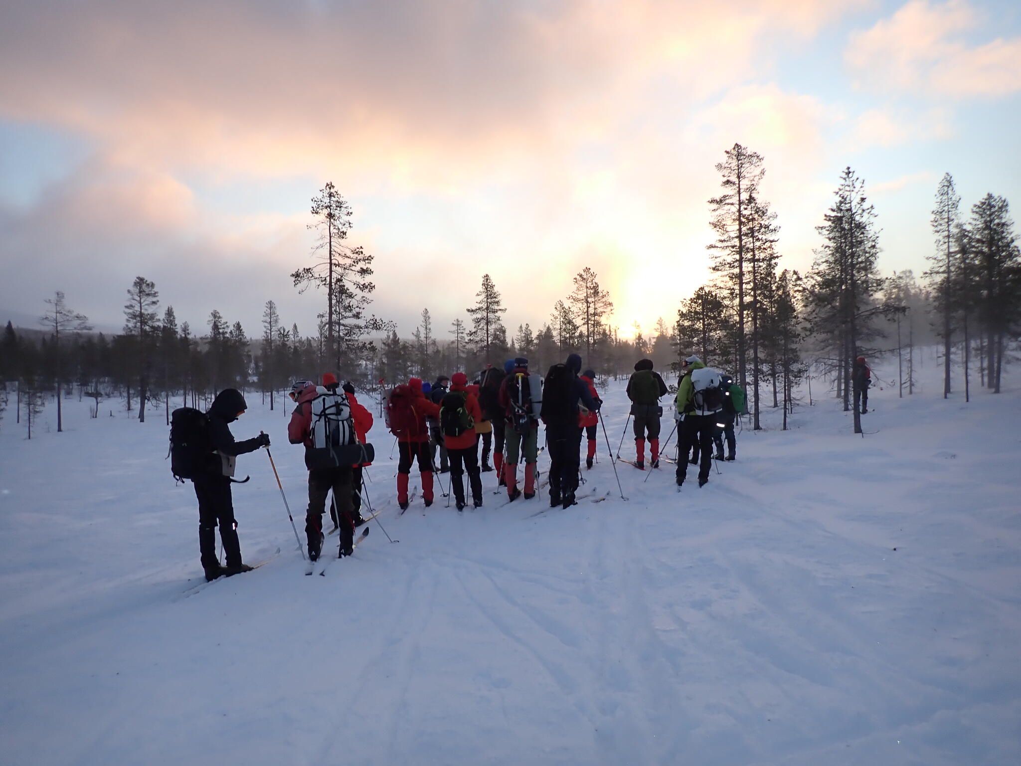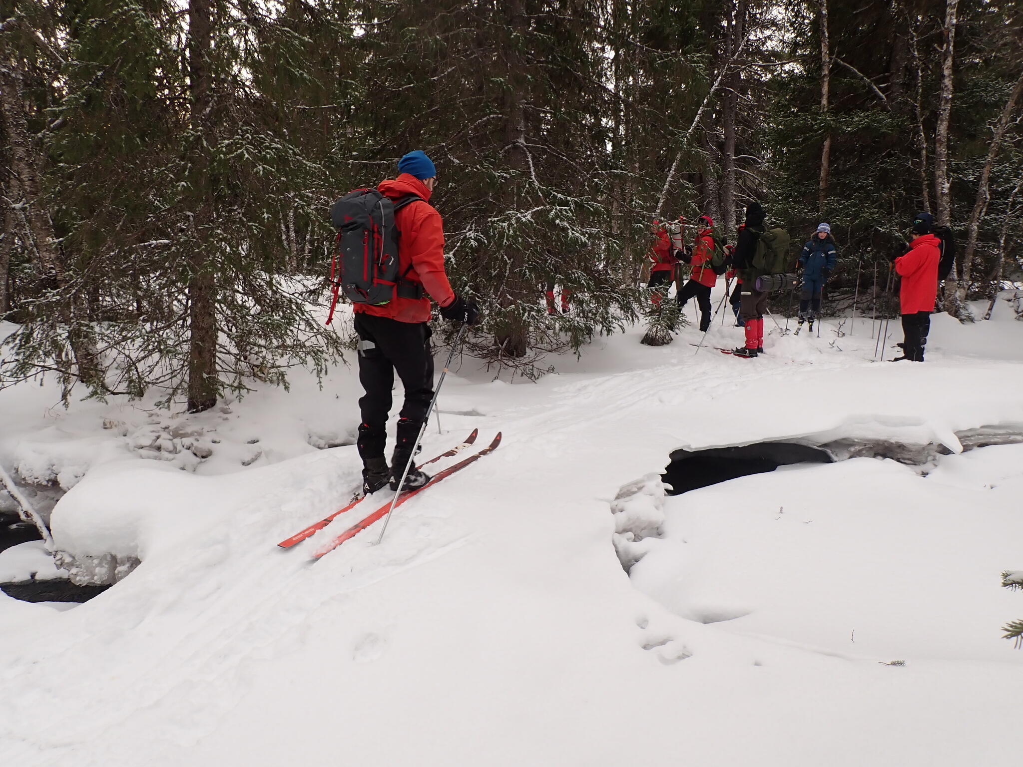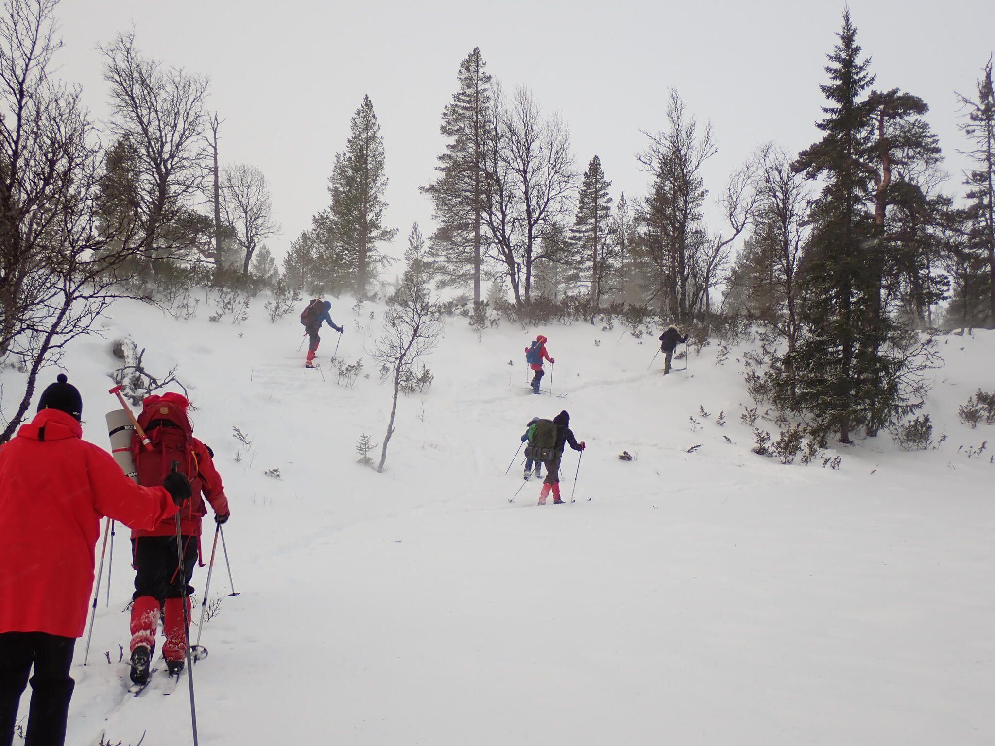 Då det skulle blåsa mycket denna dag skidade vi mestadels i skog. Praktiskt för de flesta av oss att utgå från boendet på Sjöstugan.