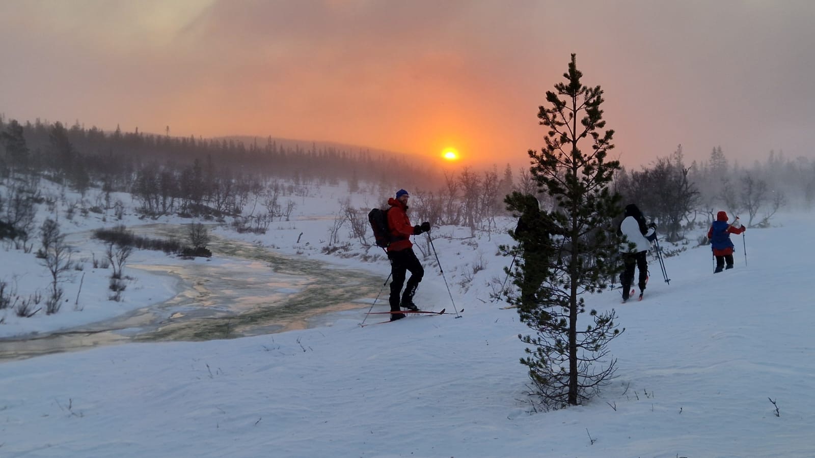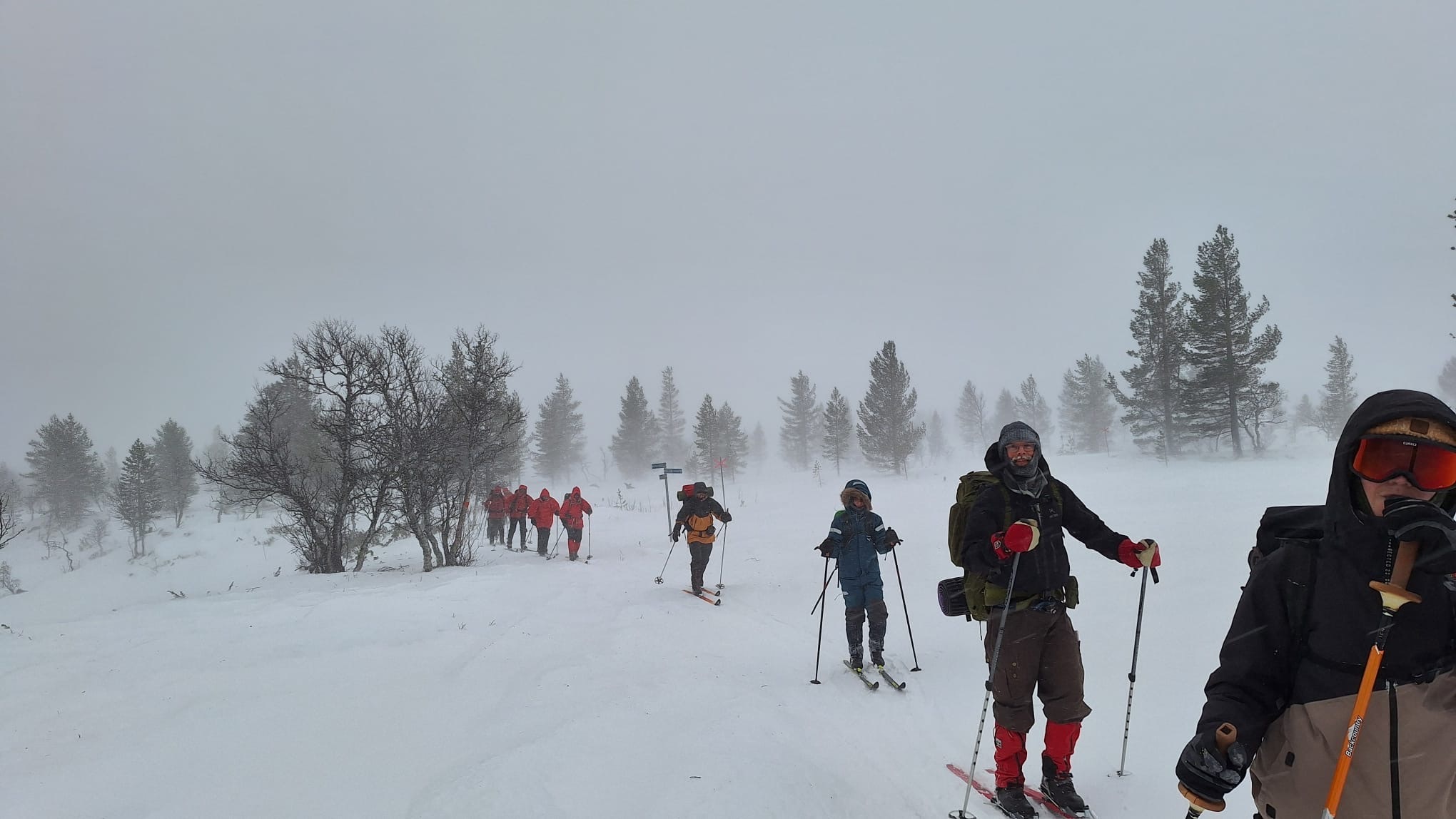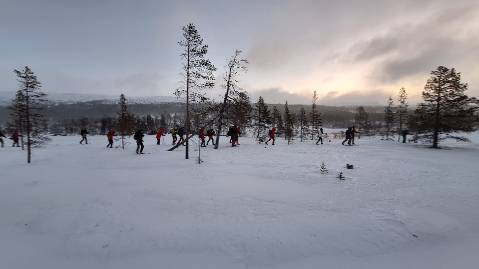 Då det skulle blåsa mycket denna dag skidade vi mestadels i skog. Praktiskt för de flesta av oss att utgå från boendet på Sjöstugan.