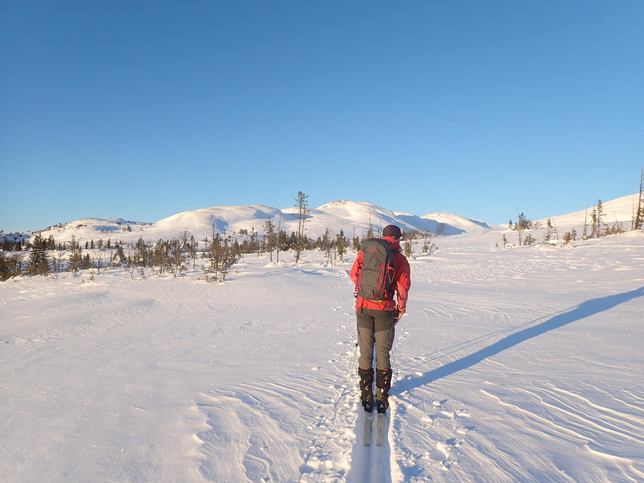 Det var fortfarande lite för lite snö under träden så jag höll mig på öppna ytor där det samlats mer snö.