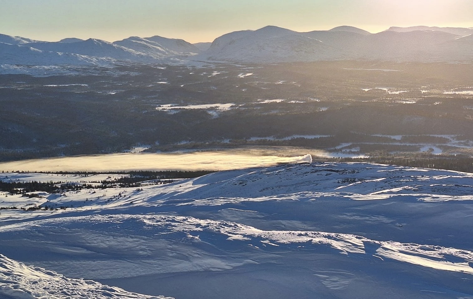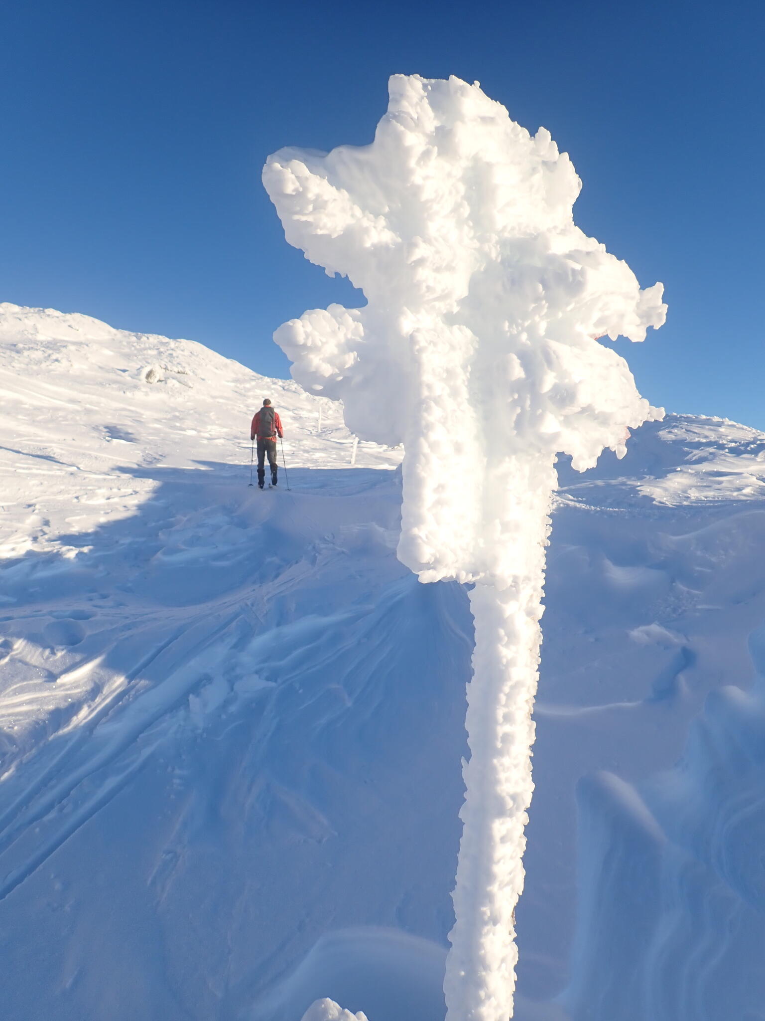 Även järven hade varit uppe på toppen.Iskonst på ledkryssEn rökmaskin. Nere i dalen kom all rök från en skorsten. Kylan gjorde så att röken inte steg uppåt utan blev till ett dimmlock i dalgången.På östra toppen. Betydligt varmare än nere i dalen. Ca 10 grader varmare.