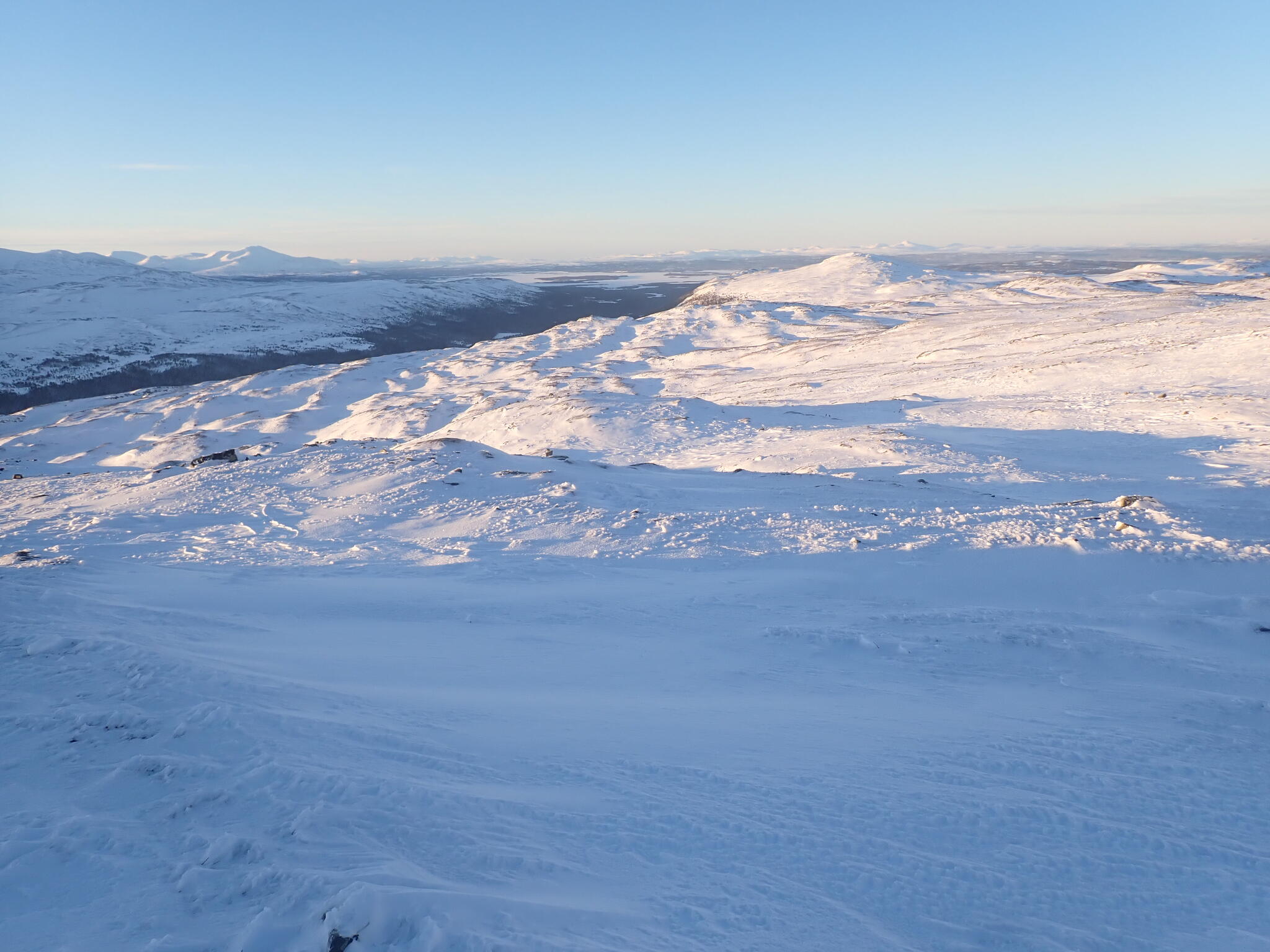Från vindskyddet rundade vi den västra toppen på ungefär samma höjd för att komma tillbaka till våra tidigare spår.