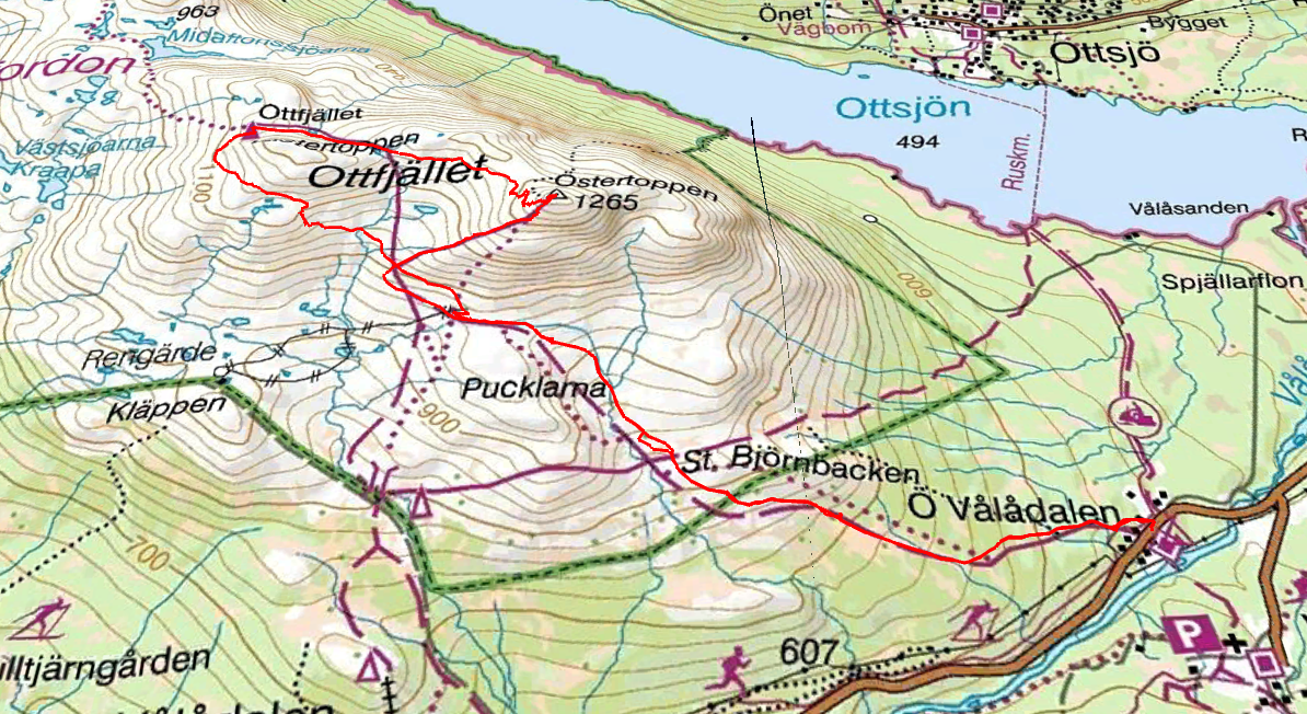En lagom lång och fin tur på Ottfjället. Nytt för oss var att vi utgick från Östra Vålådalen.