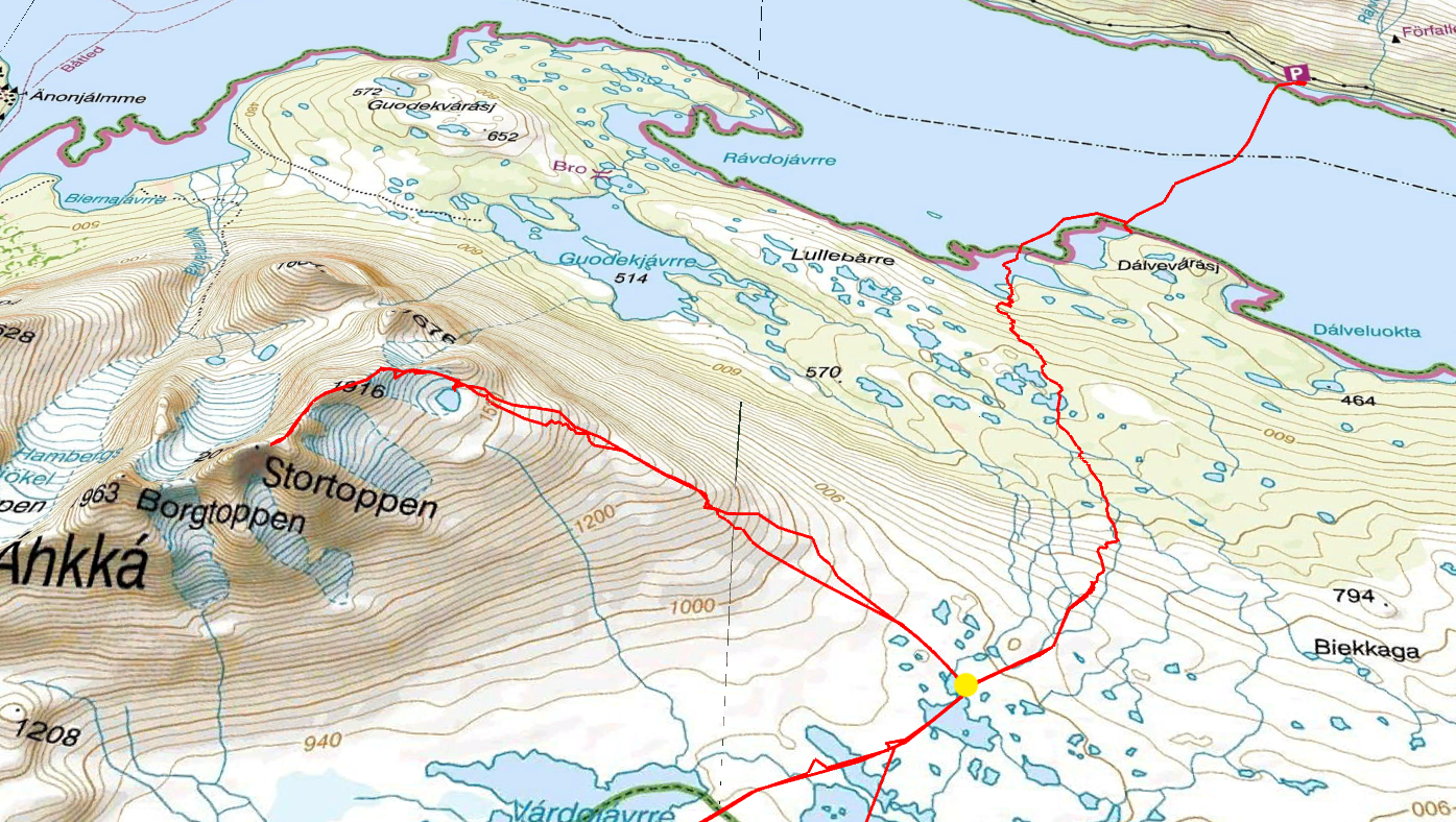 Det var inte helt lätt att hitta en bra väg ner till Ahkkajaure.