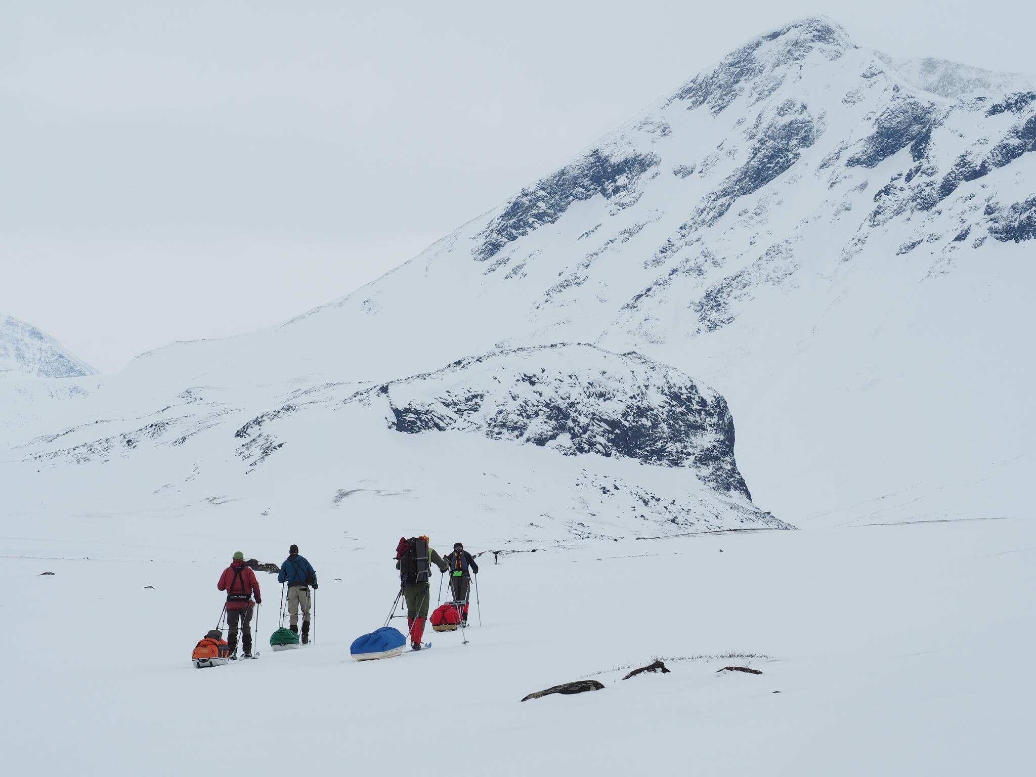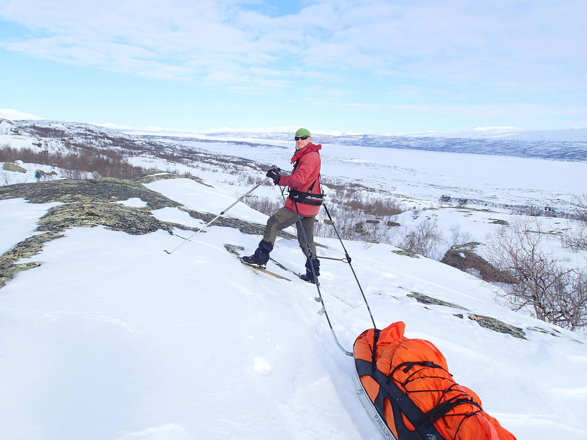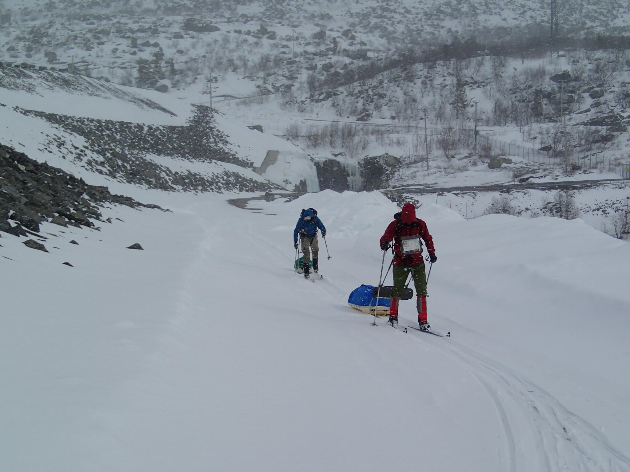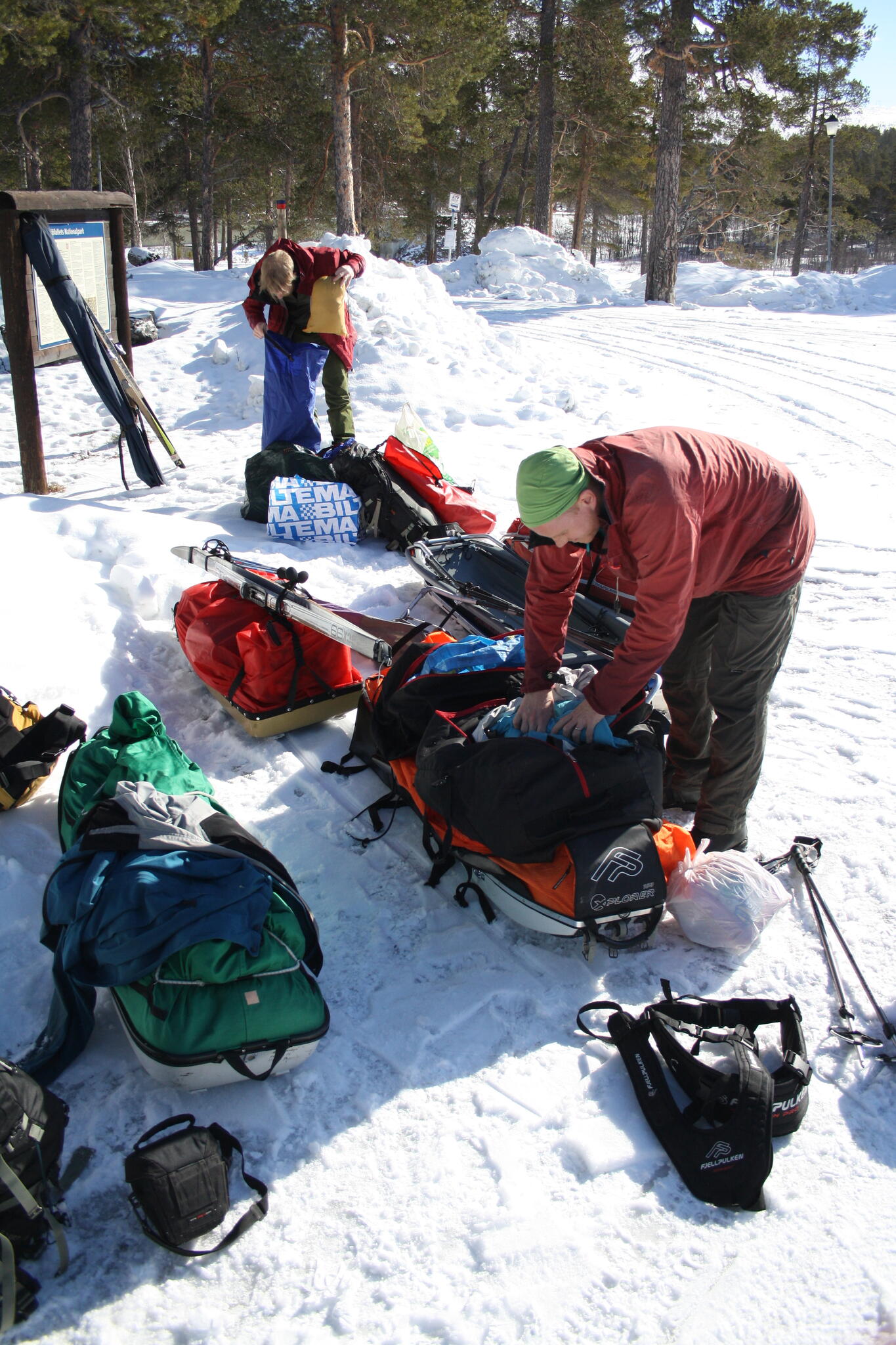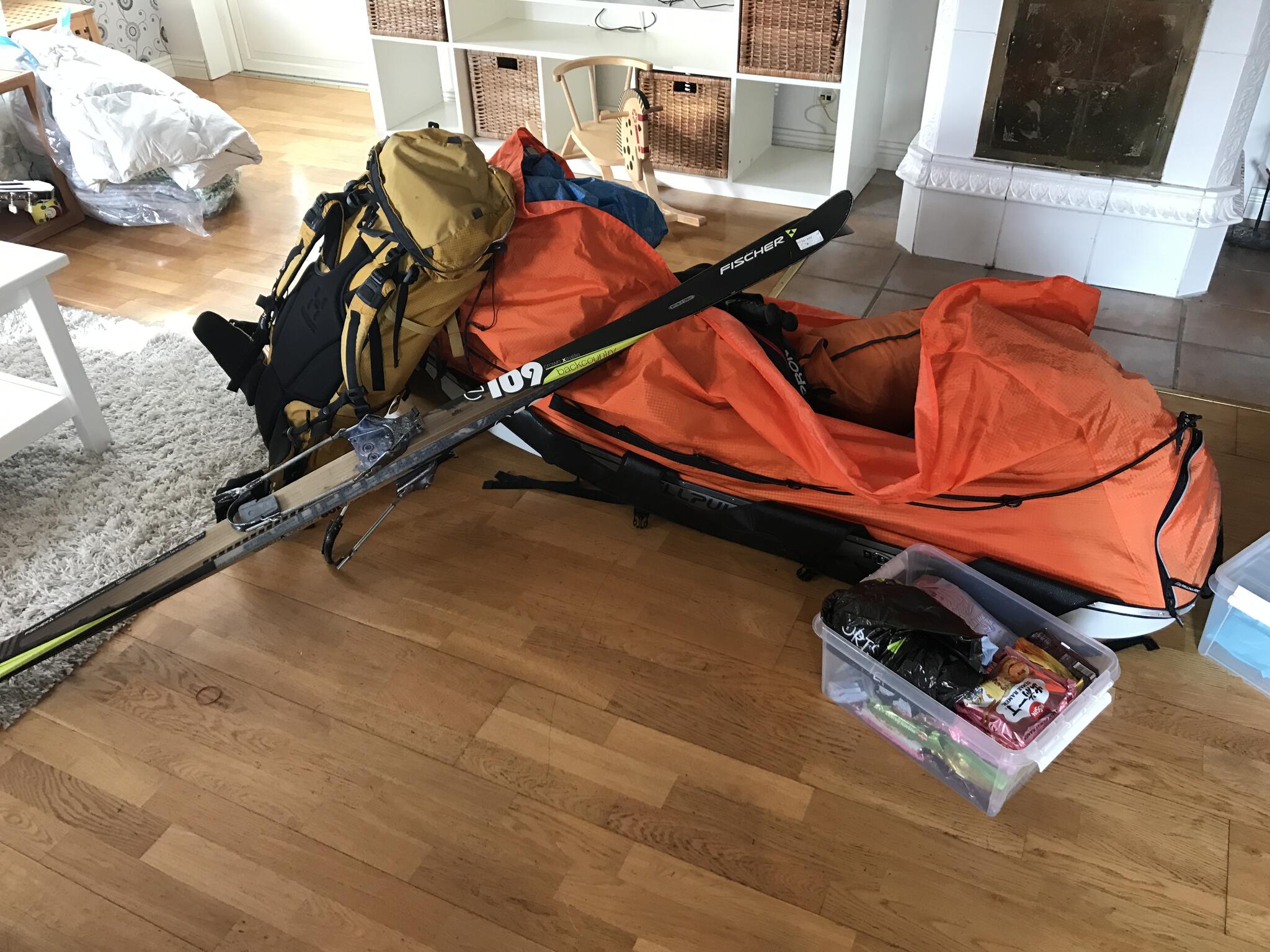 Mot slutet av dagen mötte vi två svenskar med full-lastade pulkor. De hade bl a två snökiter var och topptursskidor. Det såg tungt ut.