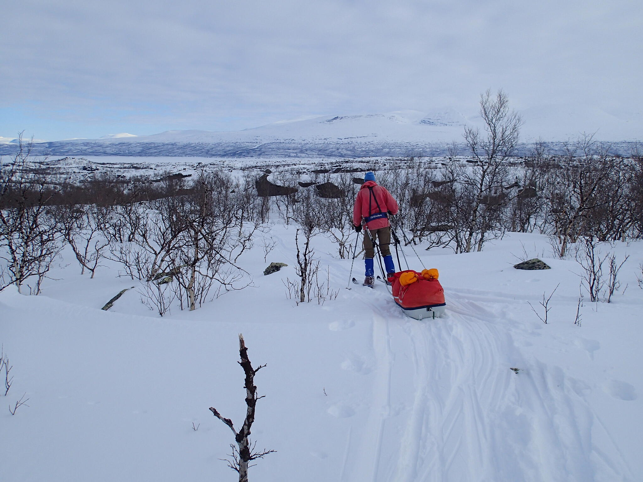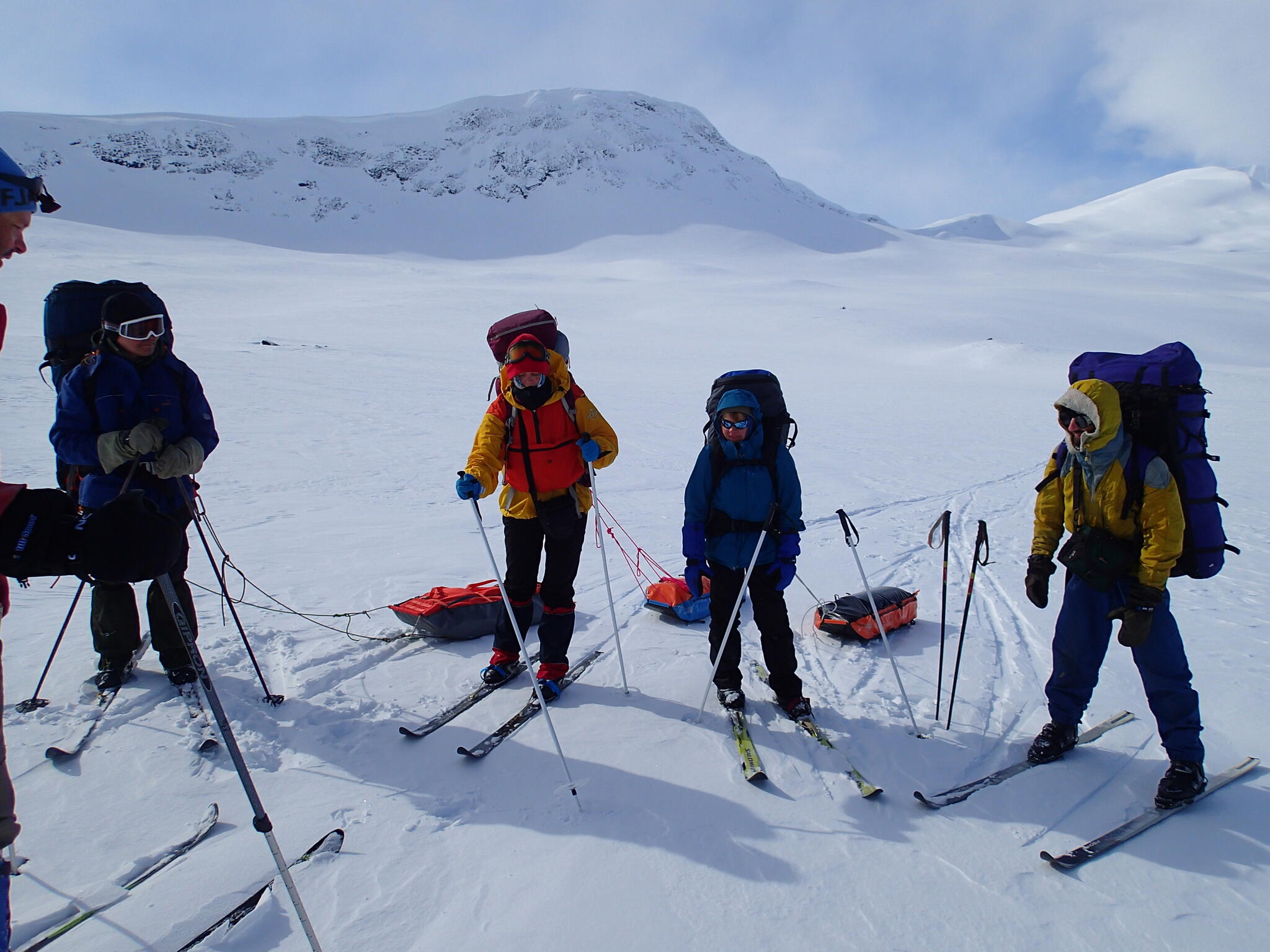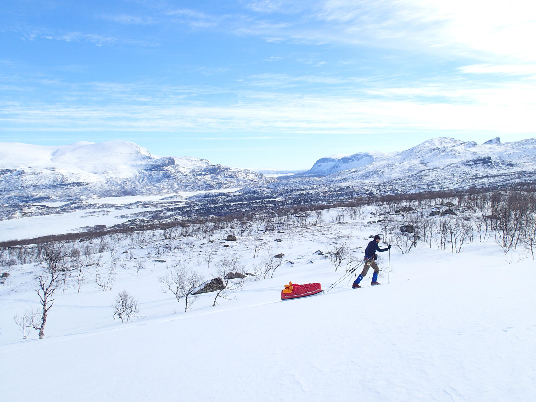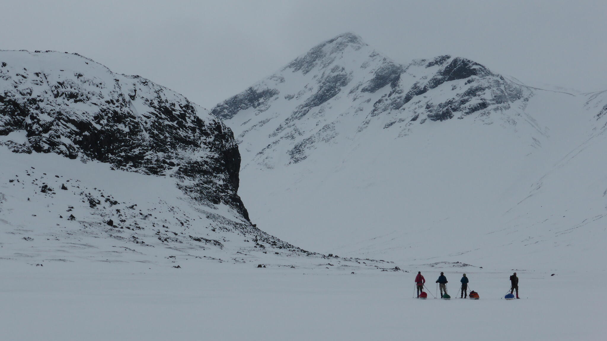 Mot slutet av dagen mötte vi två svenskar med full-lastade pulkor. De hade bl a två snökiter var och topptursskidor. Det såg tungt ut.