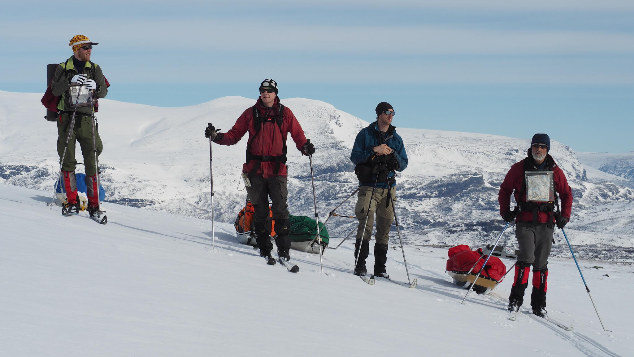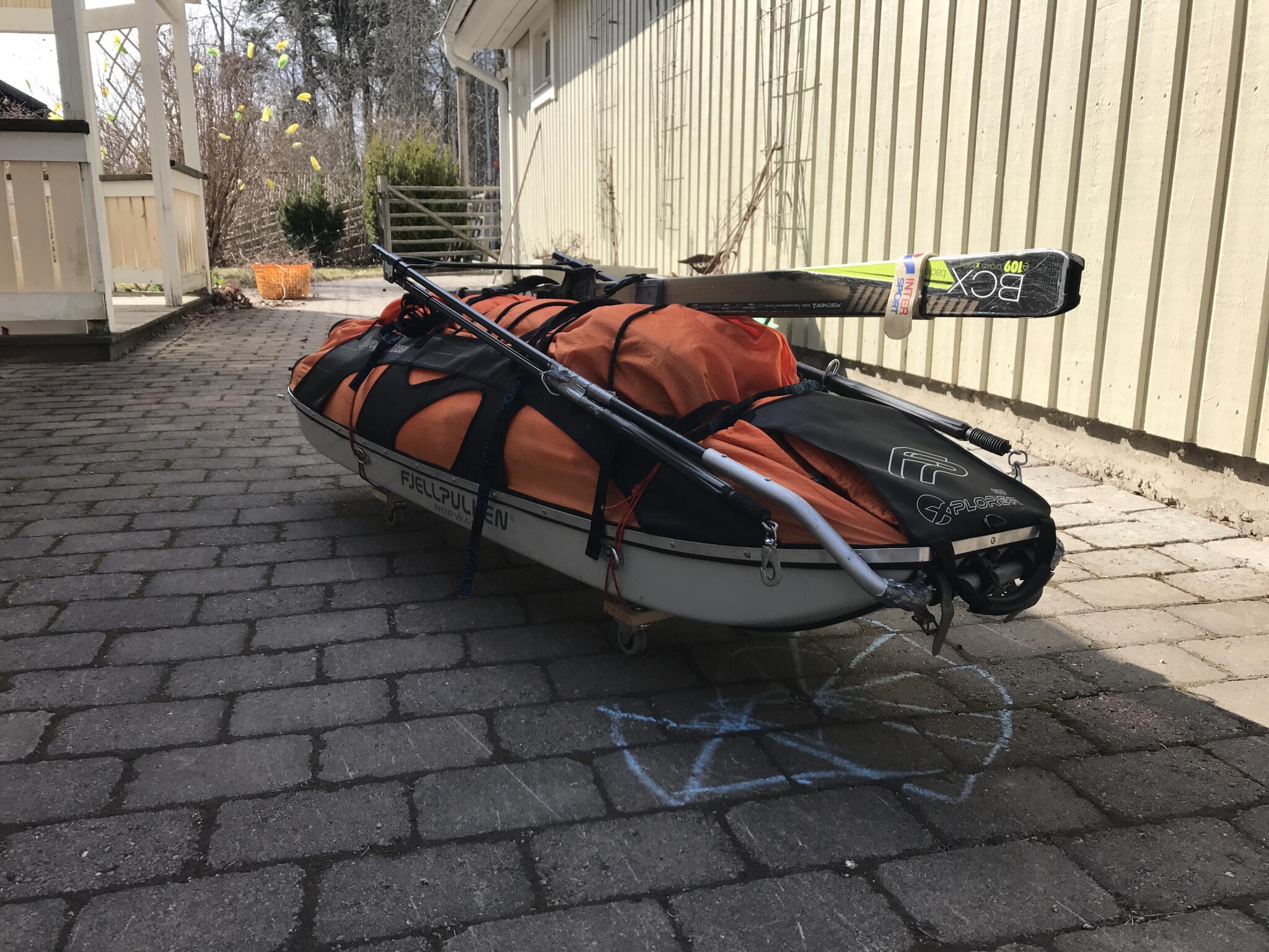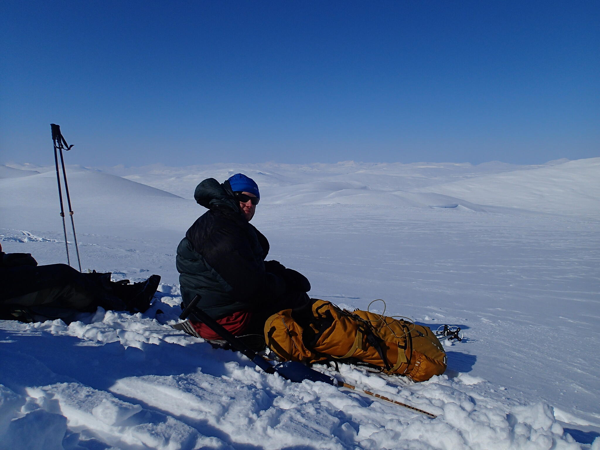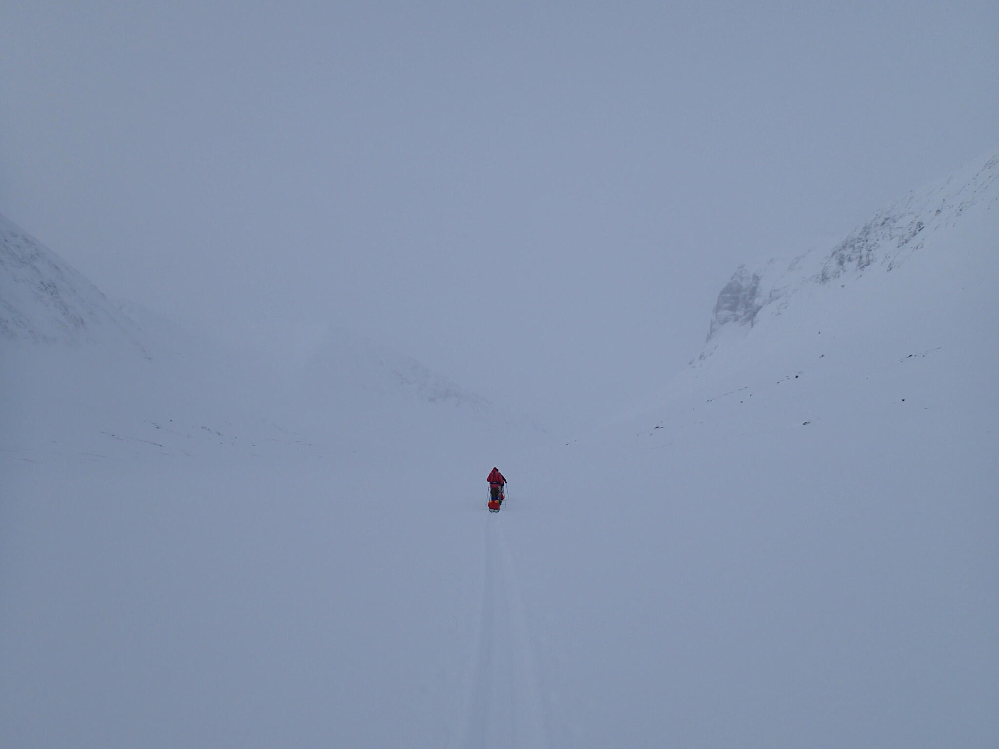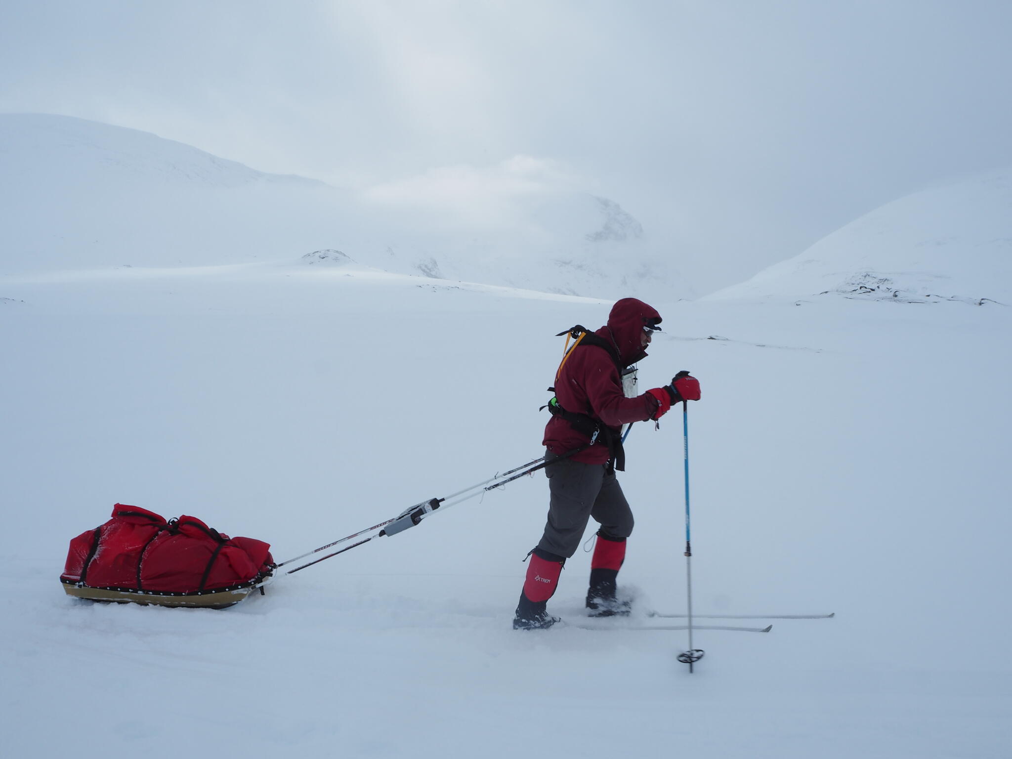 Mot slutet av dagen mötte vi två svenskar med full-lastade pulkor. De hade bl a två snökiter var och topptursskidor. Det såg tungt ut.