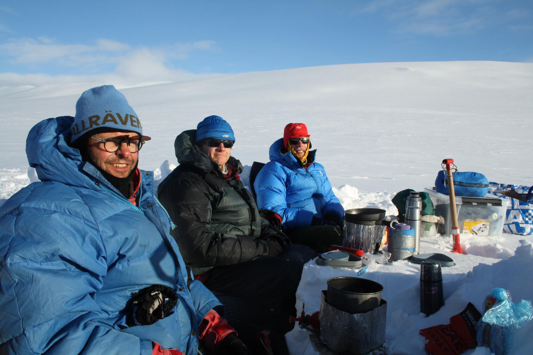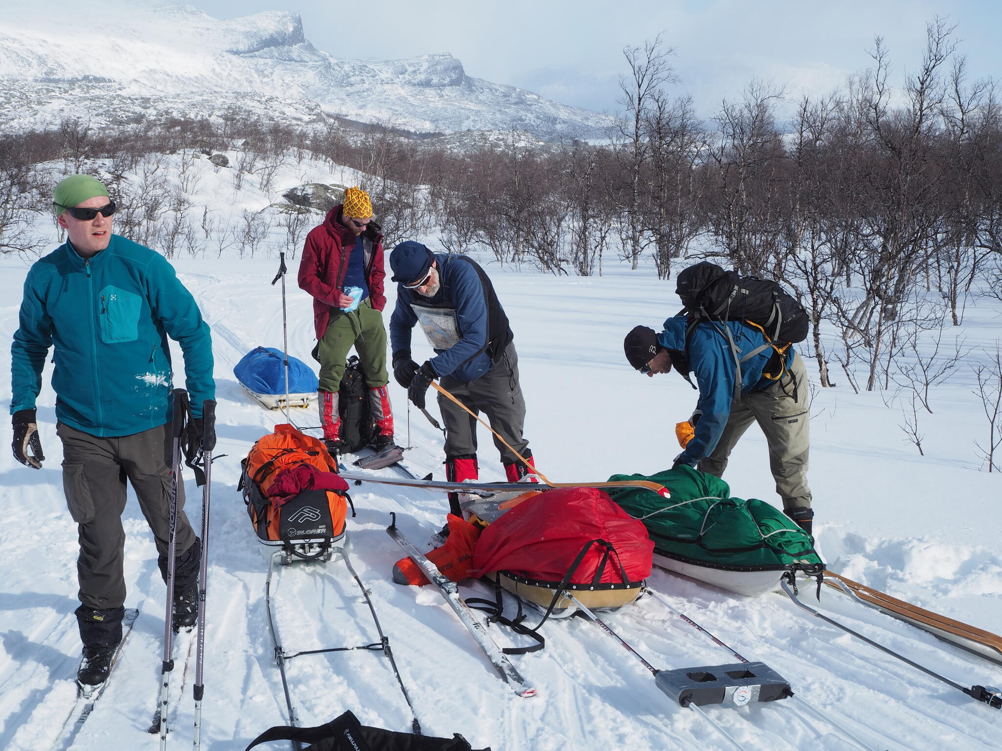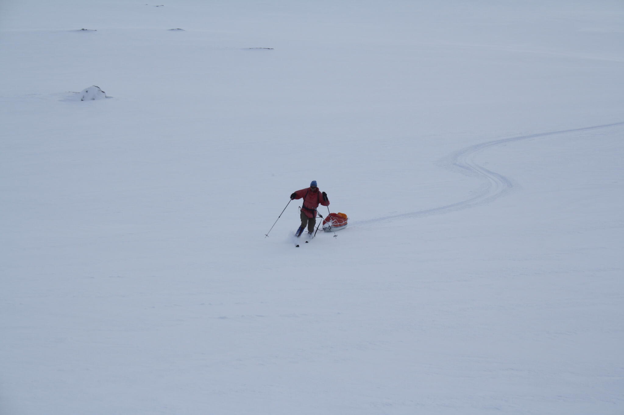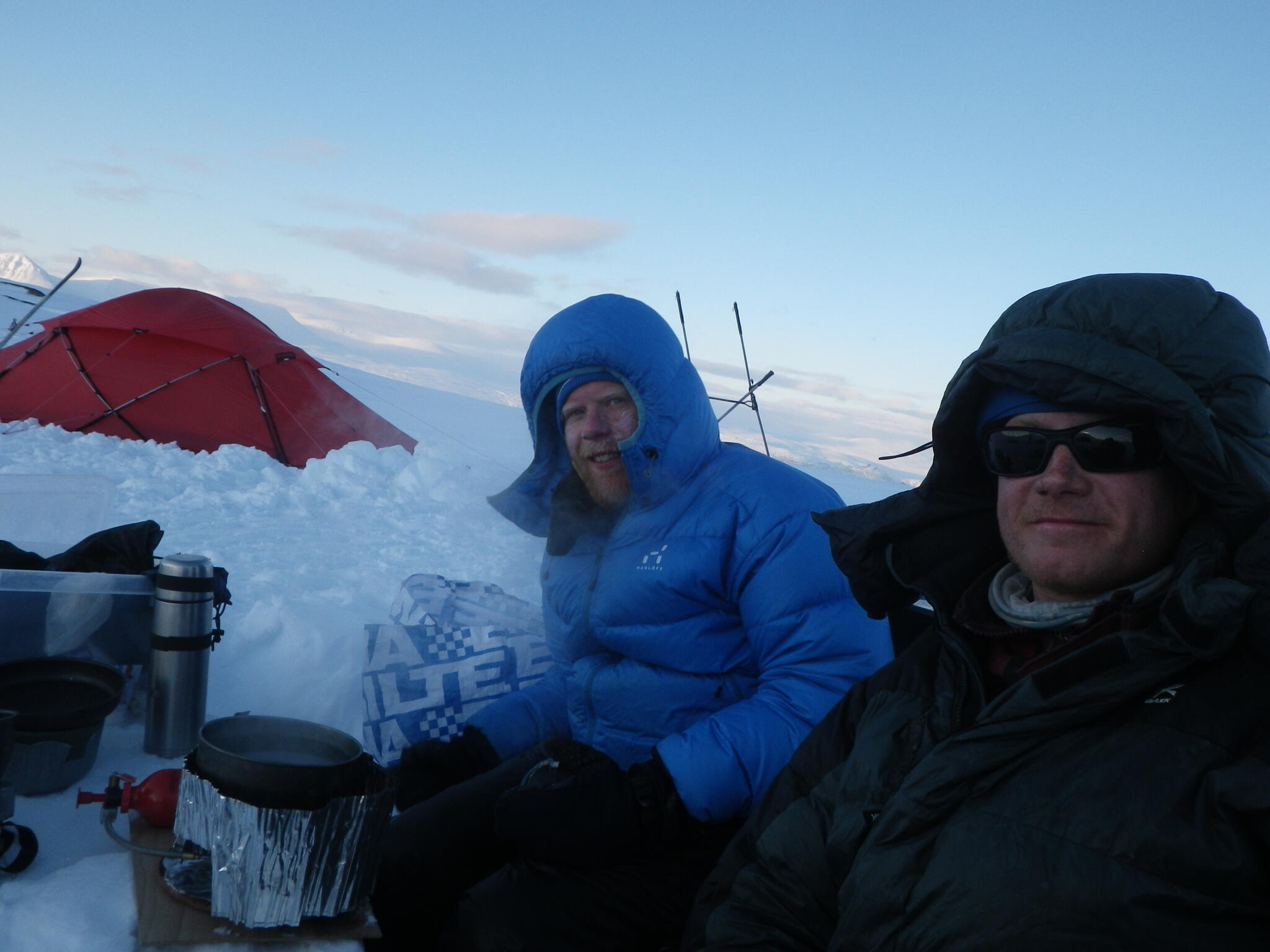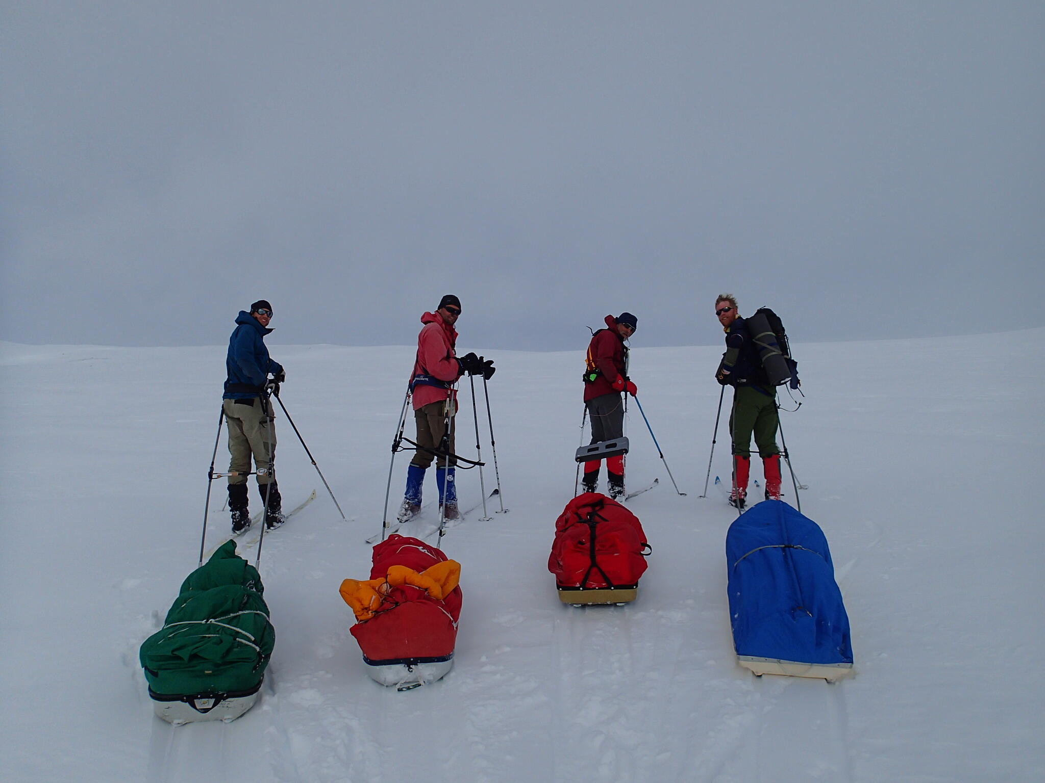 Mot slutet av dagen mötte vi två svenskar med full-lastade pulkor. De hade bl a två snökiter var och topptursskidor. Det såg tungt ut.