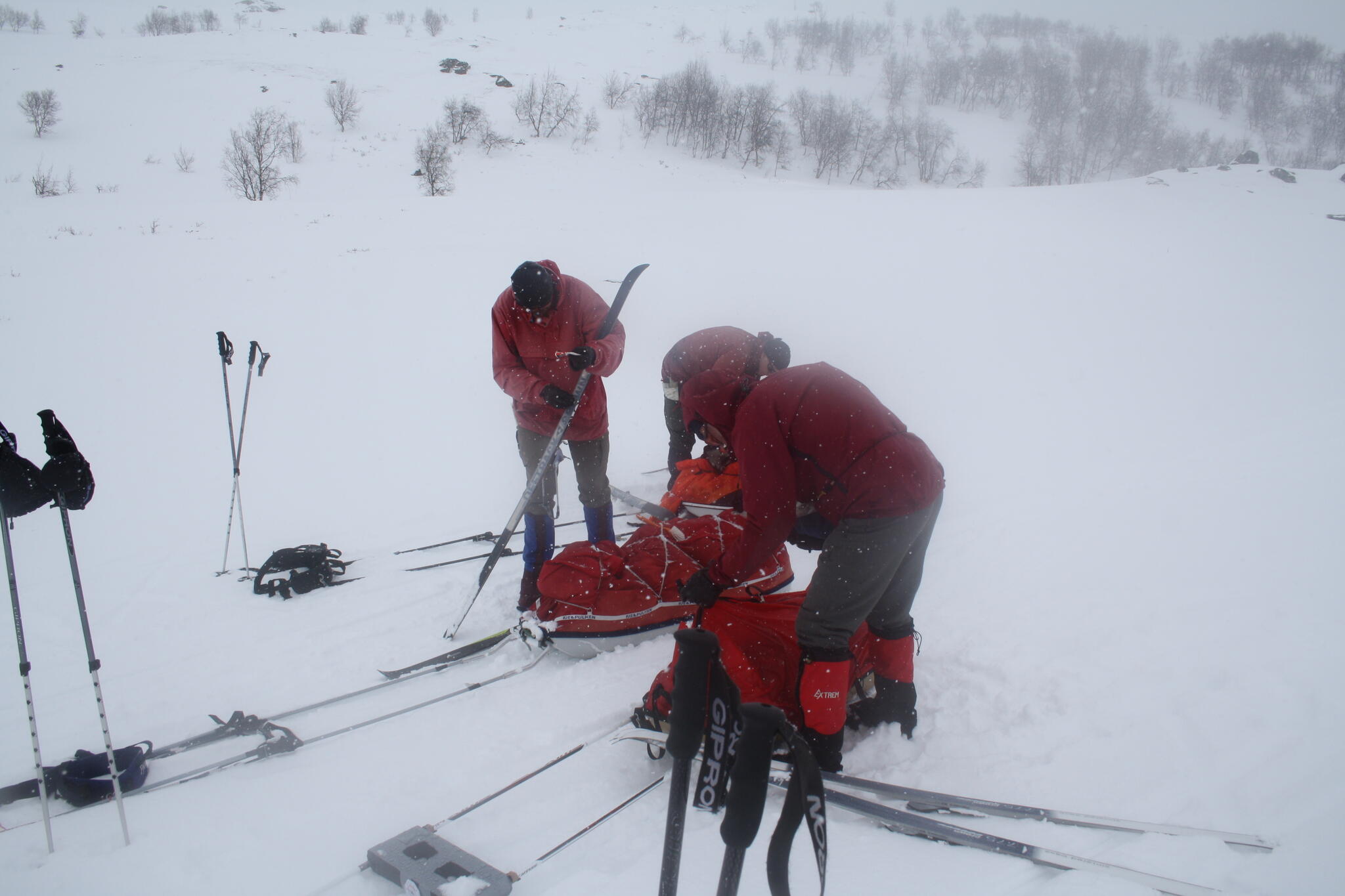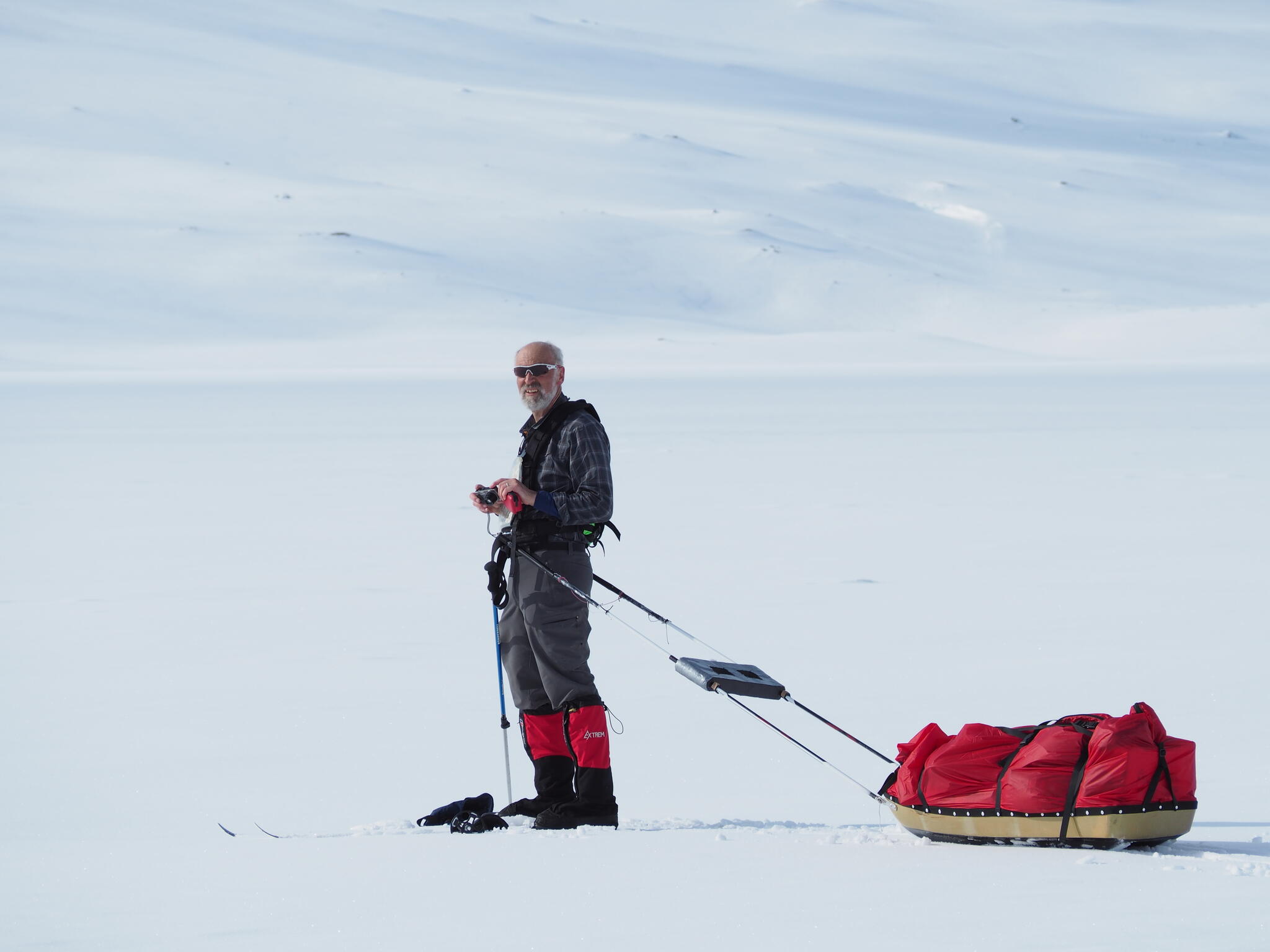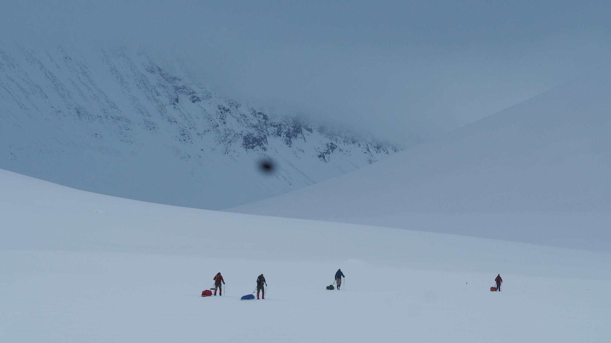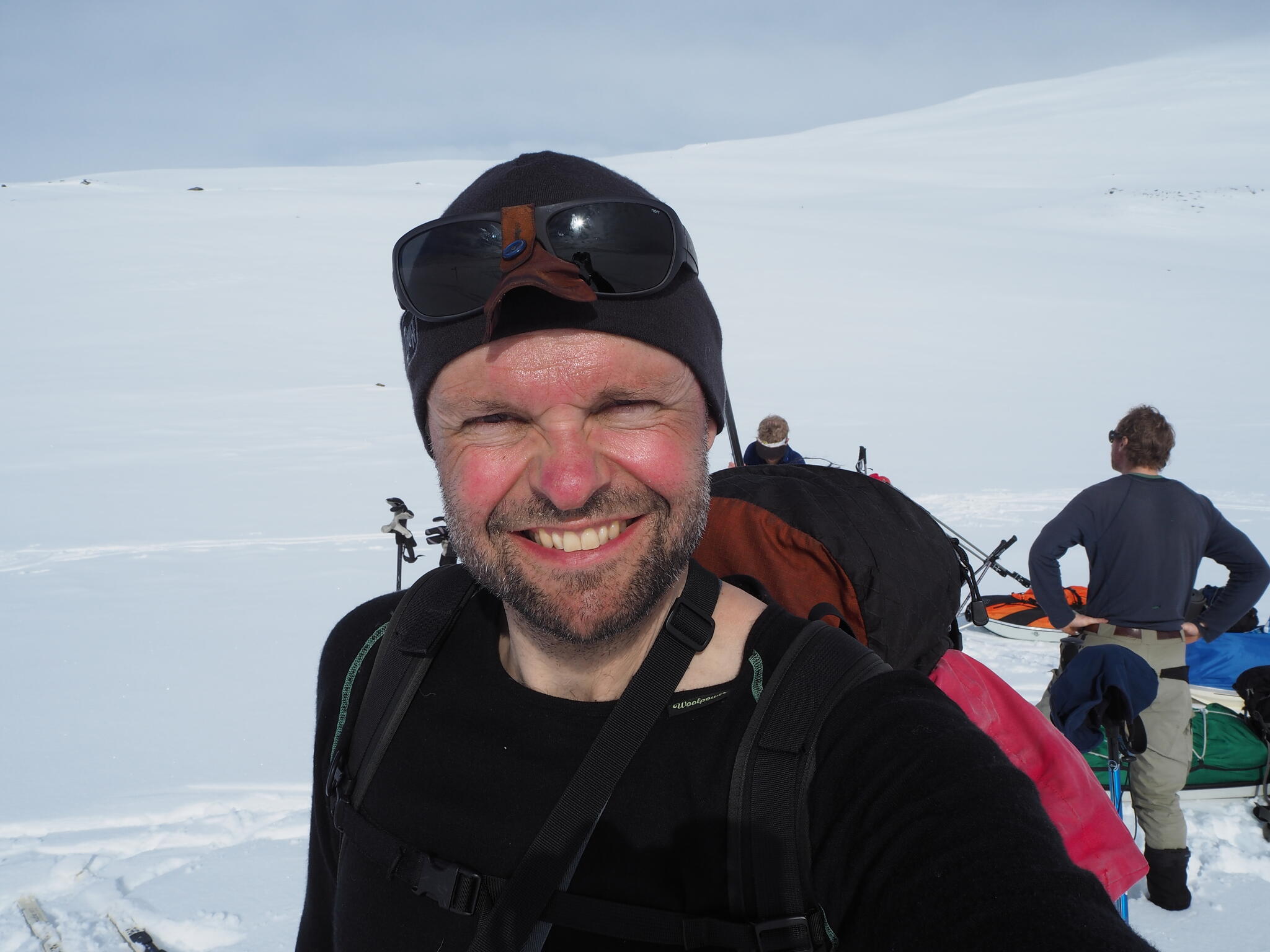 Mot slutet av dagen mötte vi två svenskar med full-lastade pulkor. De hade bl a två snökiter var och topptursskidor. Det såg tungt ut.