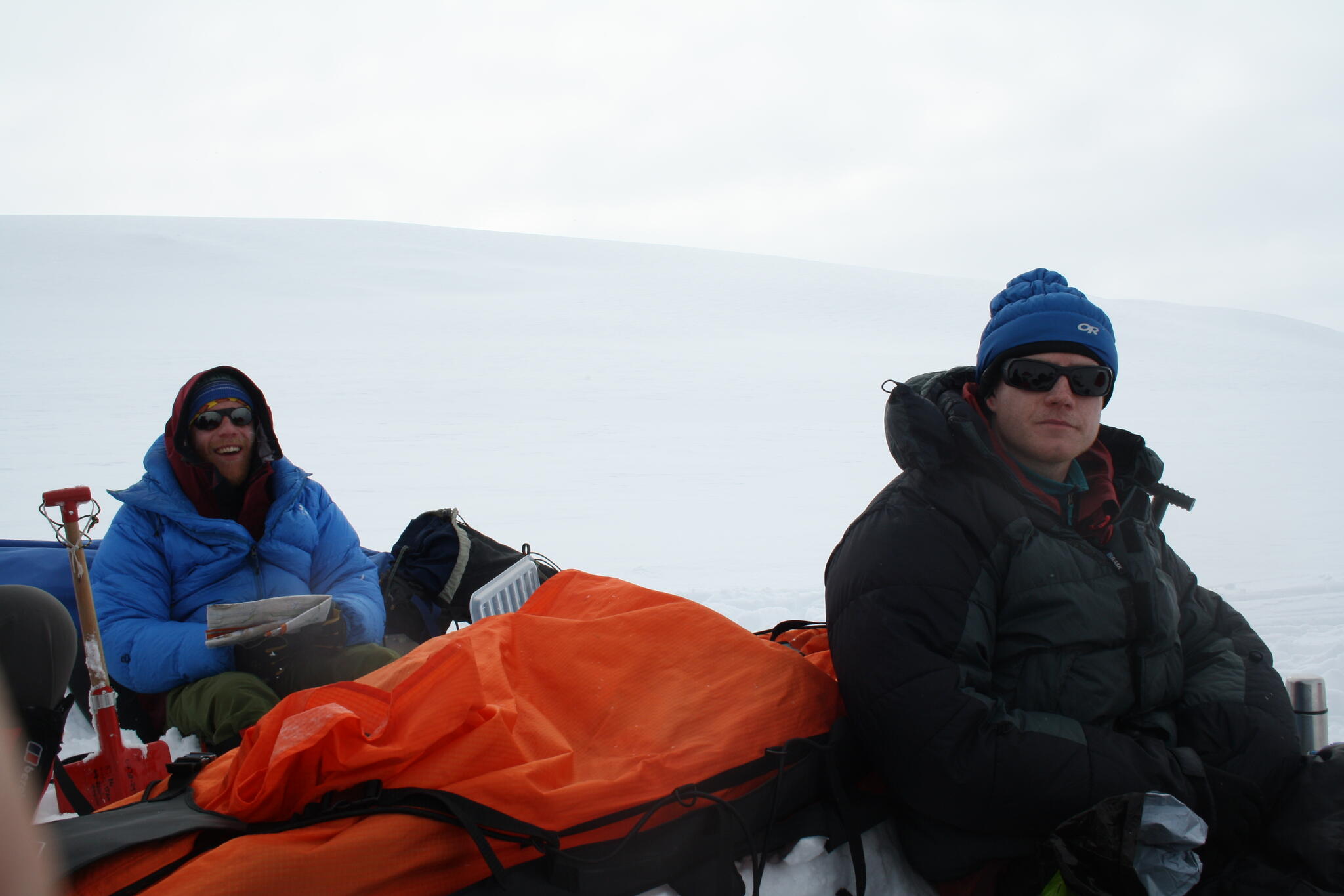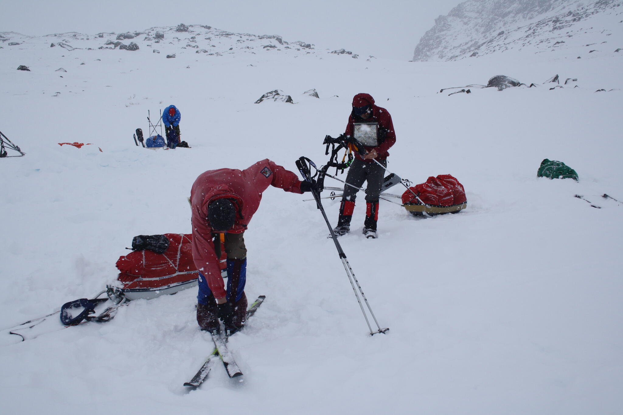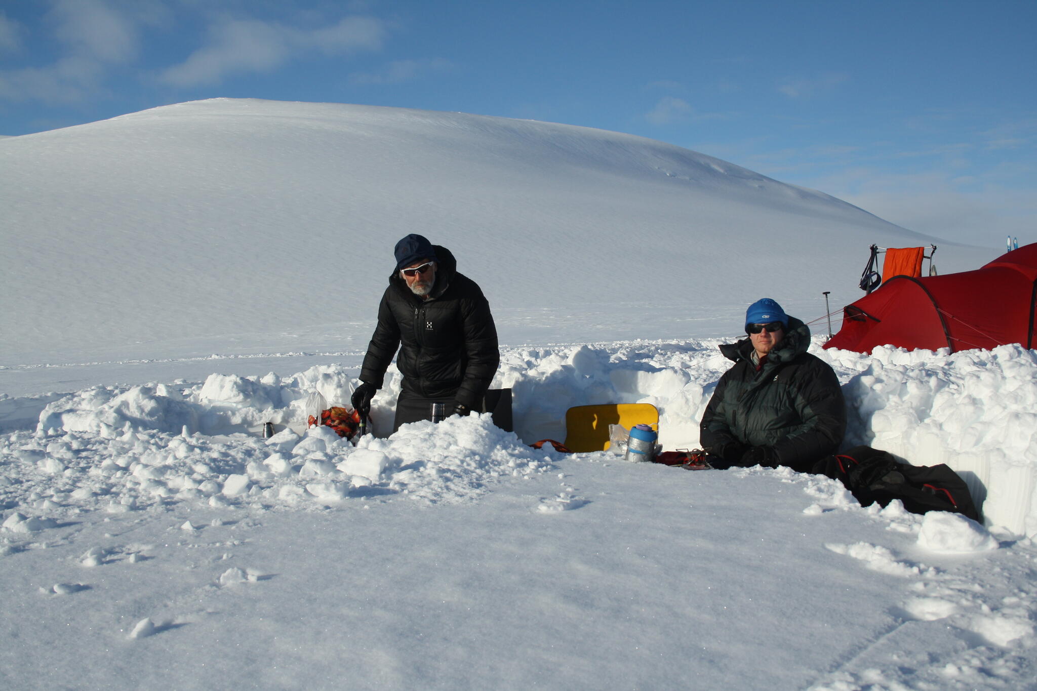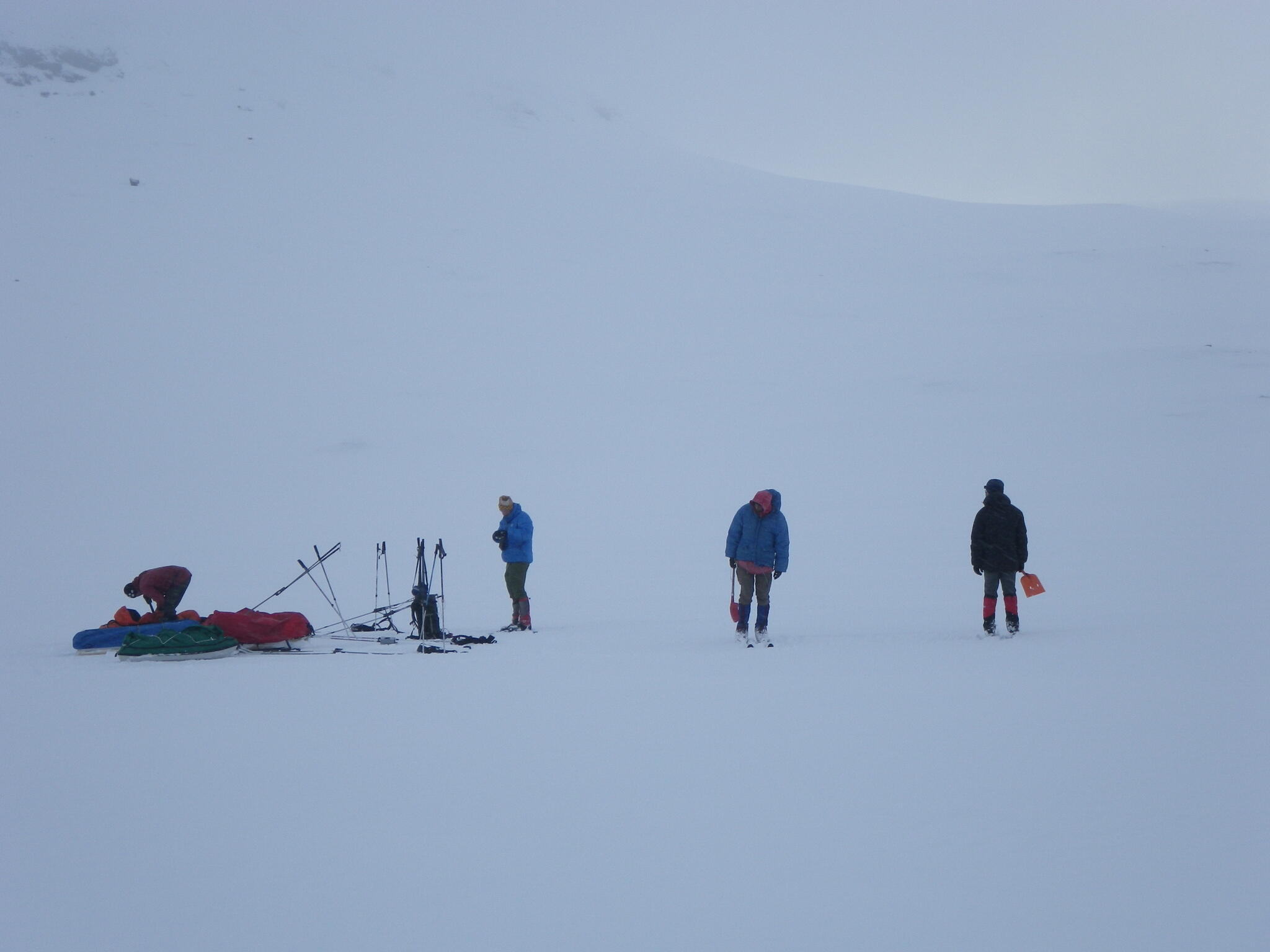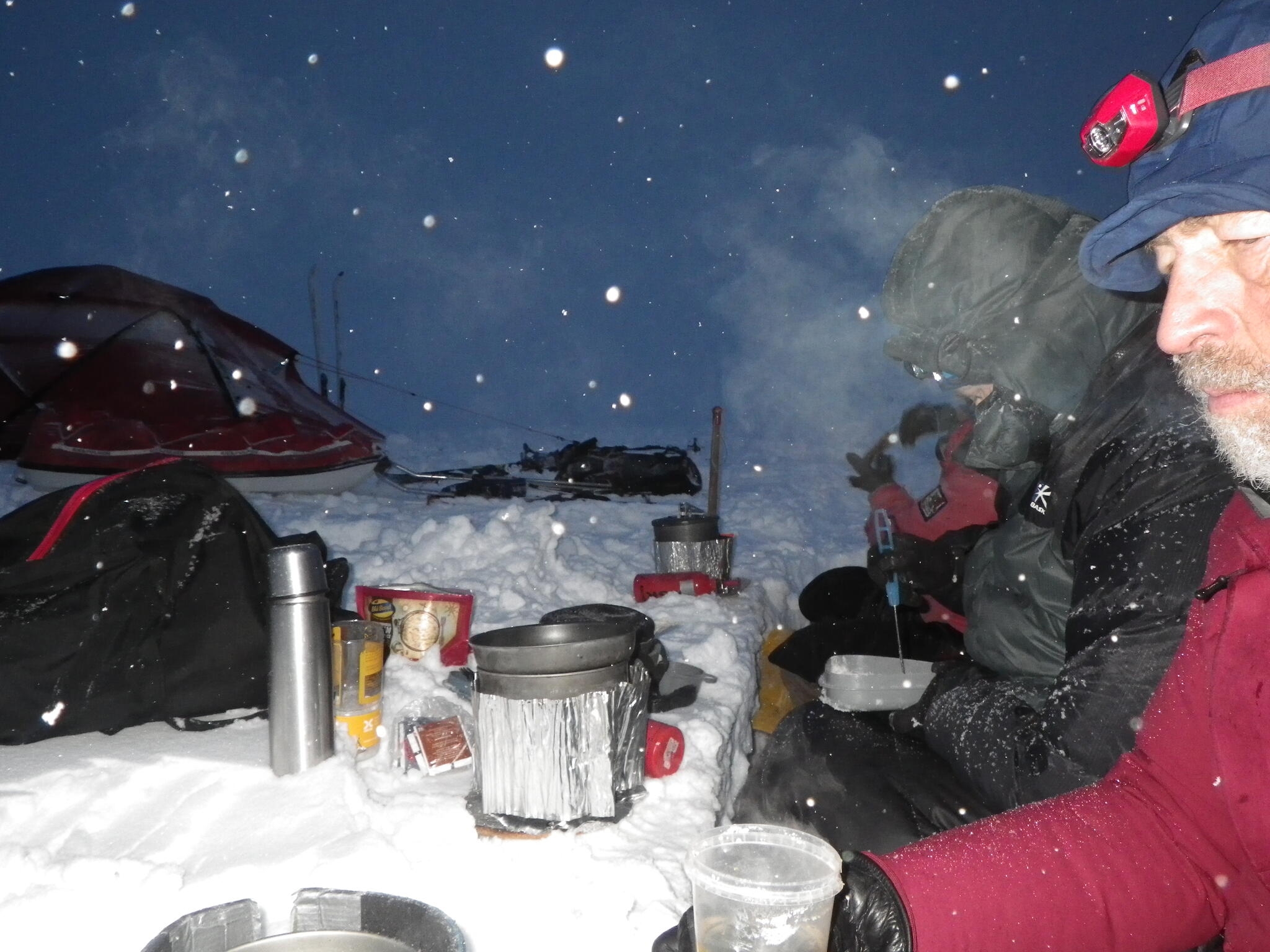Mot slutet av dagen mötte vi två svenskar med full-lastade pulkor. De hade bl a två snökiter var och topptursskidor. Det såg tungt ut.