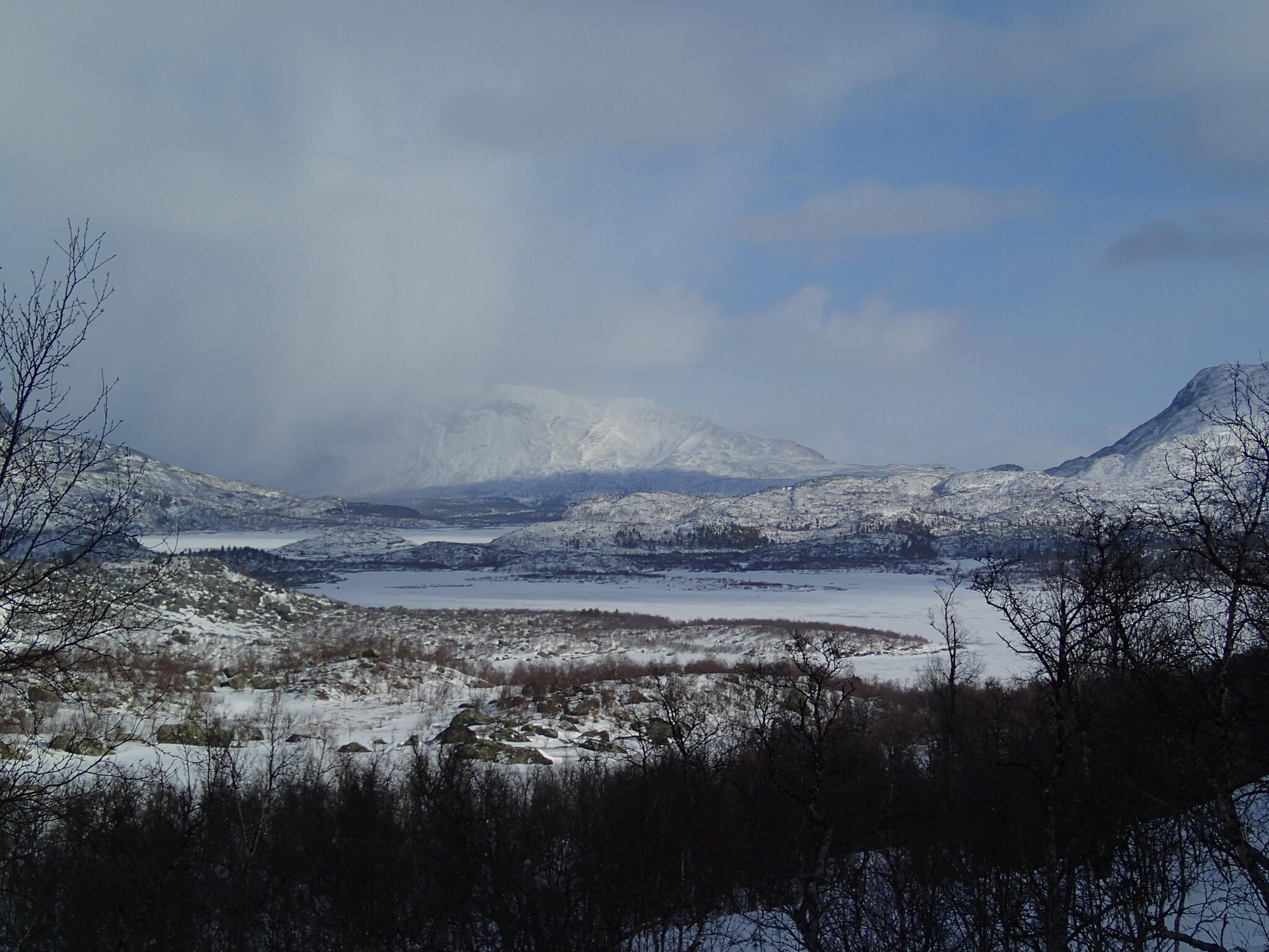 Vi vaknade upp ovanligt sent och kom iväg först 11:30. Det snöade och blåste en del den dagen, men mot kvällen slutade det blåsa.