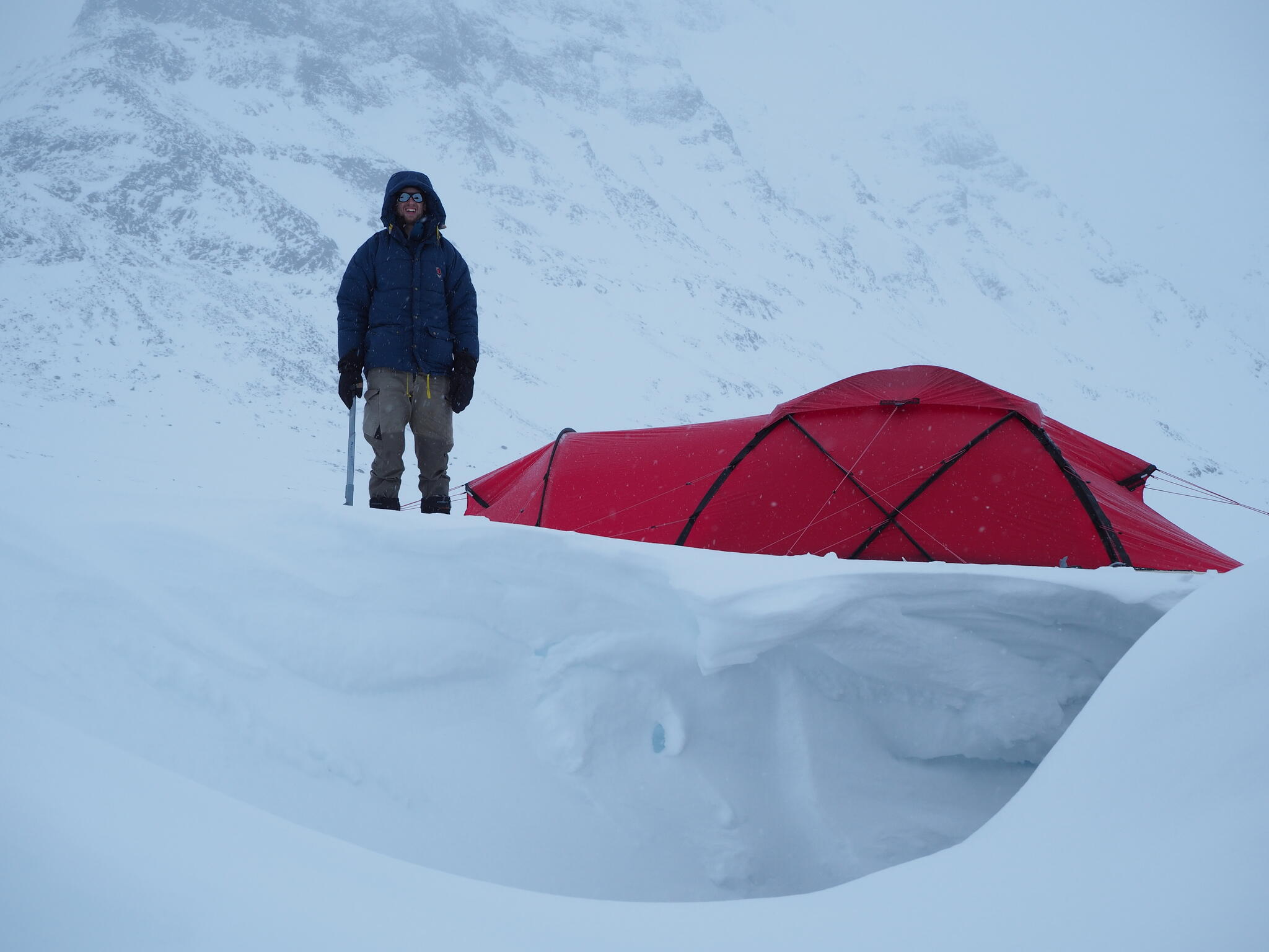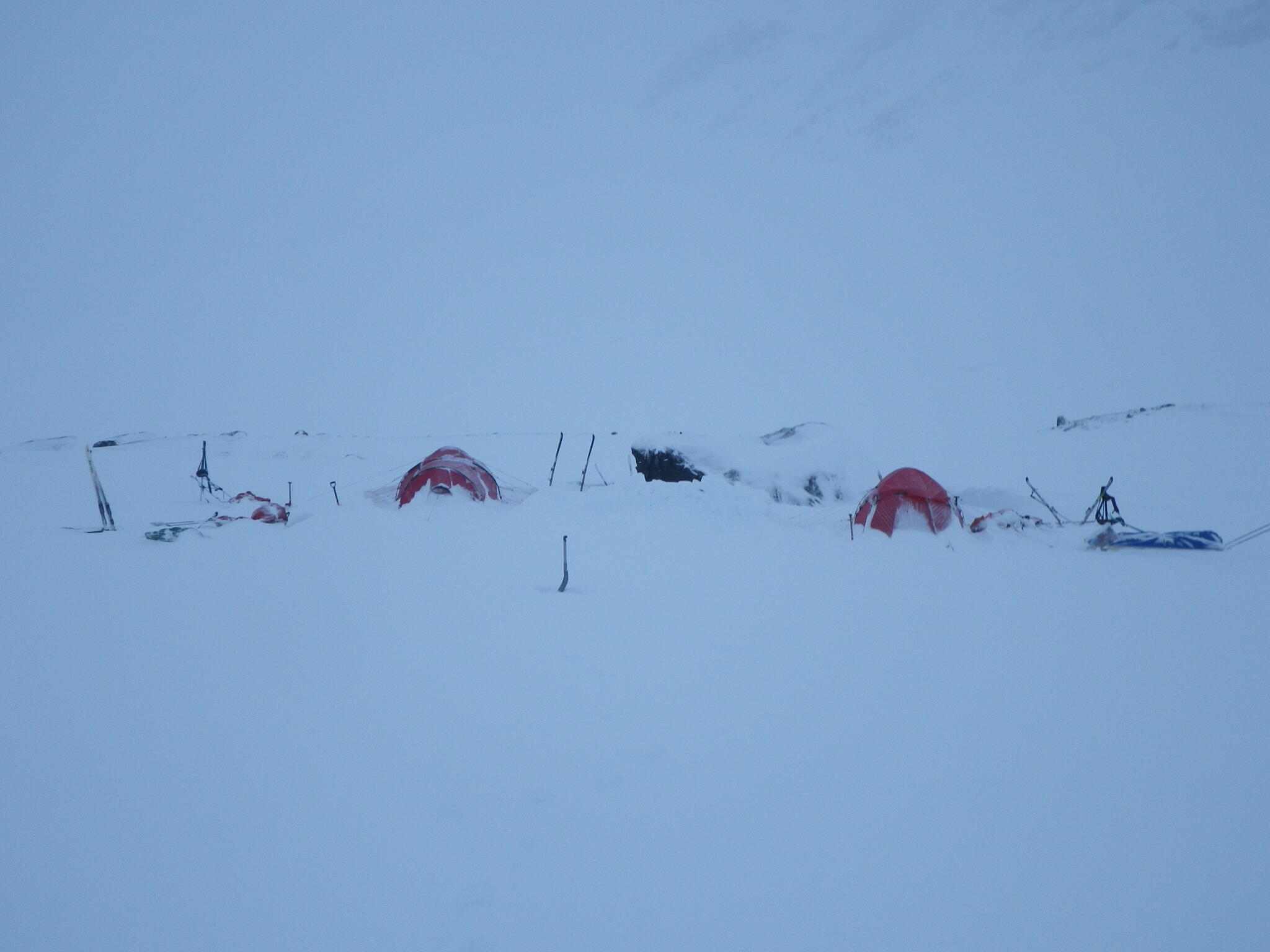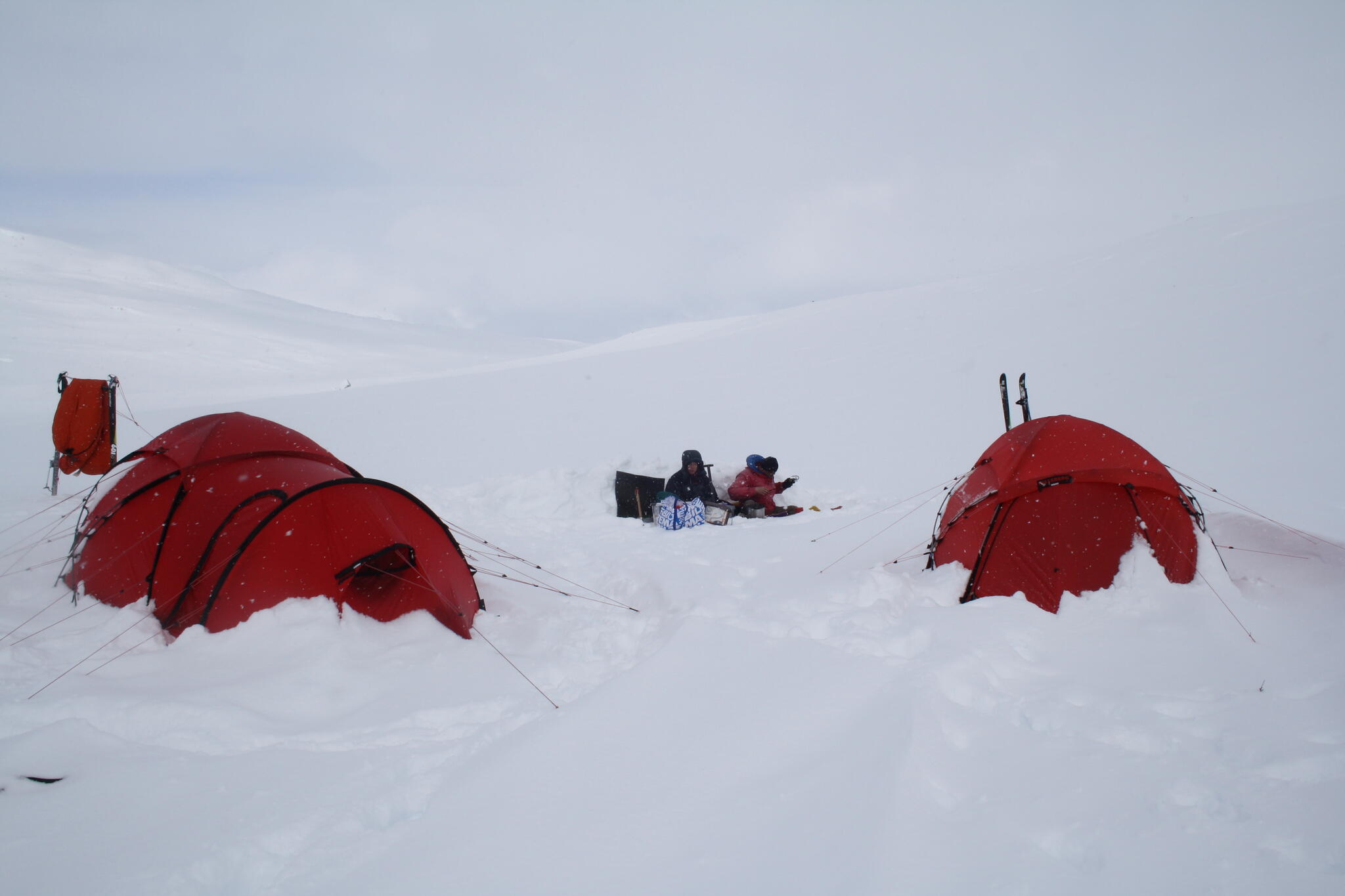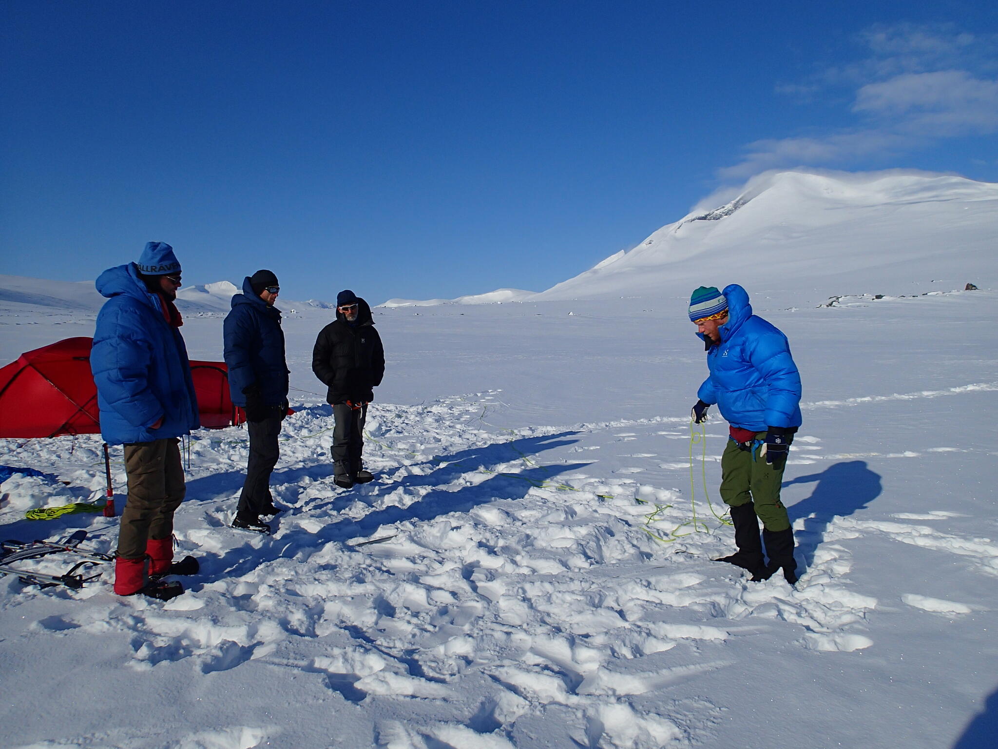 När det började bli dags för att sätta upp tälten hade vi skidat en bit in i dalen Guopervagge. Vi var när där vi dagen efter vill skida upp mot platån i Ruotes-massivet.