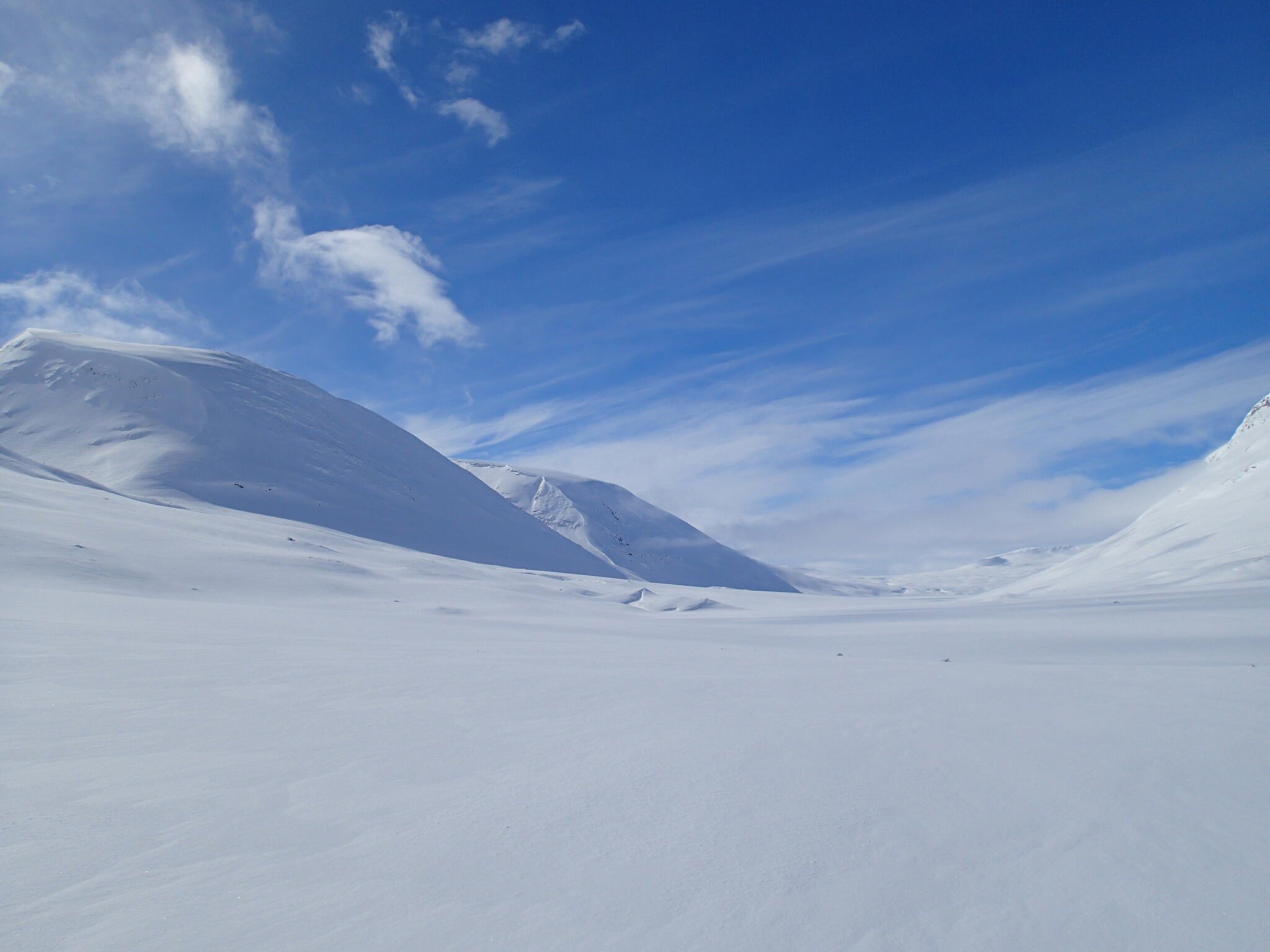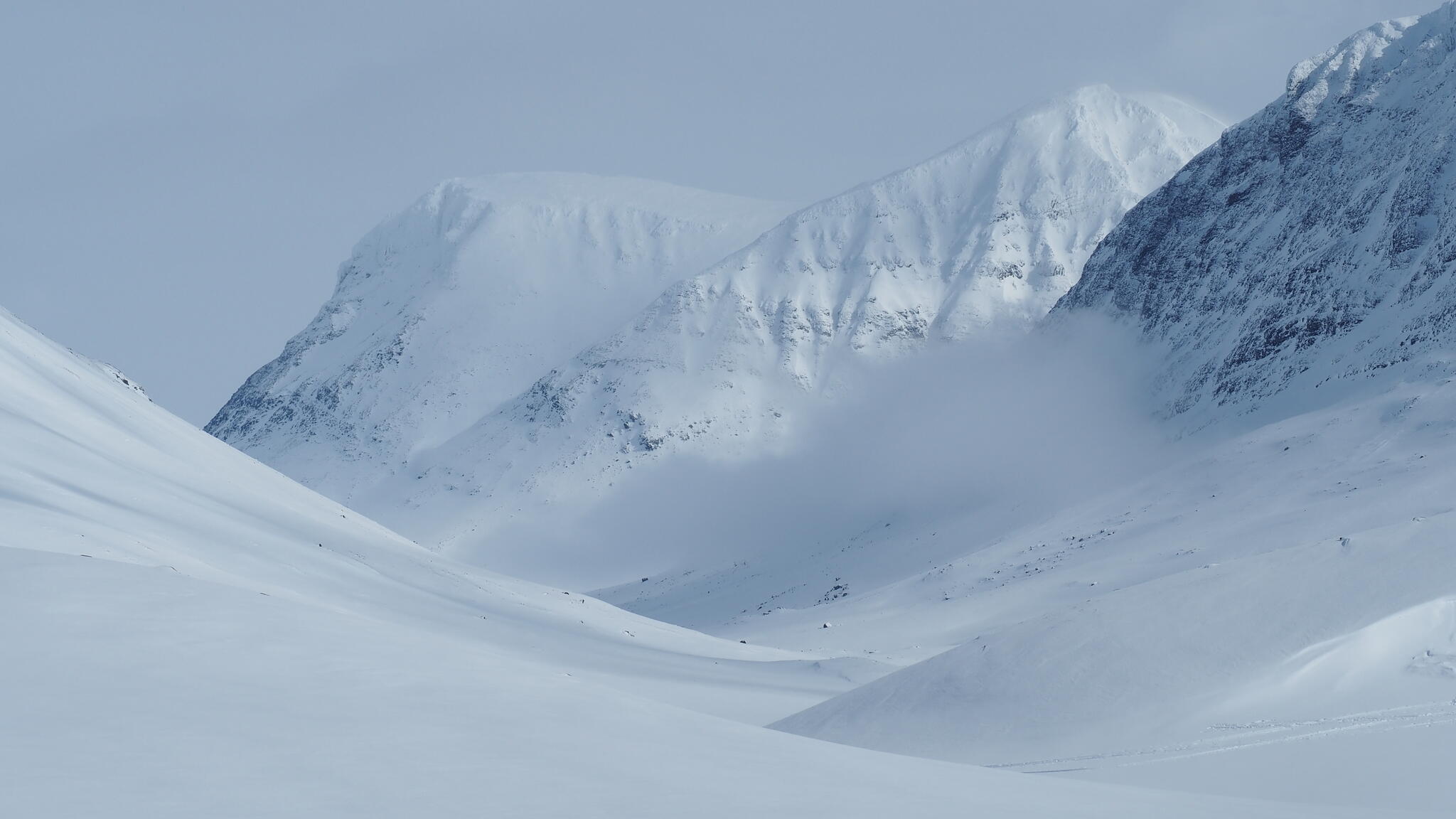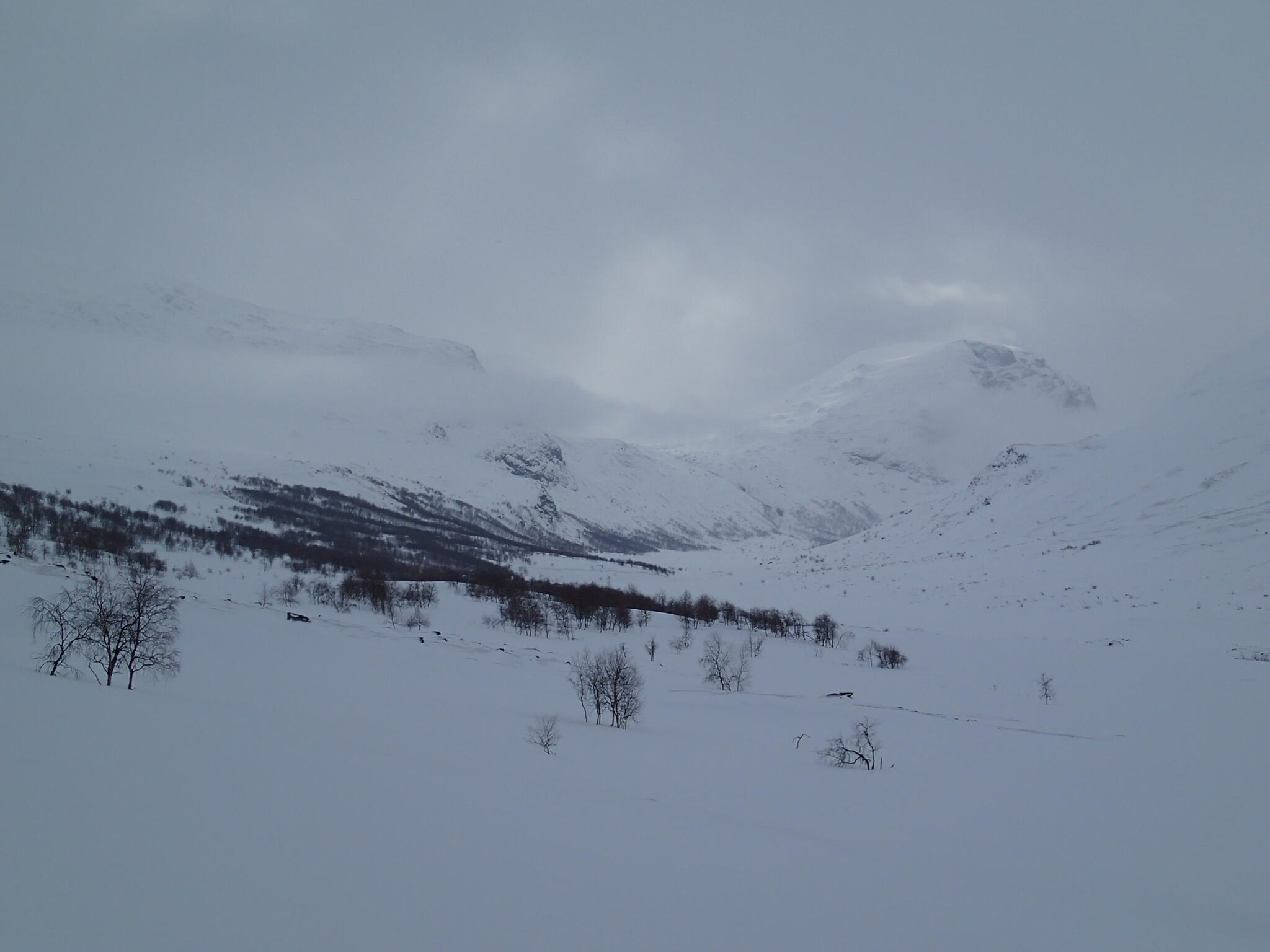 Denna dag skulle vi skida längs gränsen till Padjelanta och sedan in i dalen Guophervagge.