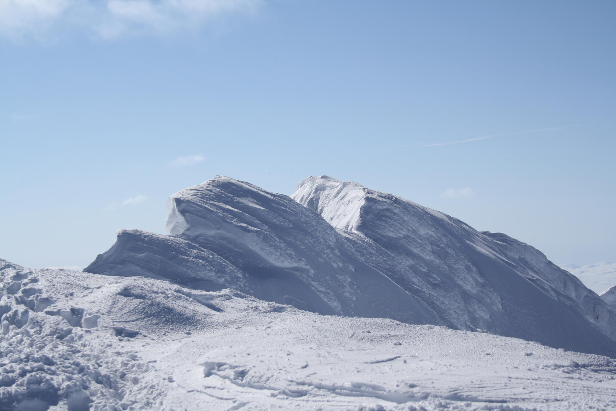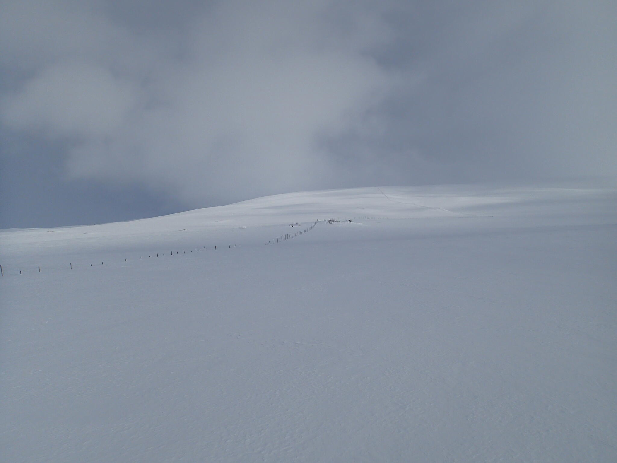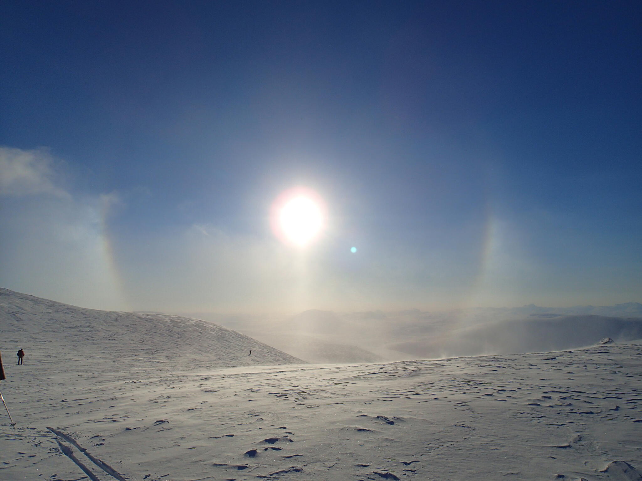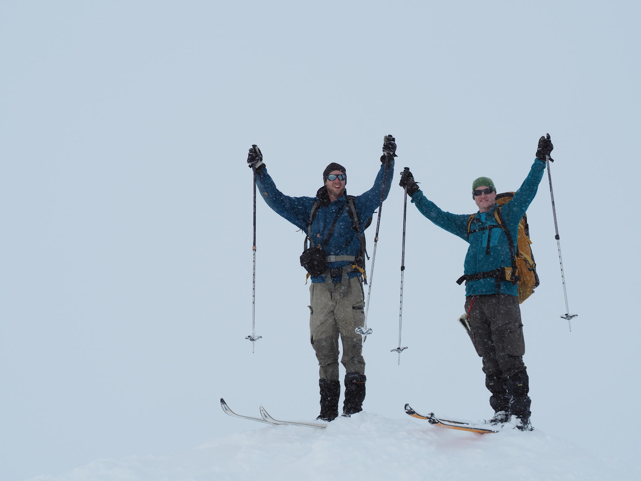 Skidåkningen började med att vi skidade nerför en fin nersbacke norrut i pudersnö. Ett par år tidigare lät vi bli att göra samma nerfart, pga dålig sikt.