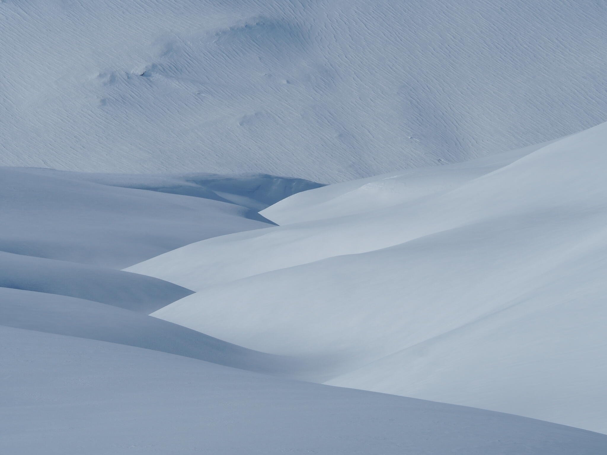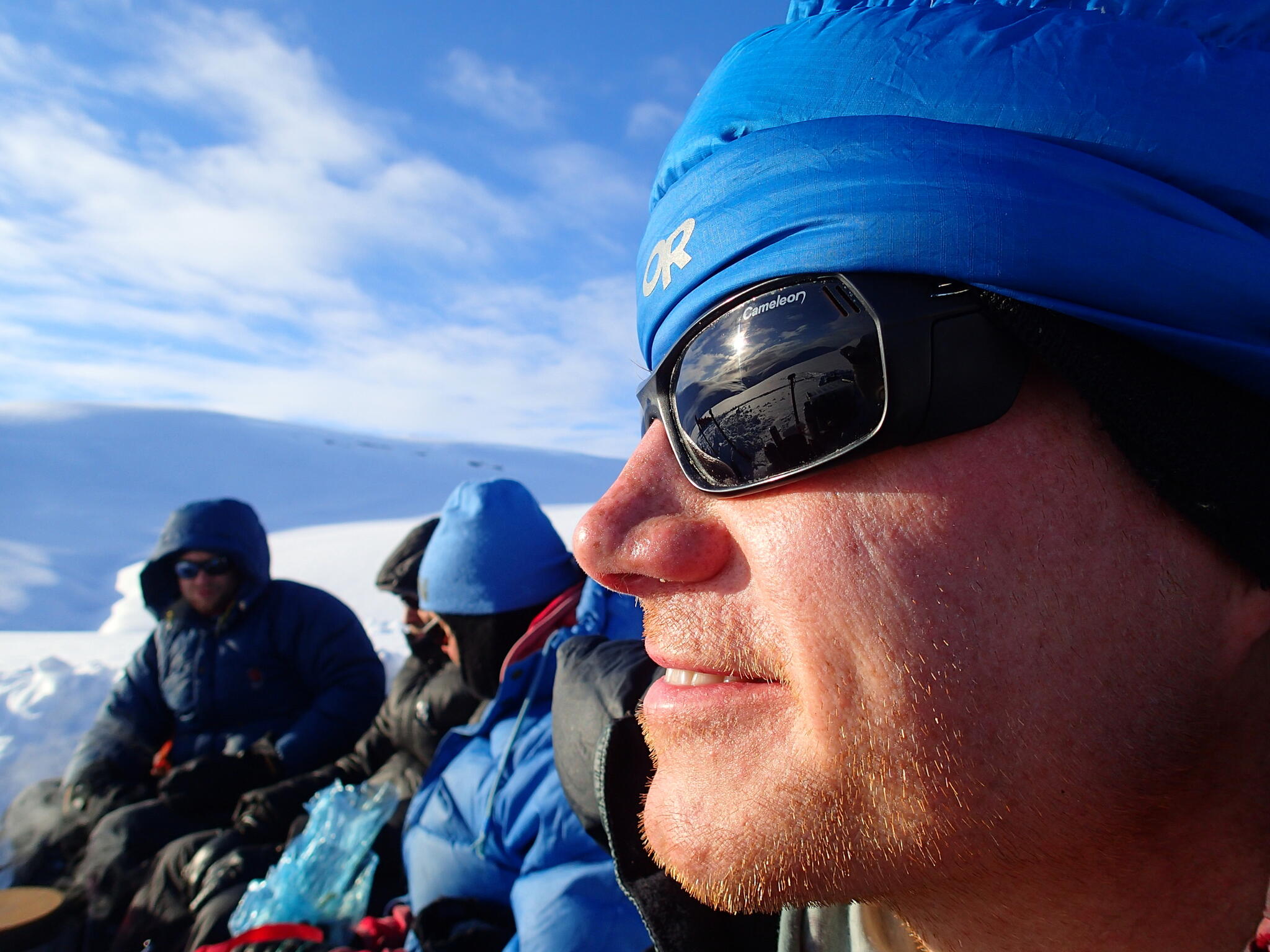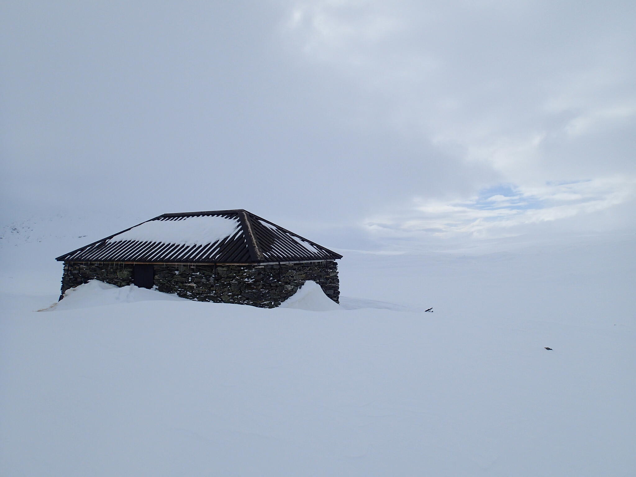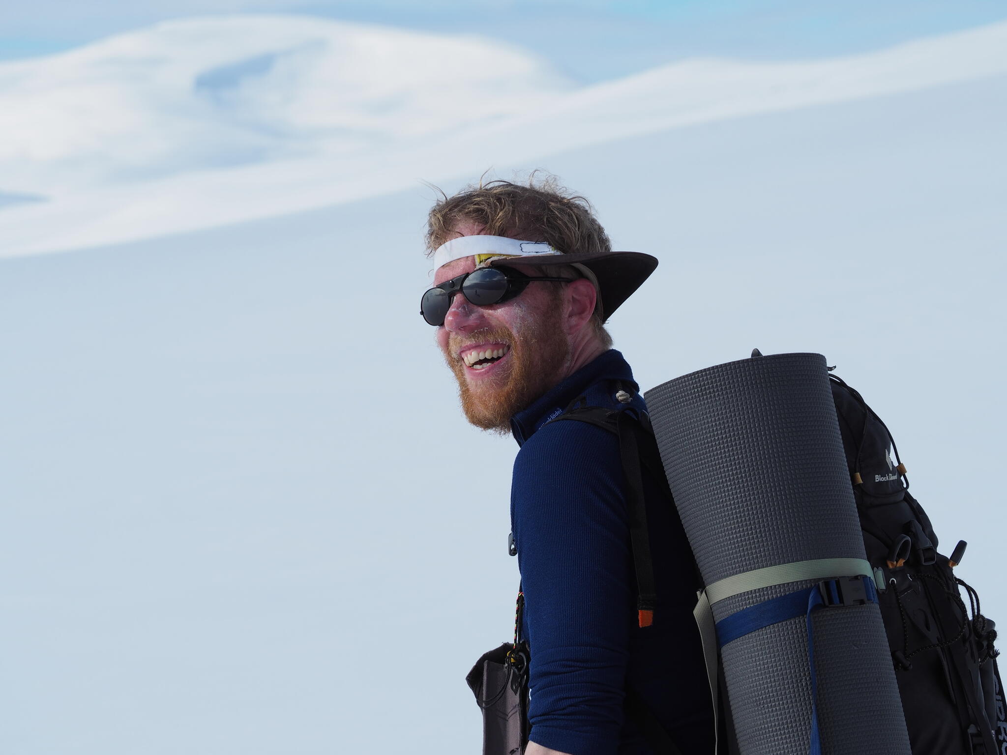 När vi skidade upp mot platån var det varmt och vindstilla, och lite molnigt.