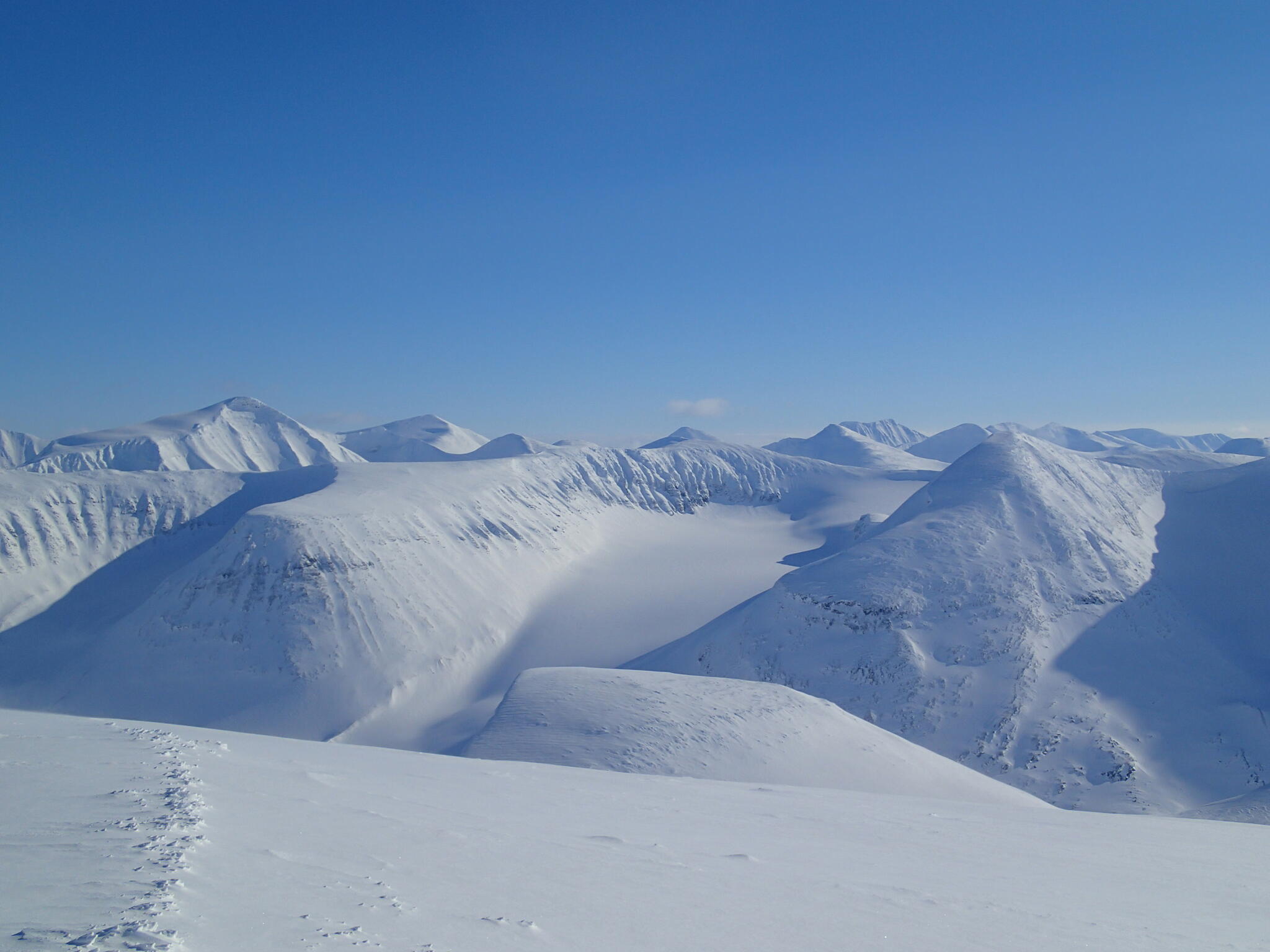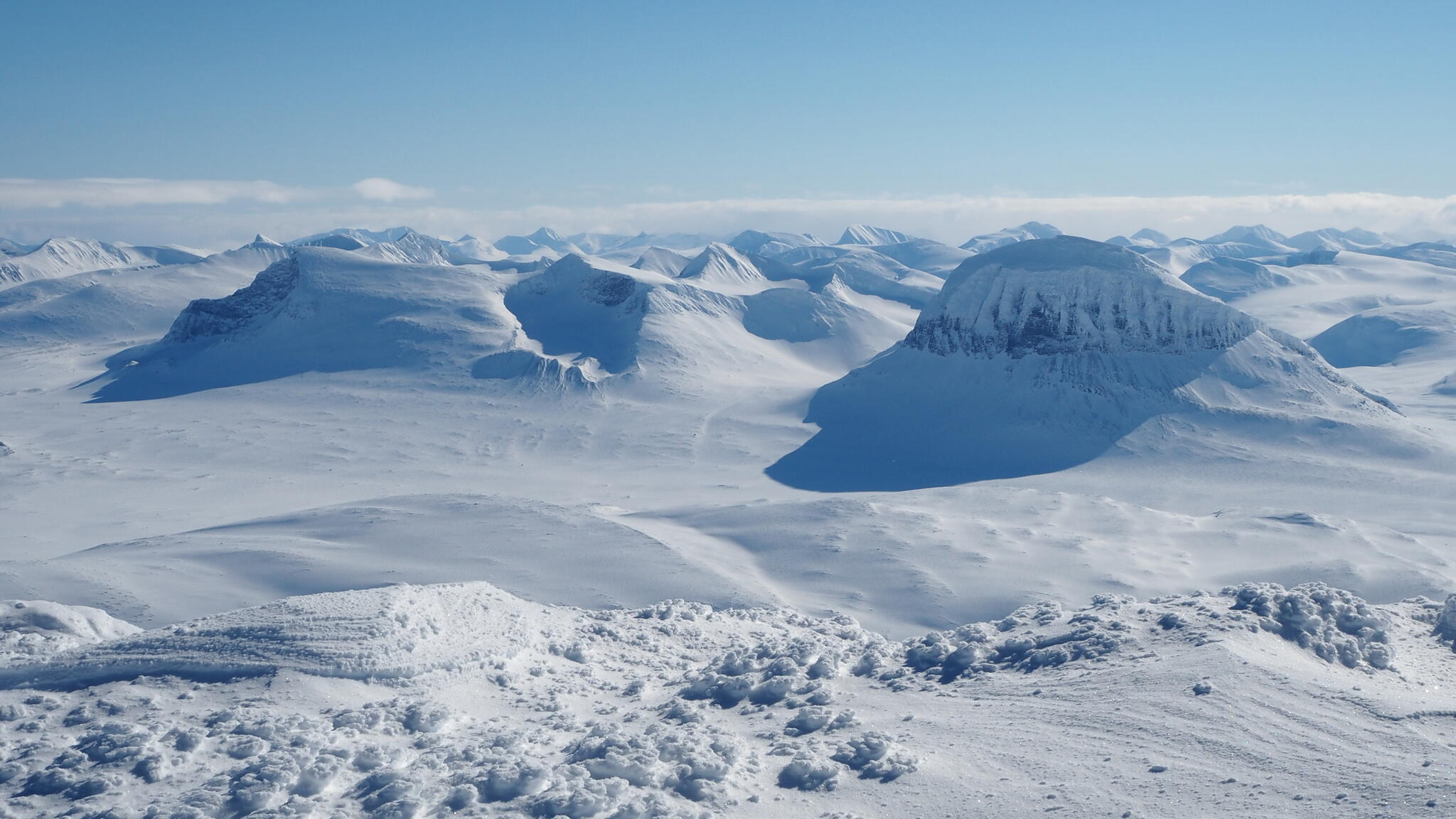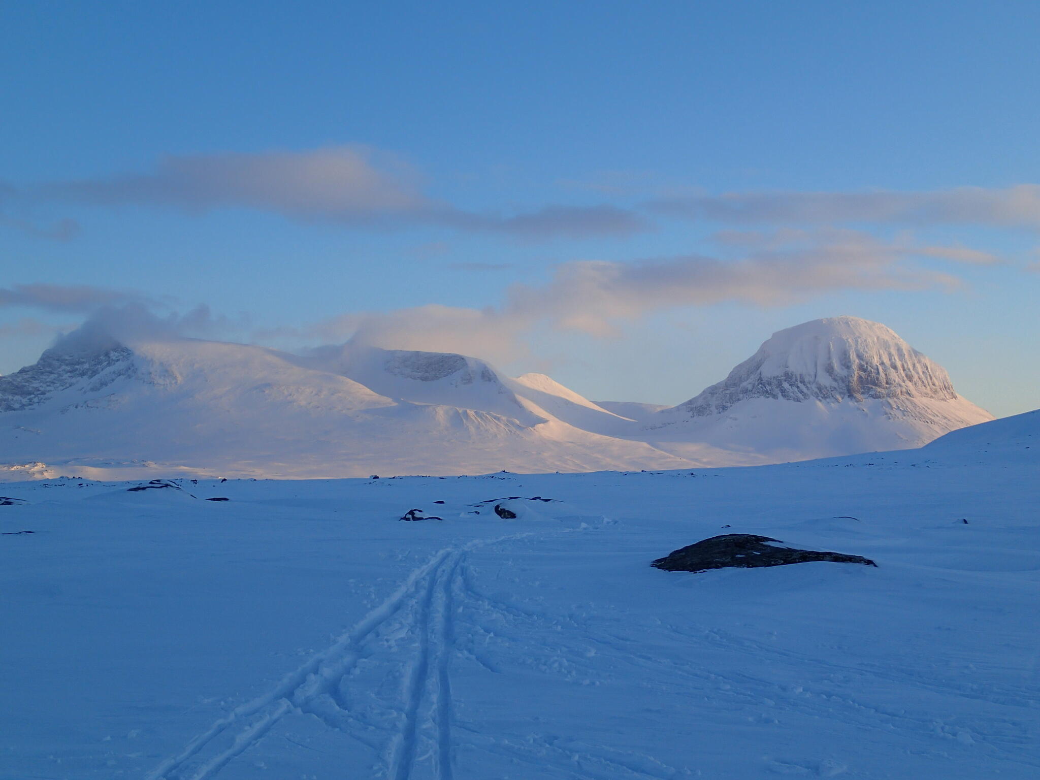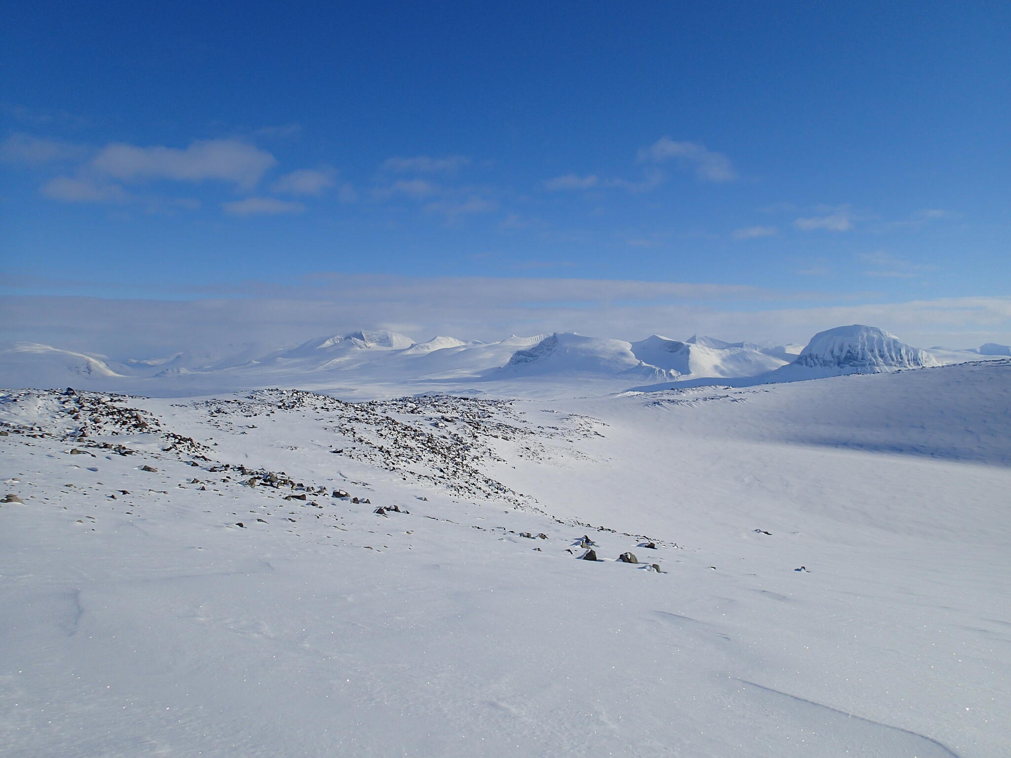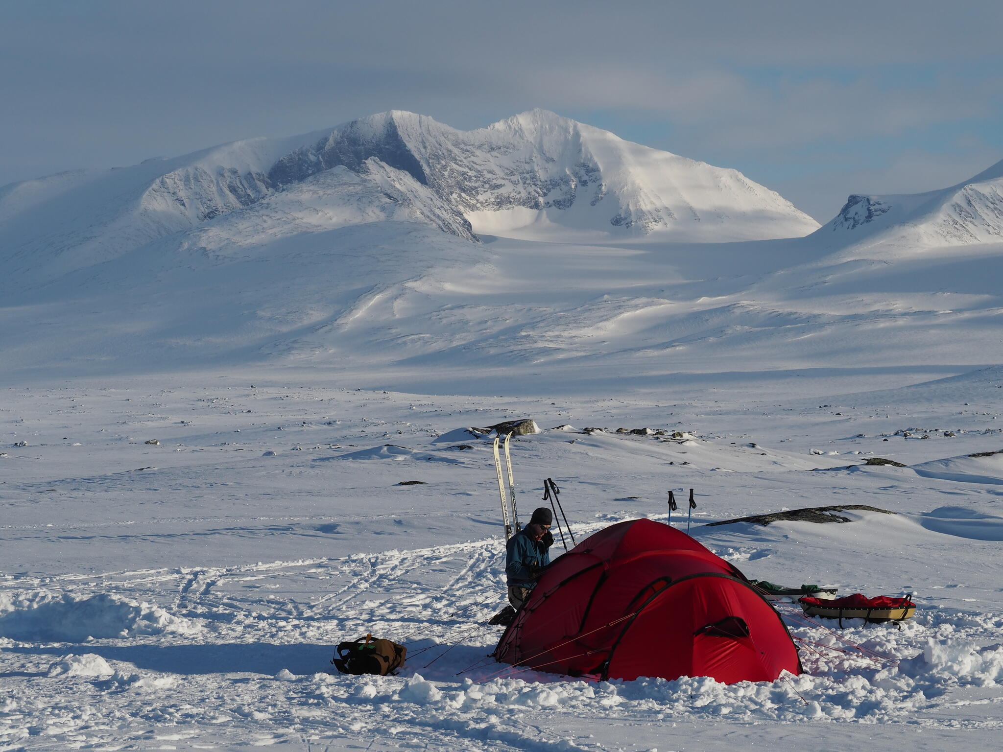 En lugn dag med enklare topptur, i väntan på bättre väder på Ahkka. Vi skidade upp på Vardotjåhkkå.