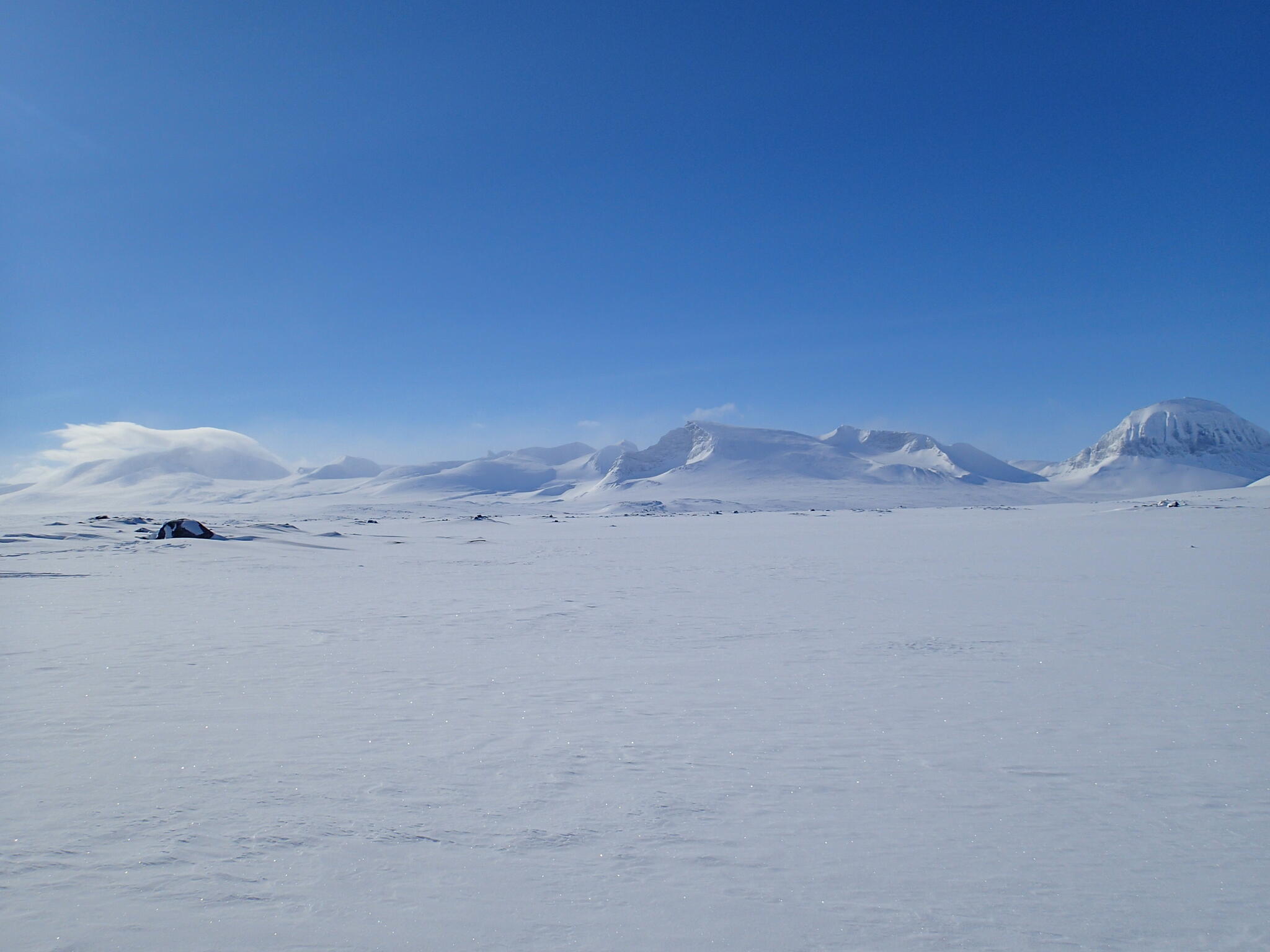 När vi kommit nära Ahkka slog vi läger. Och hoppades att någon av de kommande två dagarna skulle erbjuda fina topptursmöjligheter.