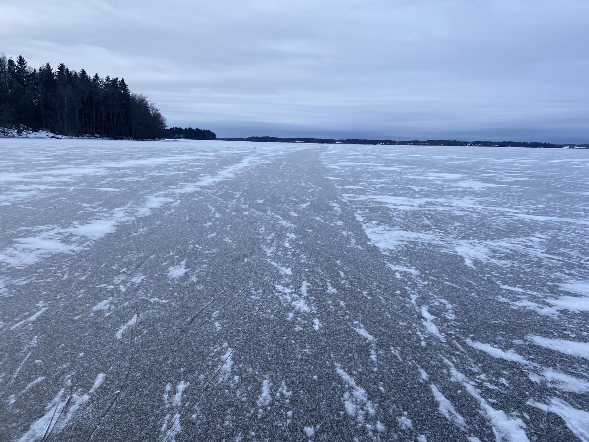 Det var verkligen fin is och knappt någon vind. Lätt knapp märkbar motvind första halvan och sedan märkbar svag medvind på tillbakavägen.