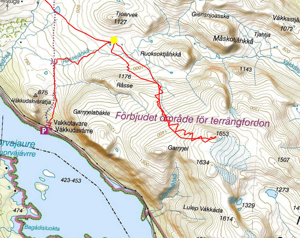 Tyvärr såg vi många exempel på när skoterförare hade åkt utanför de tillåtna områden och lederna. Det tyckte vi kändes mycket tråkigt.