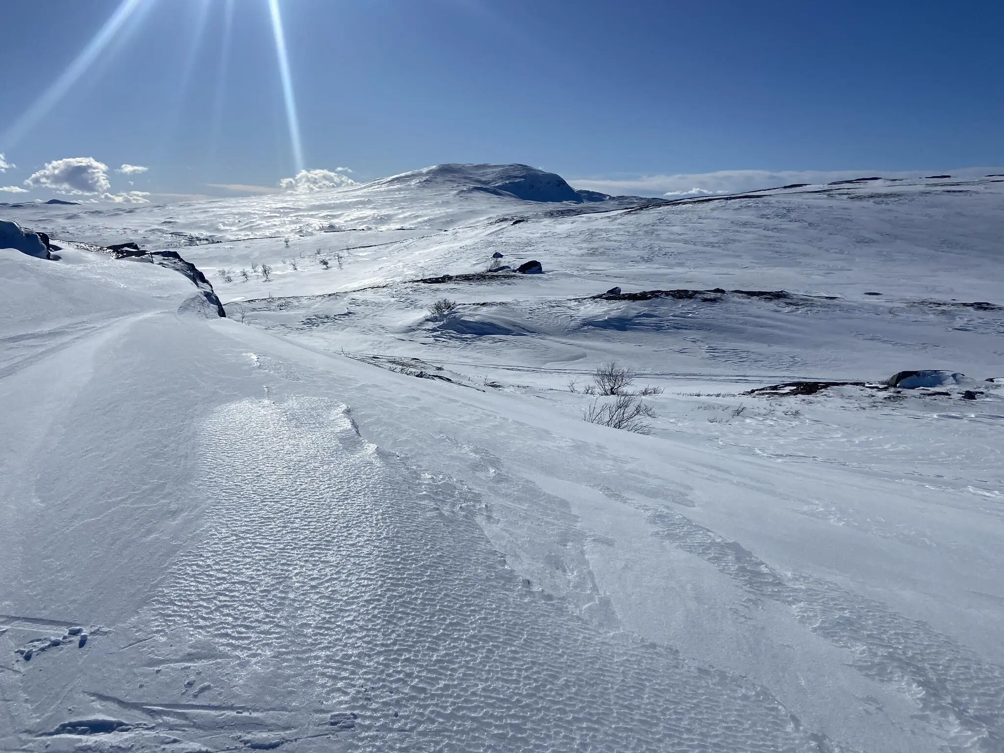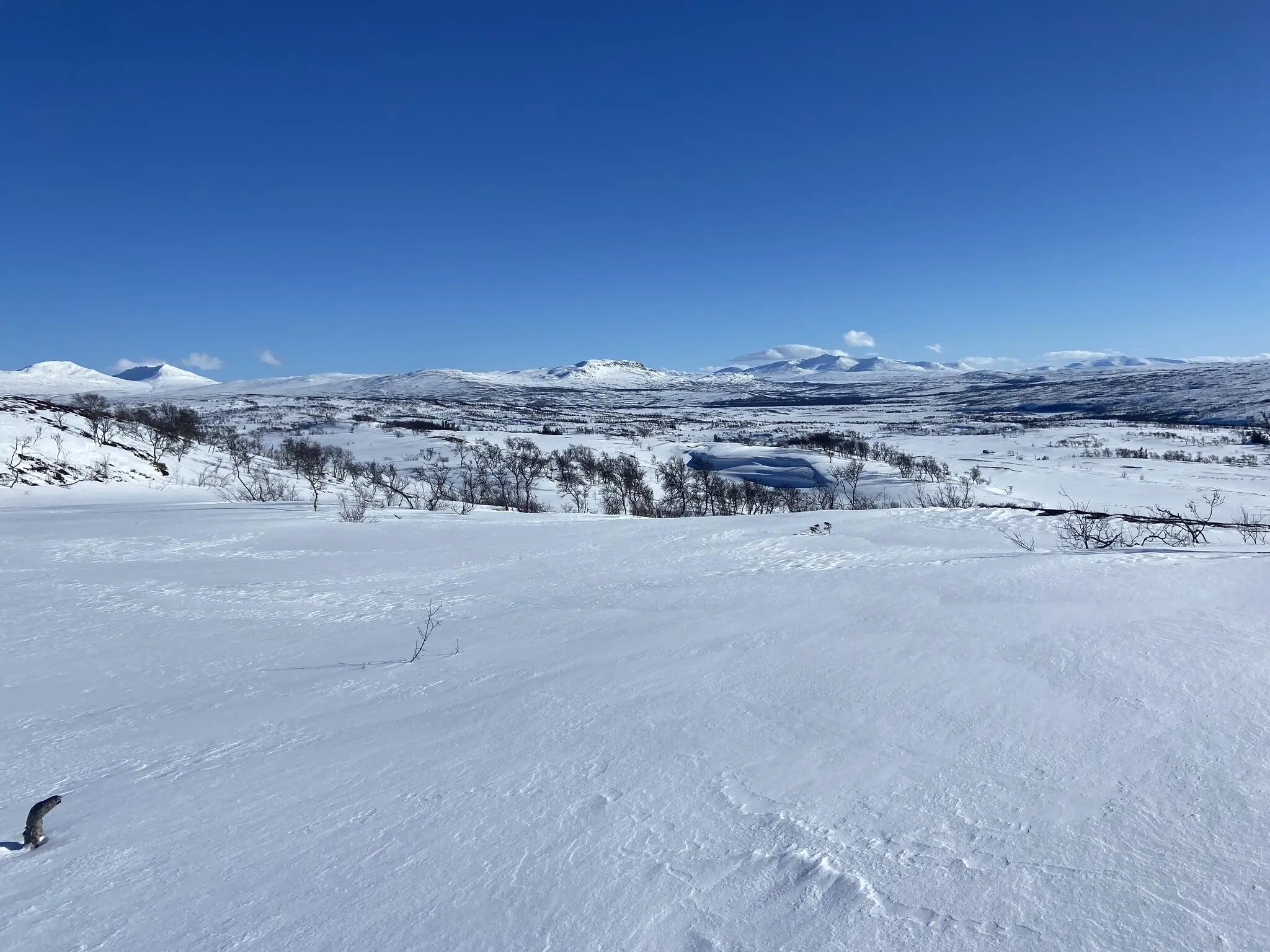 På eftermiddagen körde vi tillbaka till boendet. Det var väldigt fint väder och jag blev sugen på att skida mot Rekdalshöjden, mot Stor-Kluken. och norska gränsen. Så ditåt skidade jag.