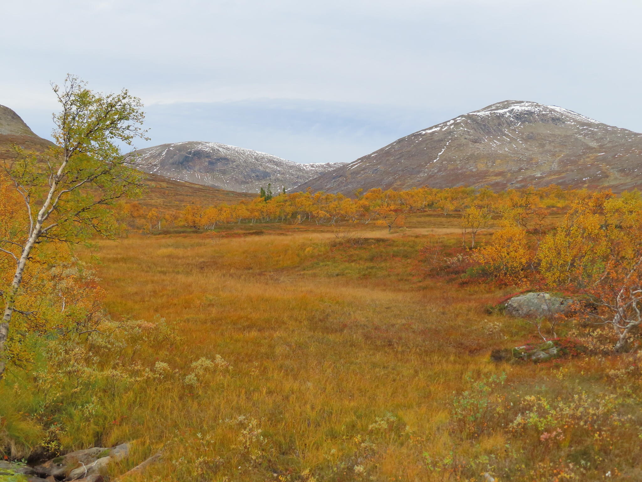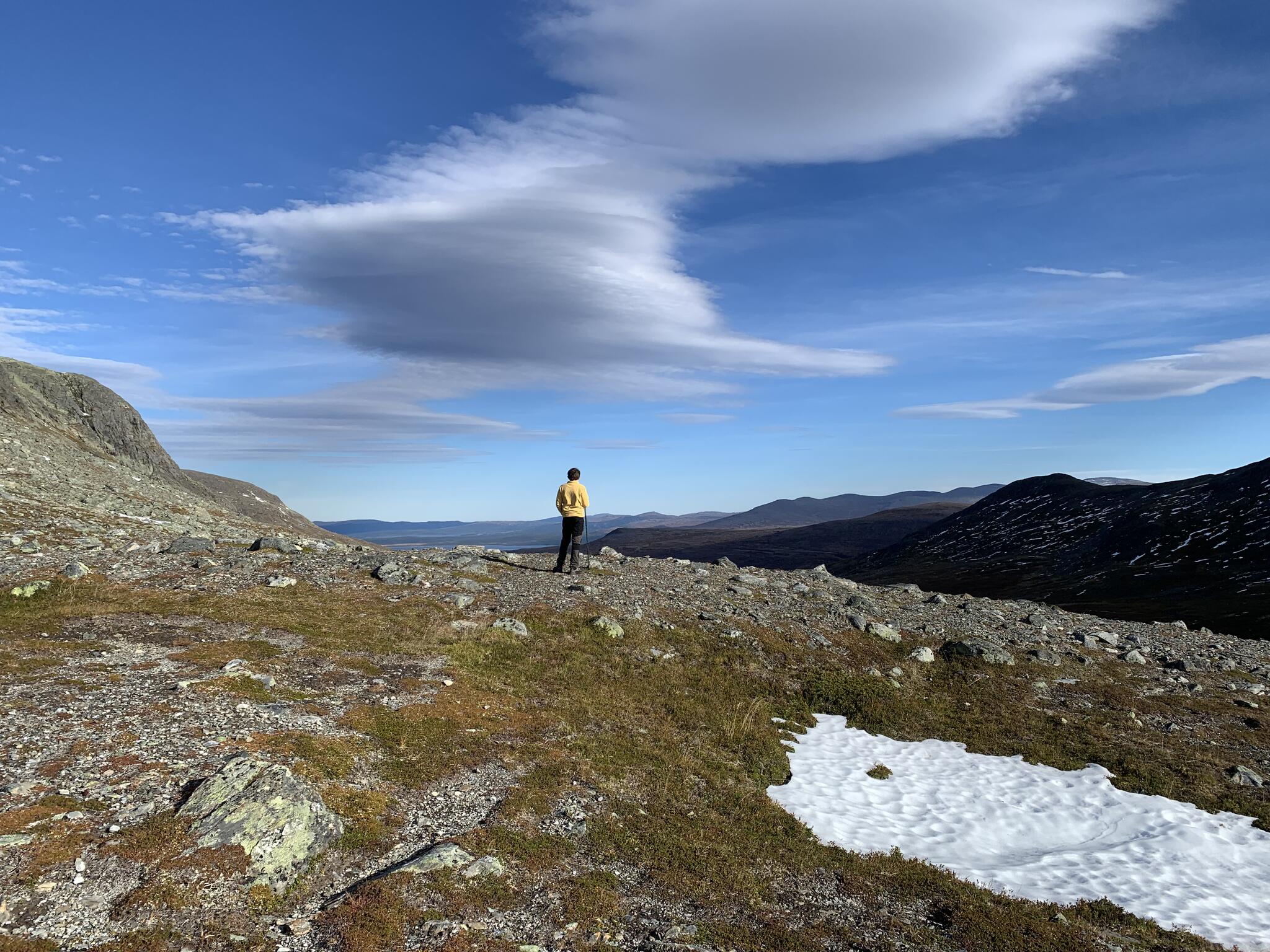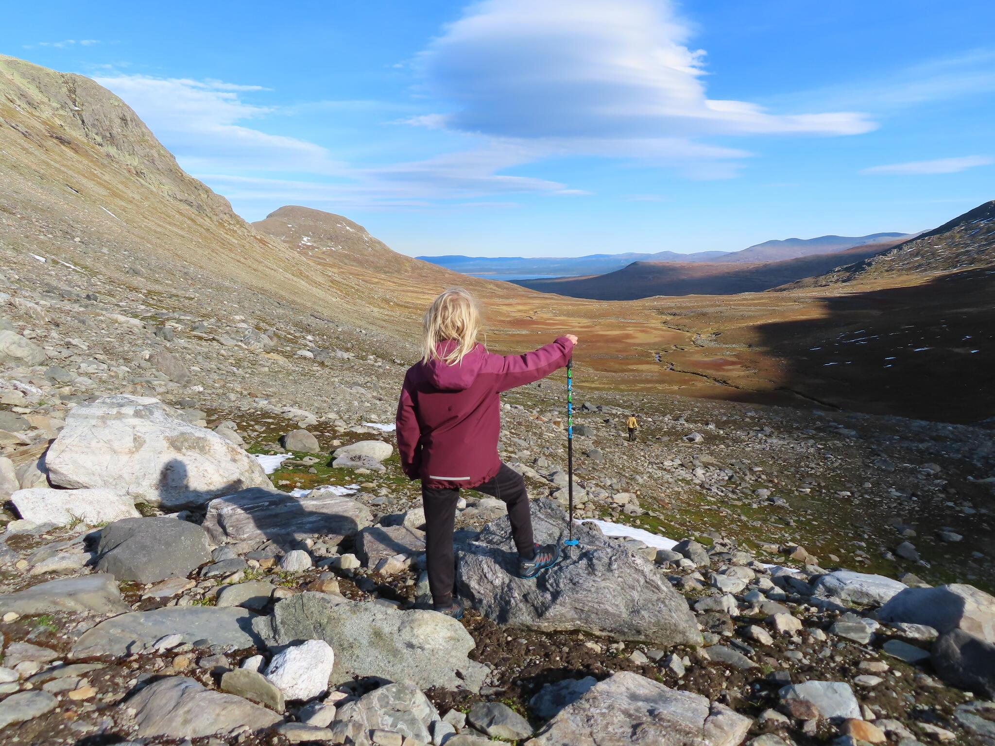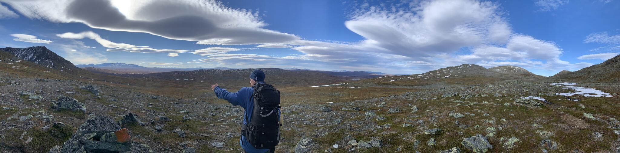 Efter frukost packade vi ihop och körde mot Snasahögarna. Vår vandring började vid parkering vid Norder-Tvärån. Vi gick upp i dalen till Snasahögarnas vindskydd. Sedan söderut längs led. Och sedan ner i dalen längs Sönner-Tvärån. Då hade vi rundat Tväråklumparna. 14 km blev den rundturen.